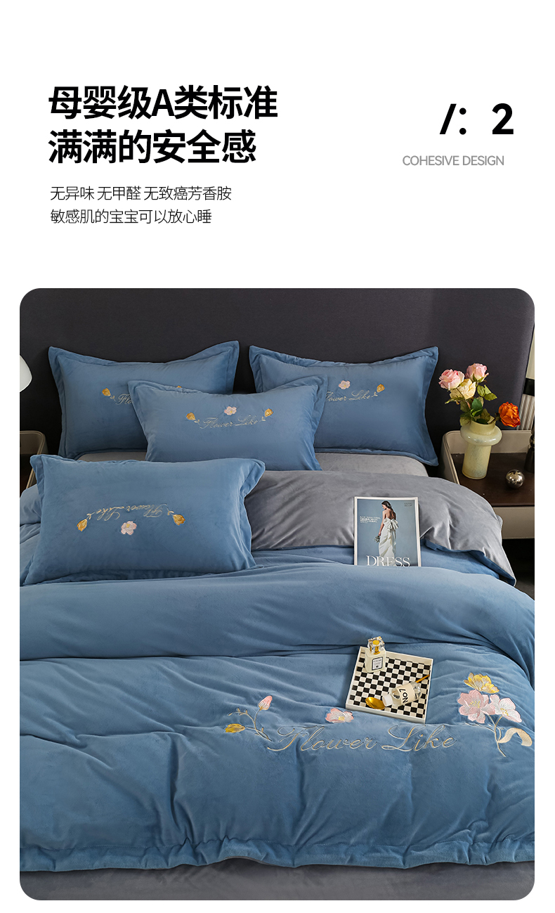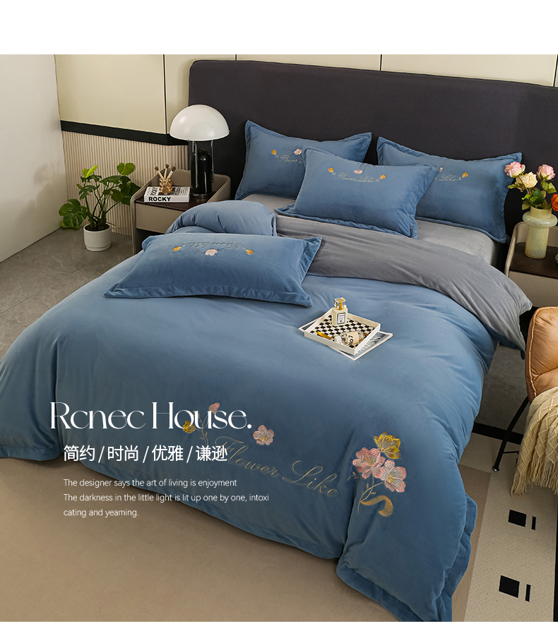 (总)银石 2023新款高克重婴儿绒宝宝绒轻奢绣花四件套 倾城,倾城(蓝),倾城(灰),倾城(粉),倾城(墨绿),倾城(青绿),倾城(天蓝),倾城(紫)