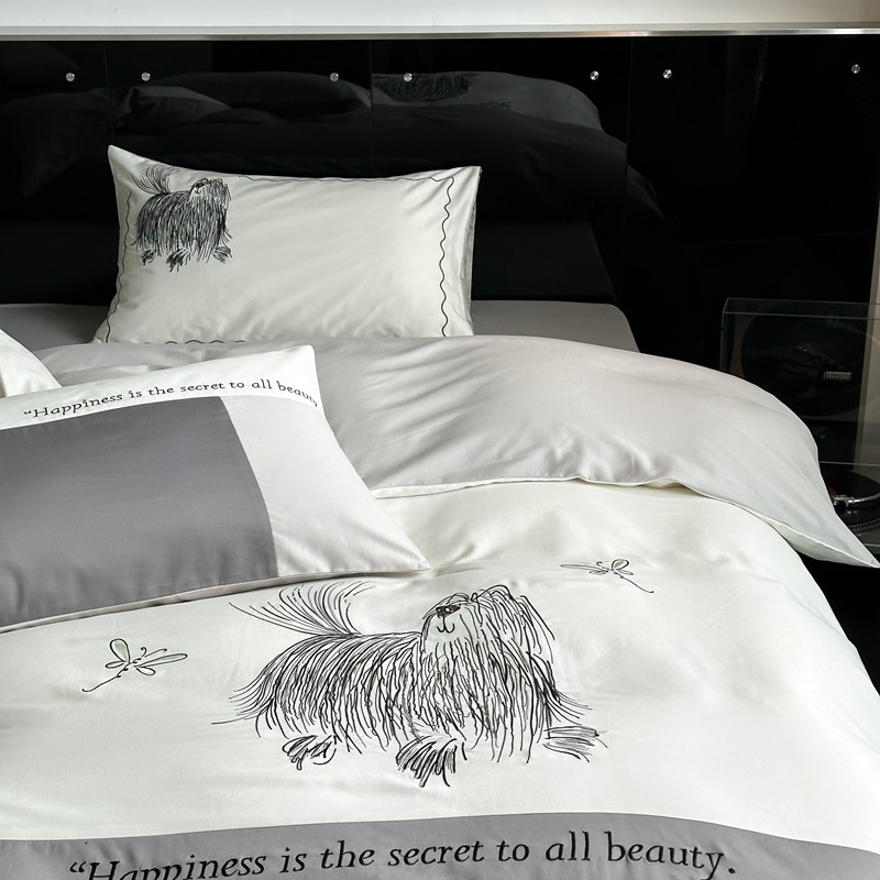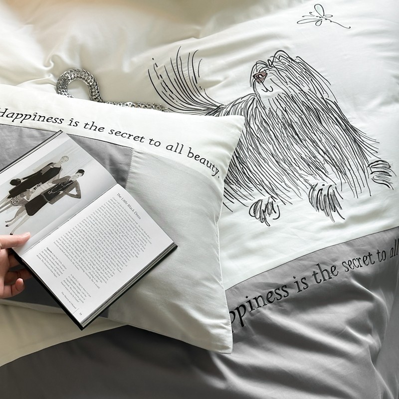 初拾 100支澳棉加密轻磨毛年轻卡通系列-小狗日记 小狗日记-灰