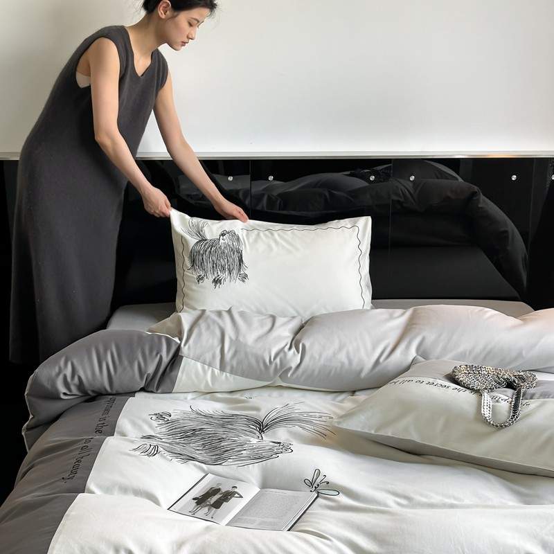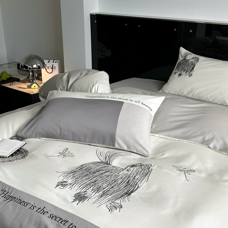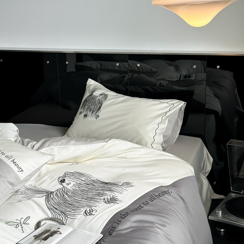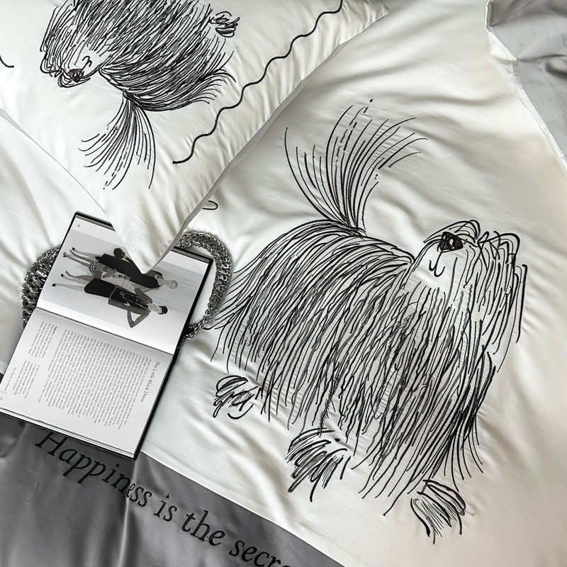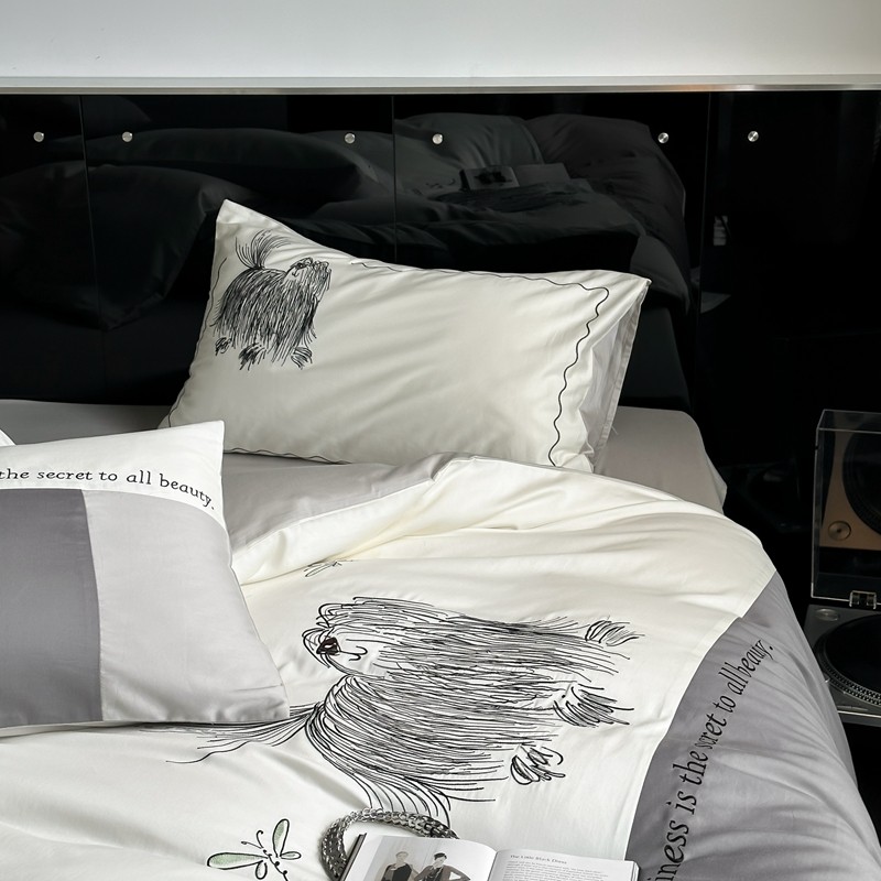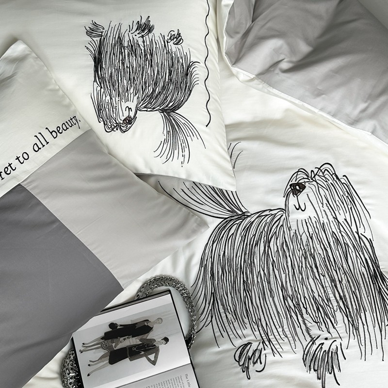 商品名称:初拾 100支澳棉加密轻磨毛年轻卡通系列-小狗日记 小狗日记-灰