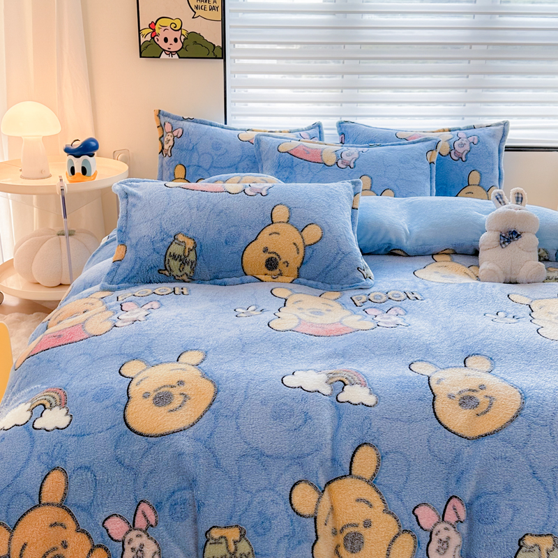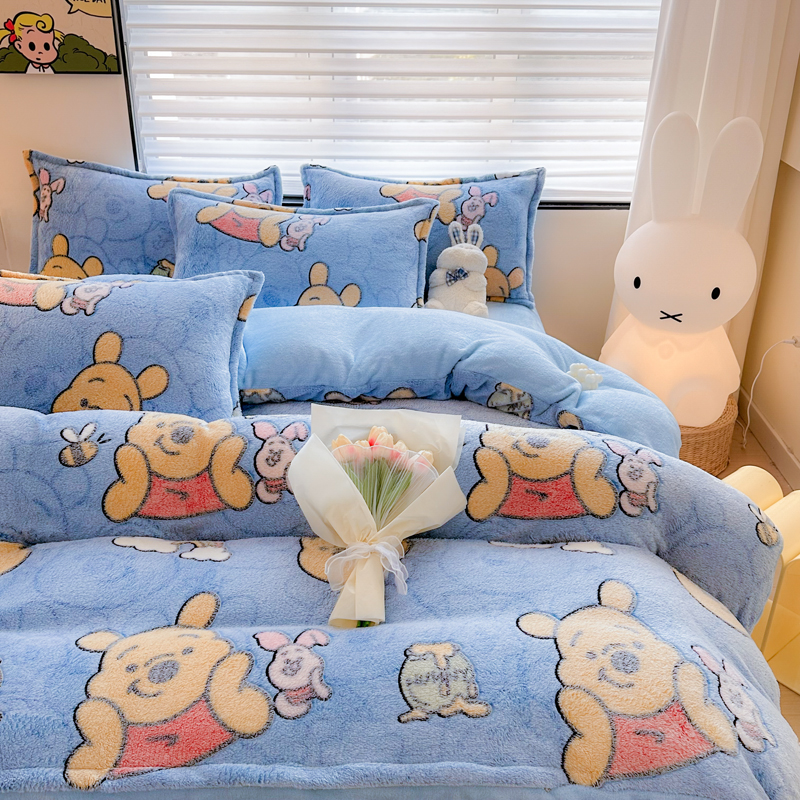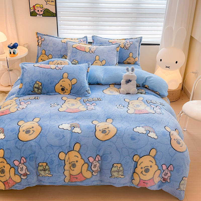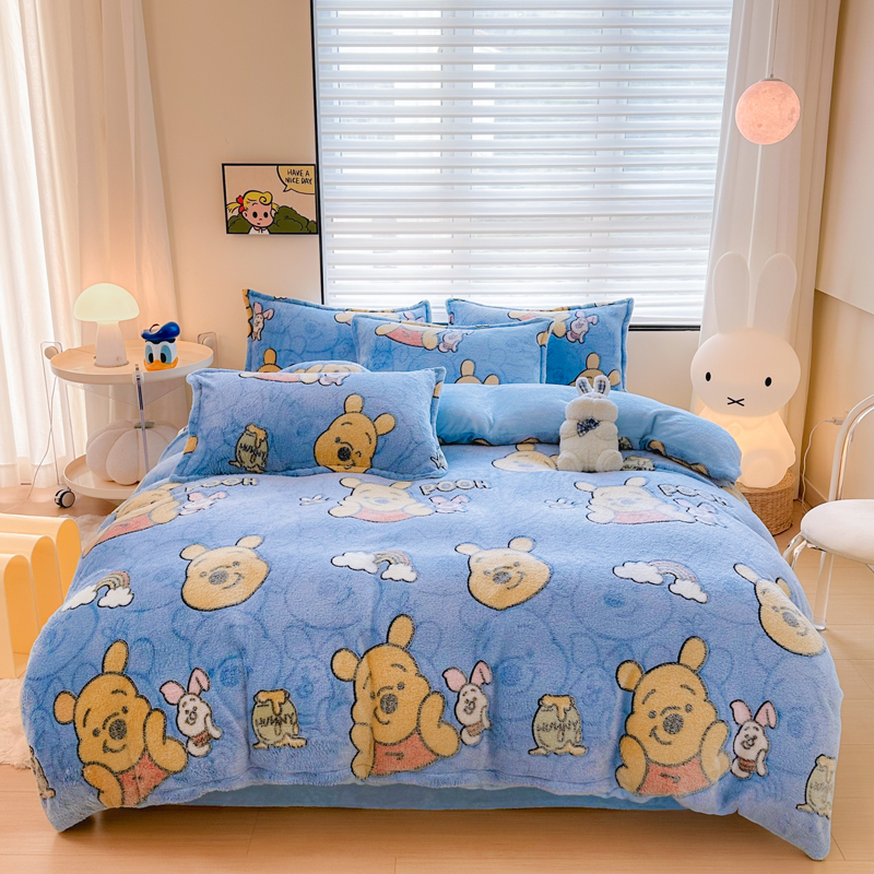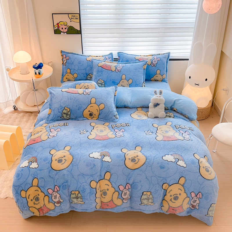 美莱 2023爆款雪花绒四件套法莱绒牛奶绒被套量大价格优惠 维尼熊