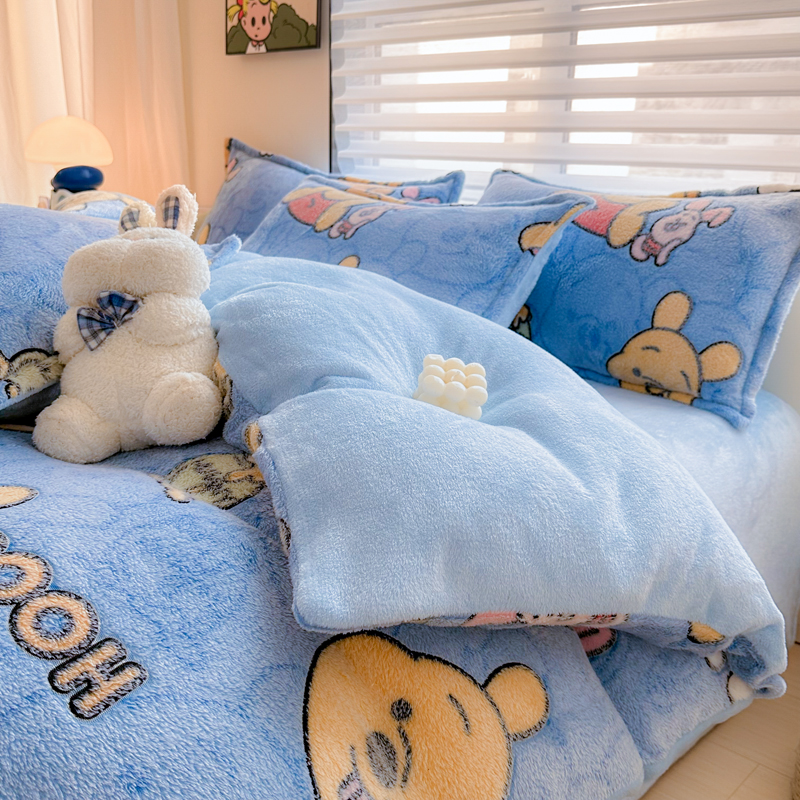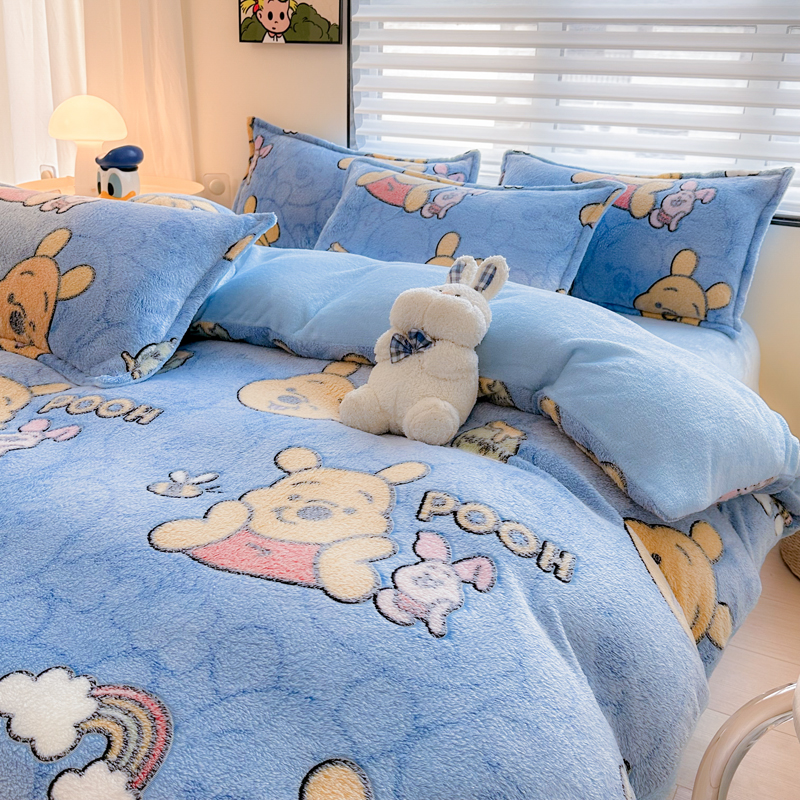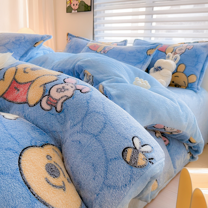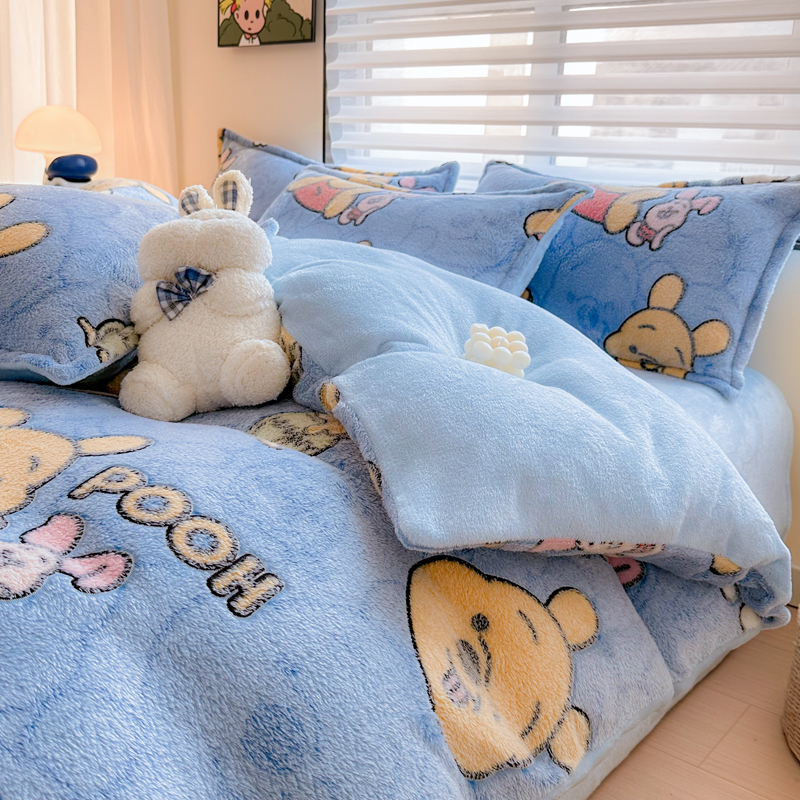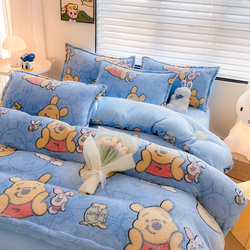 美莱 2023爆款雪花绒四件套法莱绒牛奶绒被套量大价格优惠 维尼熊