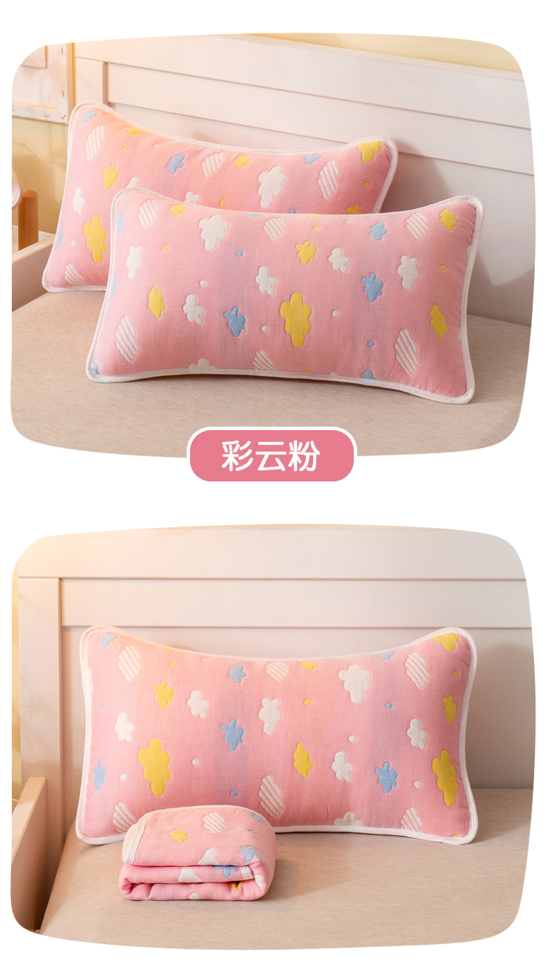 商品名称:2023全棉卡通六层纱布儿童枕套-朴尔 彩云粉-纱布枕套