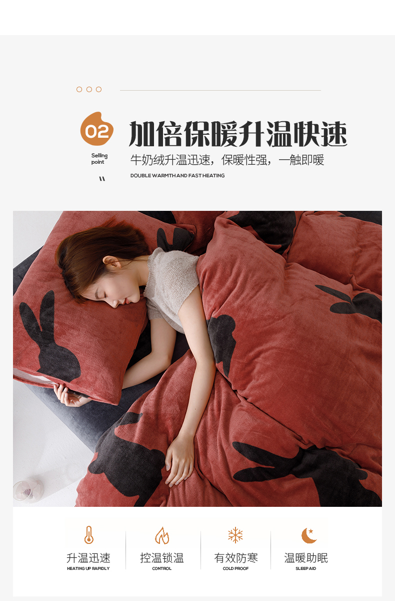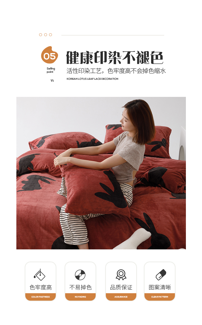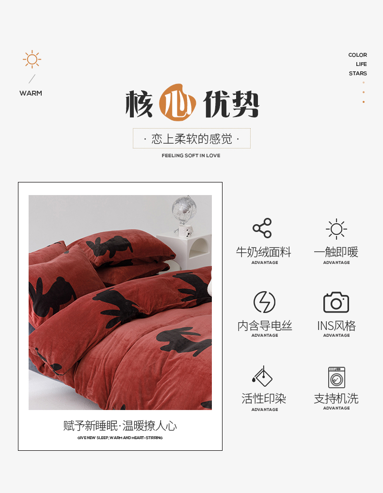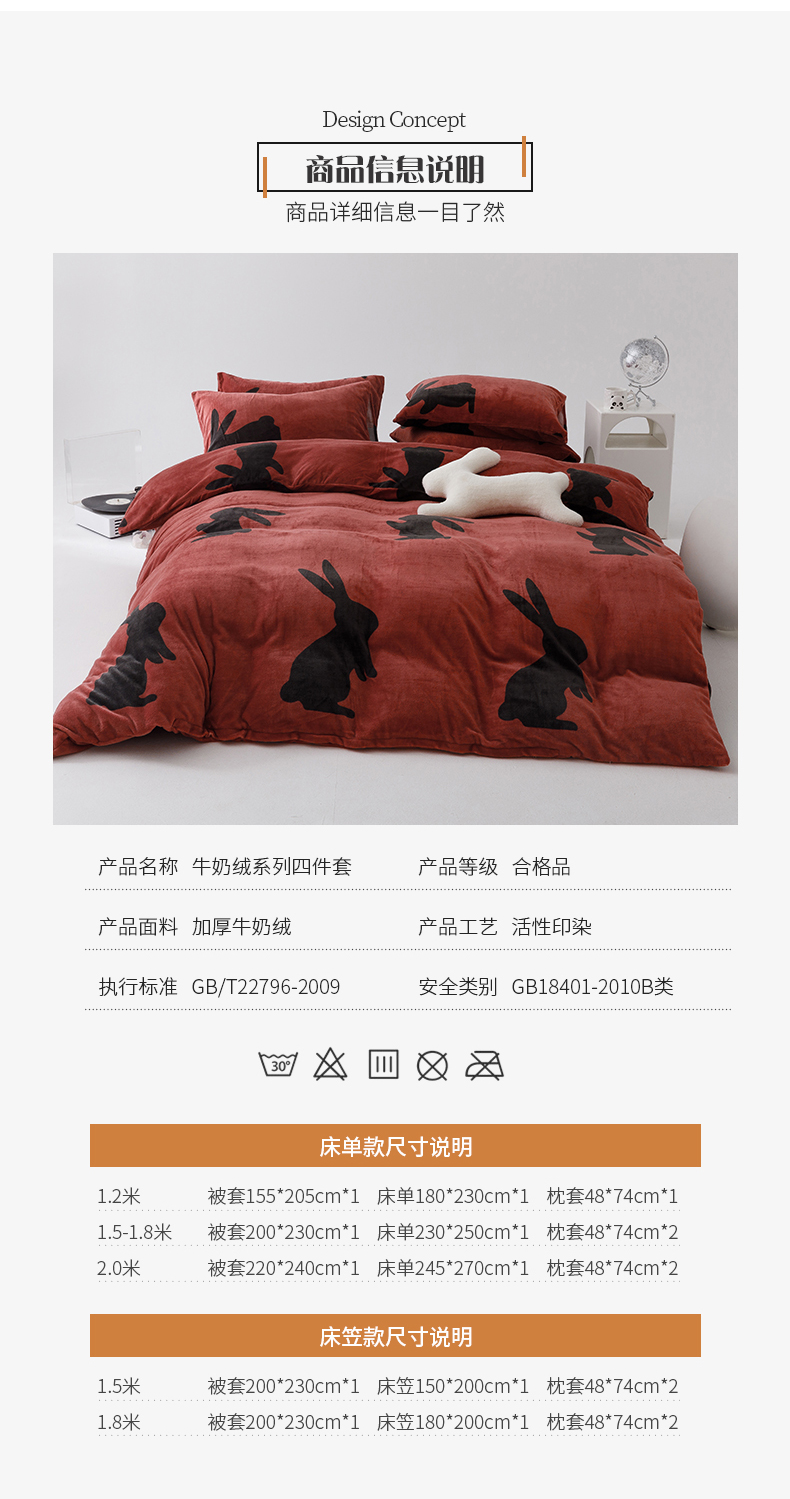 商品名称:桃子2023新款ins轻奢简约潮派极简高级时尚兔本兔高克重牛奶绒系列四件套 绒兔本兔-酒红