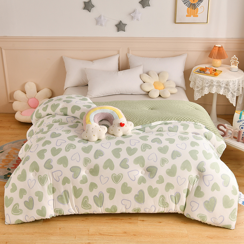 商品名称:牛魔王家居 2023新款A类针织棉豆豆被子抗菌纤维被芯冬被 绿色爱心