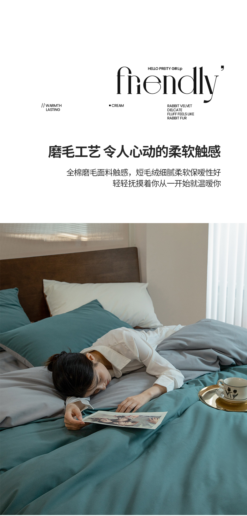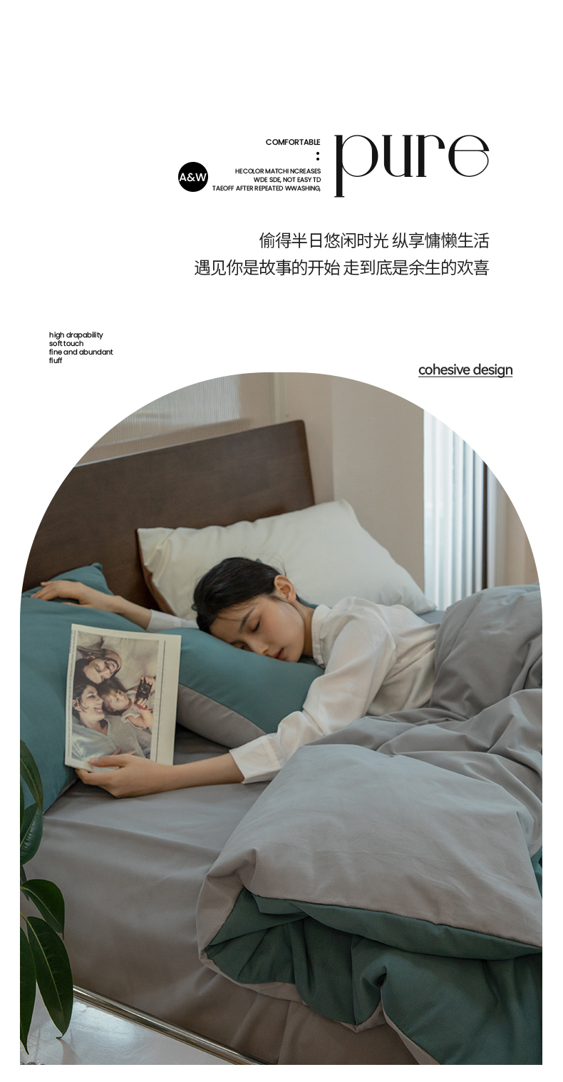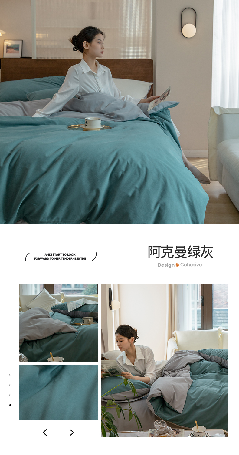 当前位置: 91家纺网 > 商品网购 > 床品套件 > 四件套 > 普通磨毛四件套 > 寐眠 2023新款纯棉磨毛双拼四件套 阿克曼绿灰