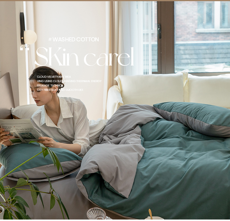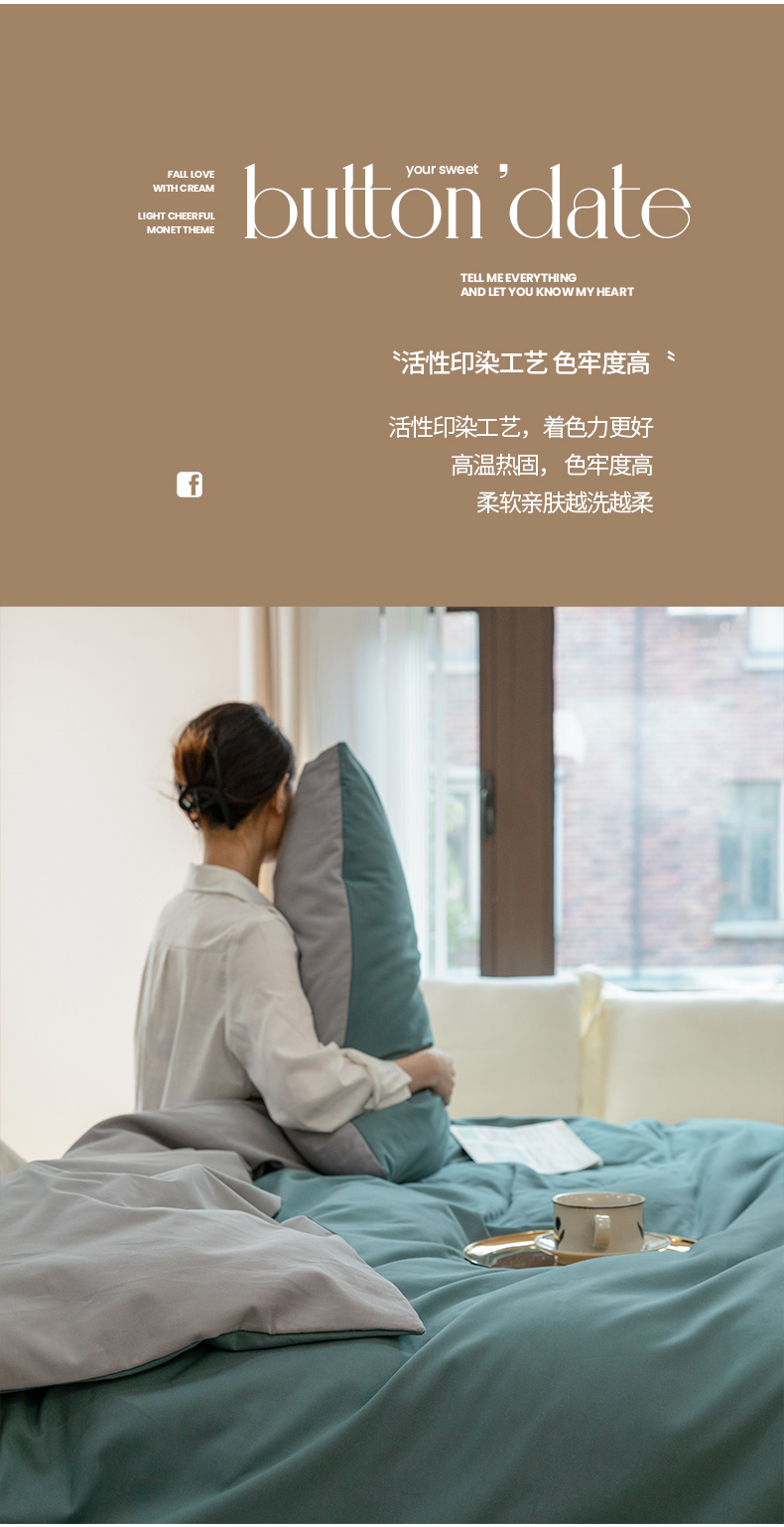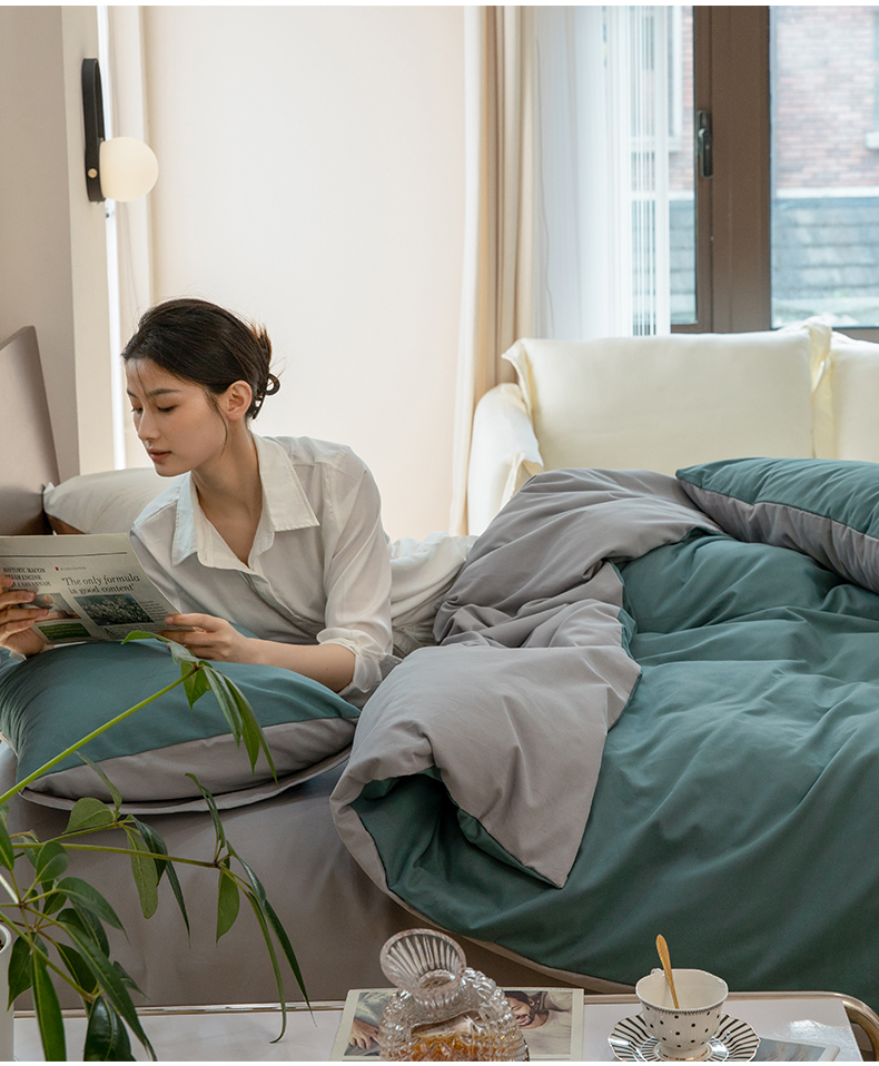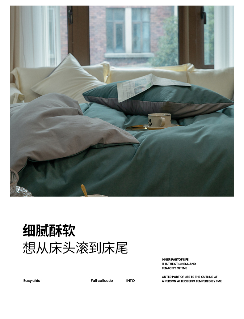 当前位置: 91家纺网 > 商品网购 > 床品套件 > 四件套 > 普通磨毛四件套 > 寐眠 2023新款纯棉磨毛双拼四件套 阿克曼绿灰