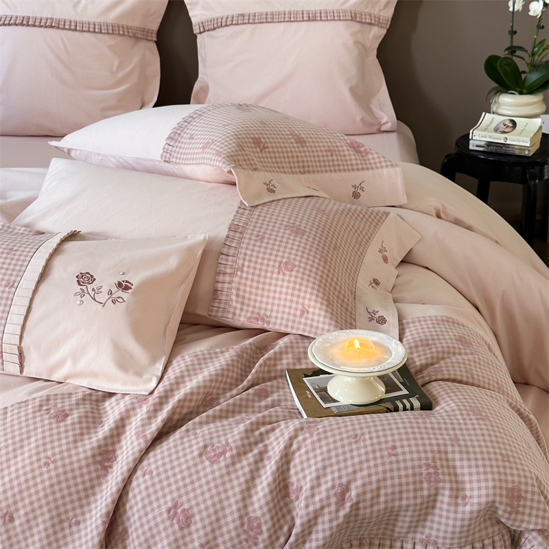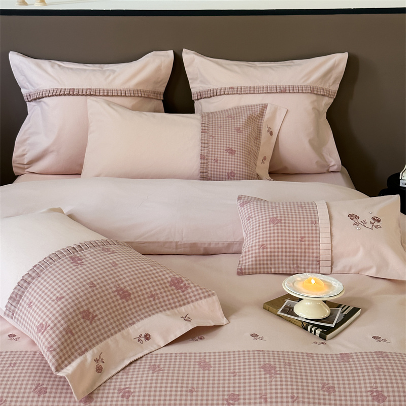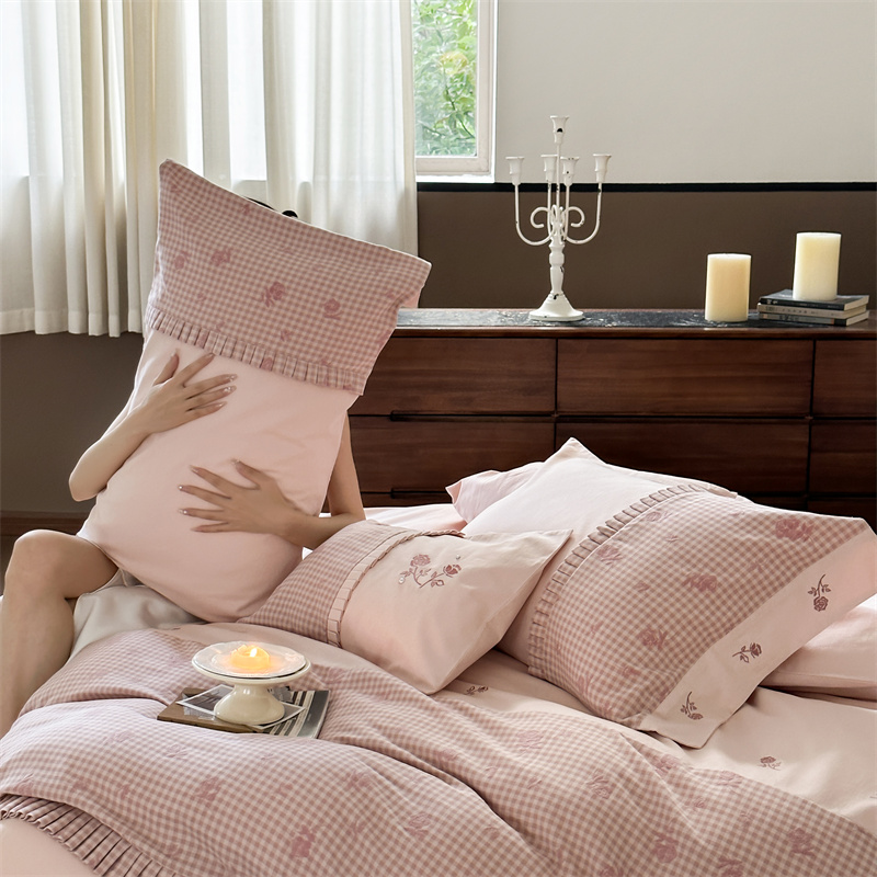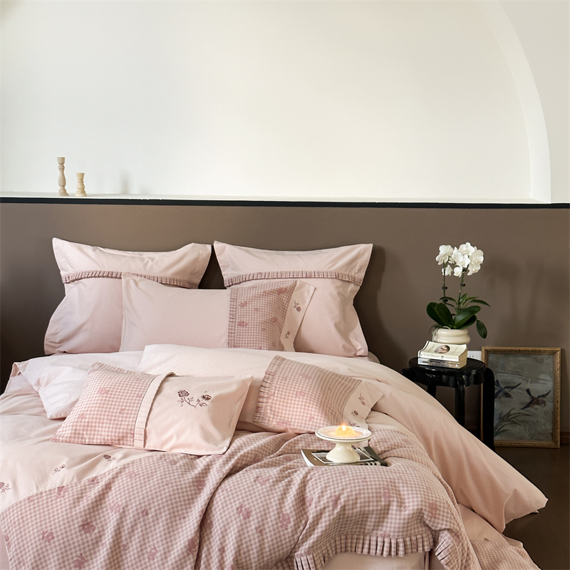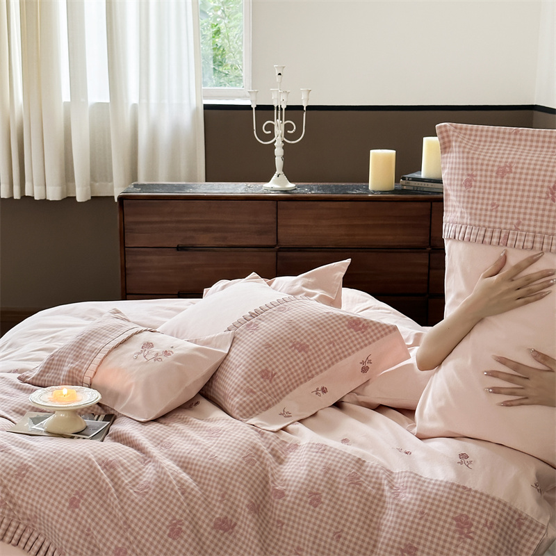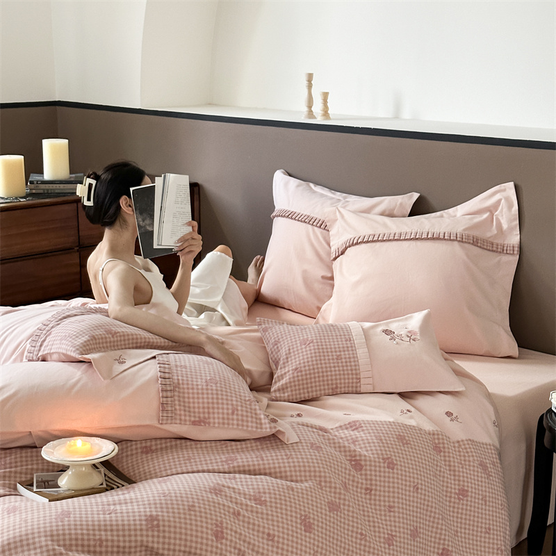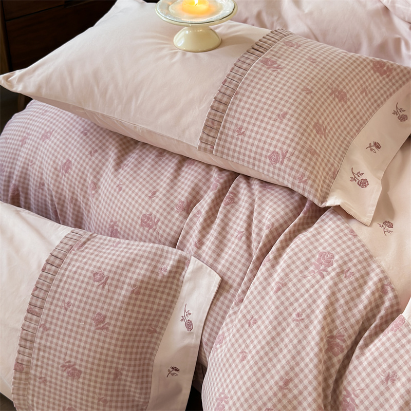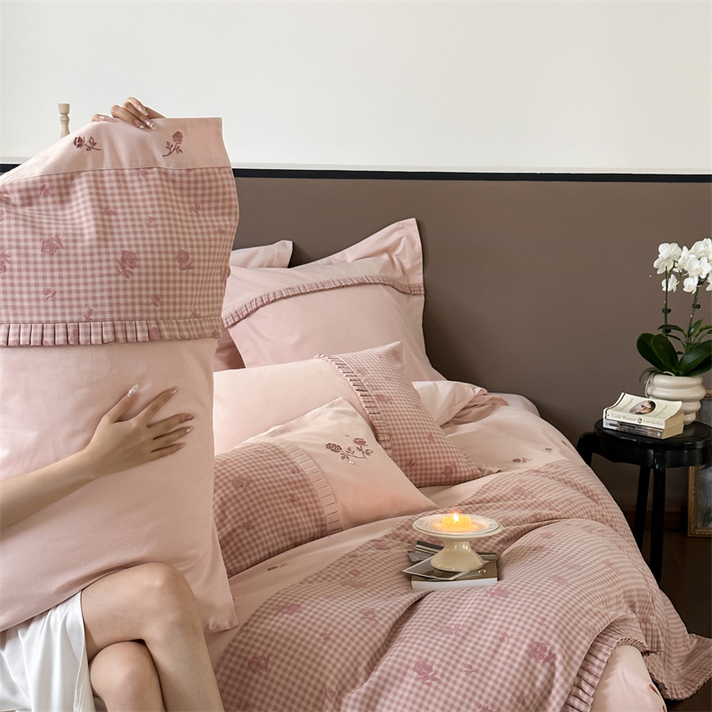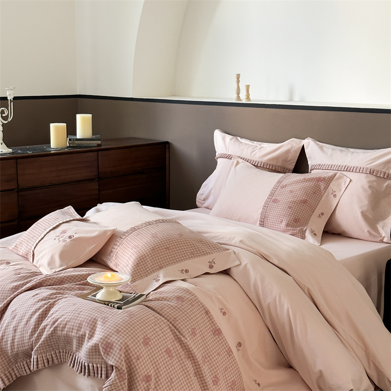 (总)涞澳家纺 2026新款全棉纯棉水洗棉纯色花边款四件套-珠若,珠若-米白,珠若-浅灰,珠若-浅绿,珠若-浅玉