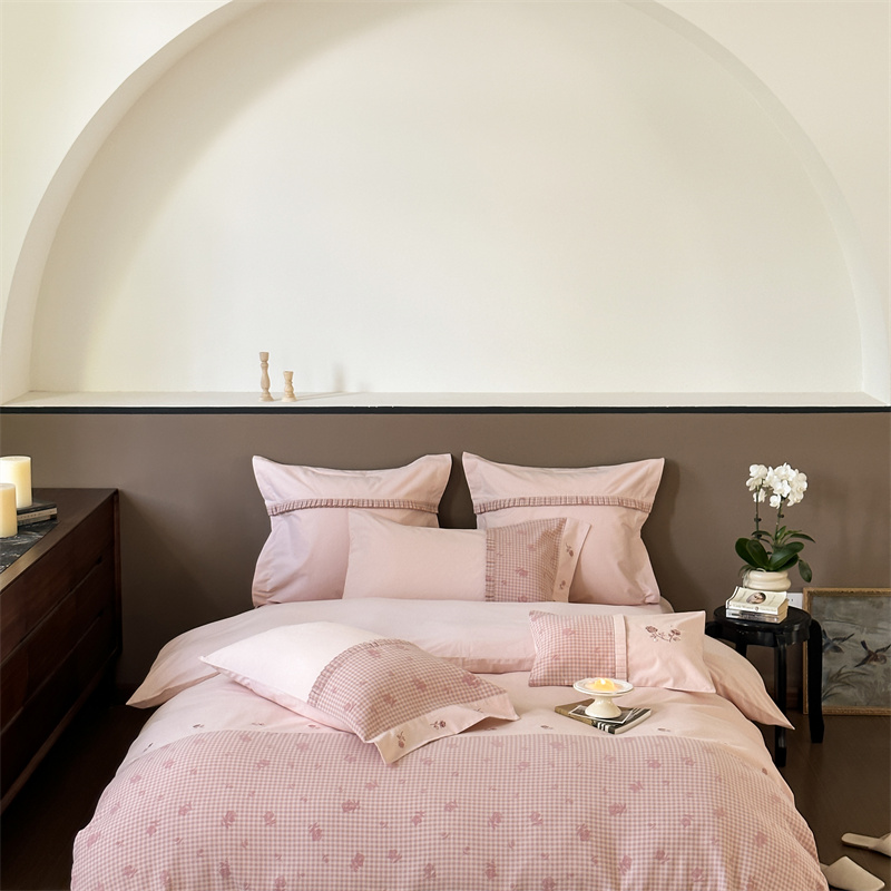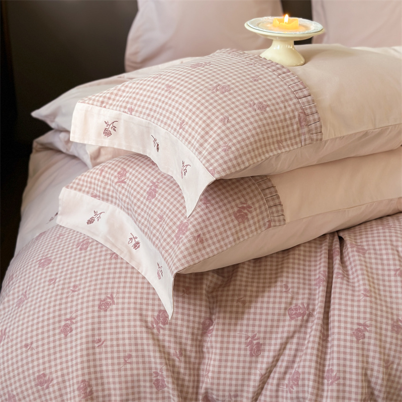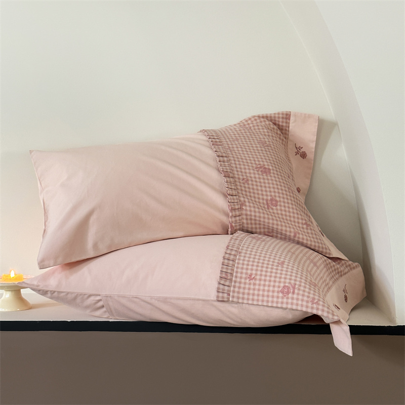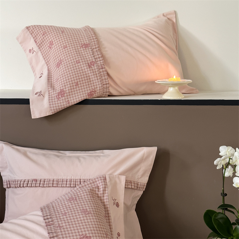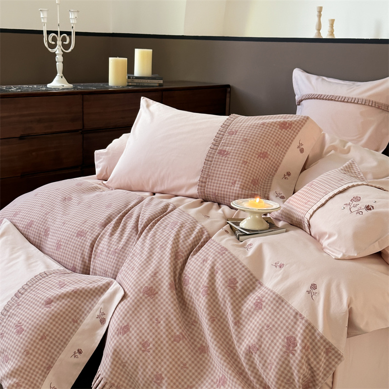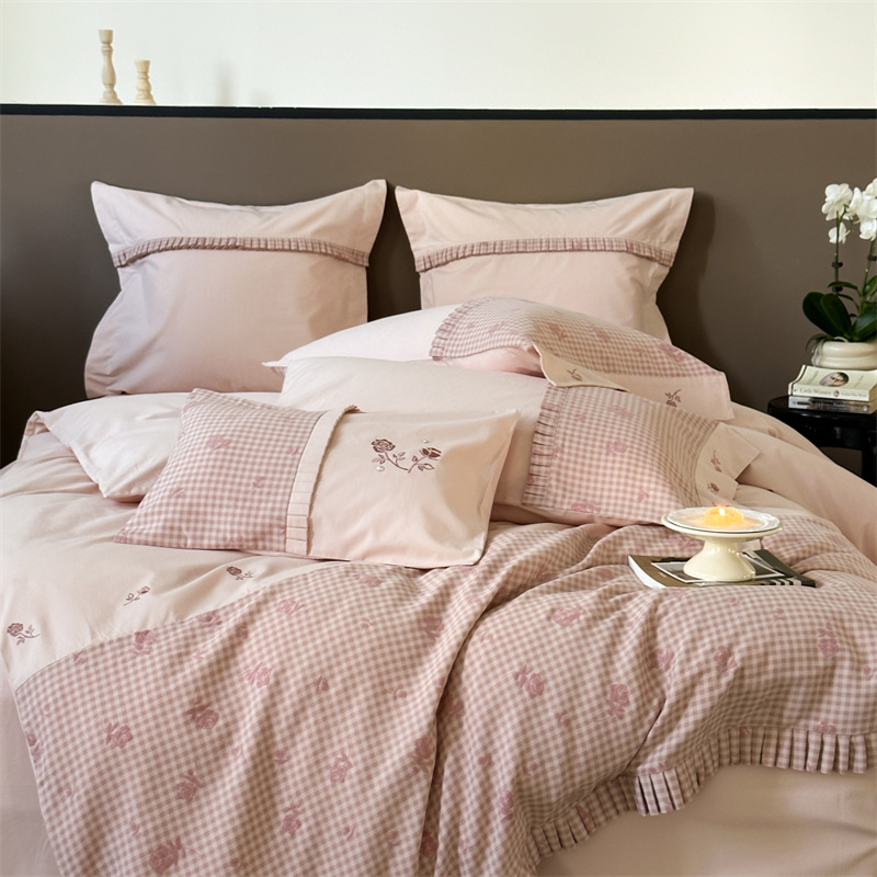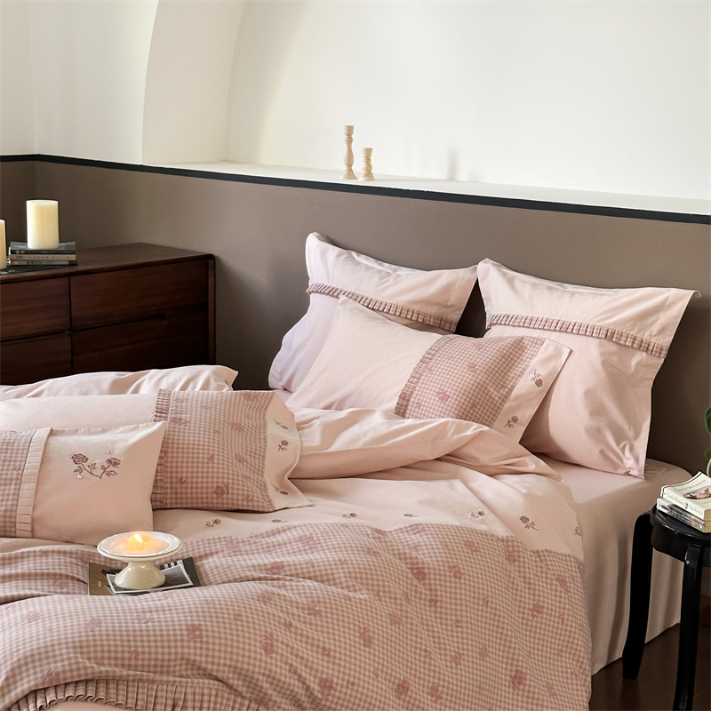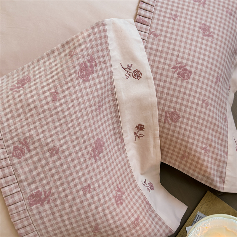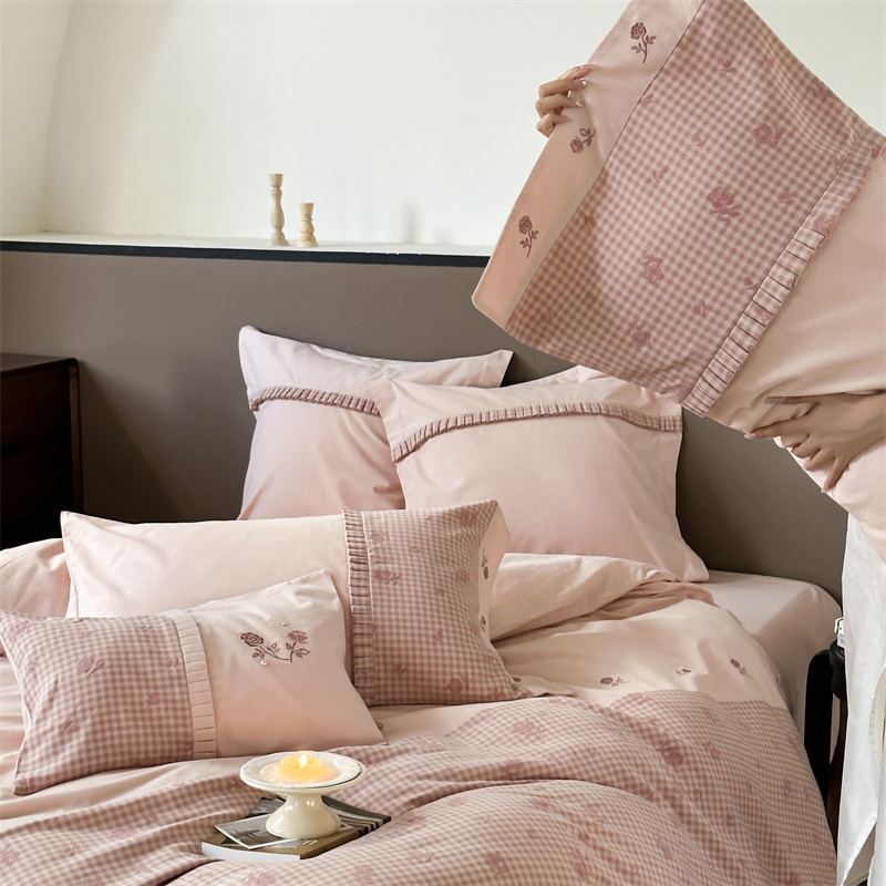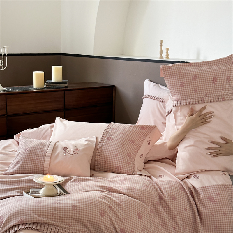 (总)涞澳家纺 2026新款全棉纯棉水洗棉纯色花边款四件套-珠若,珠若-米白,珠若-浅灰,珠若-浅绿,珠若-浅玉