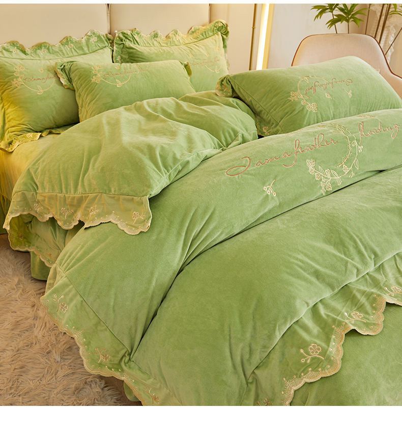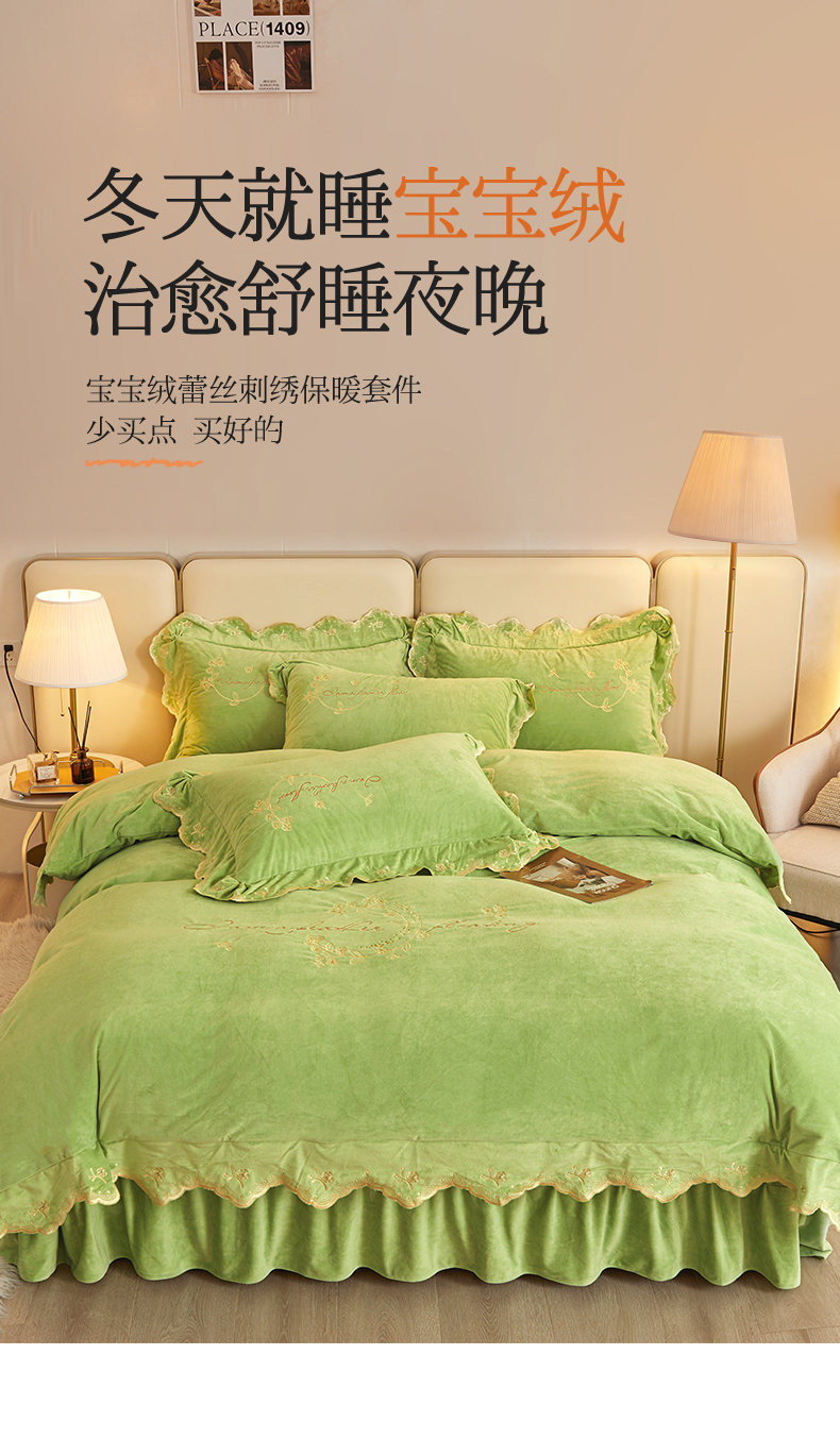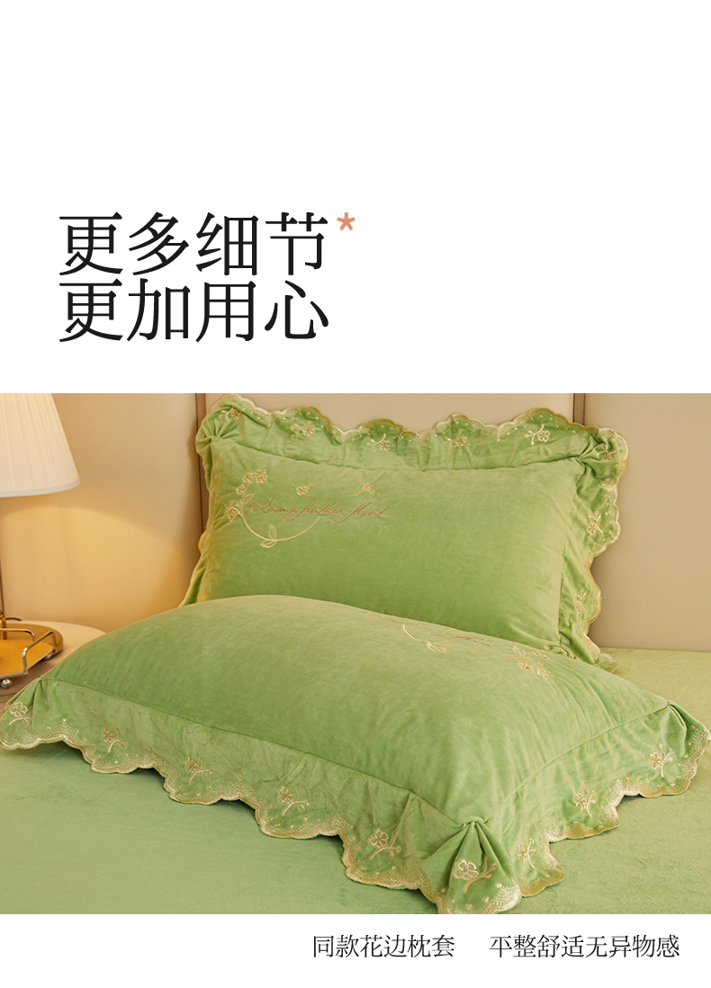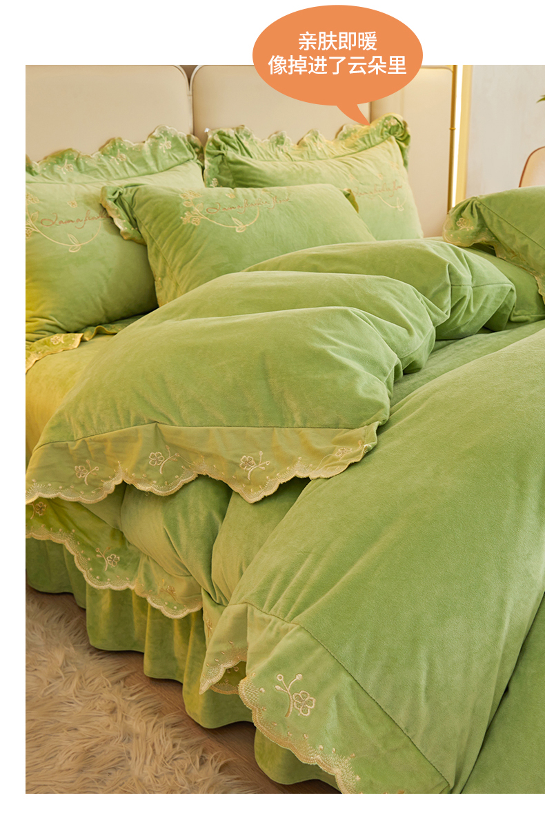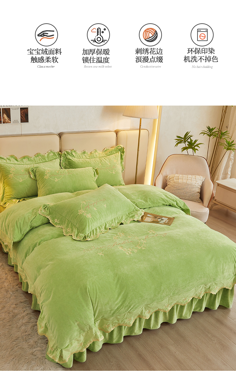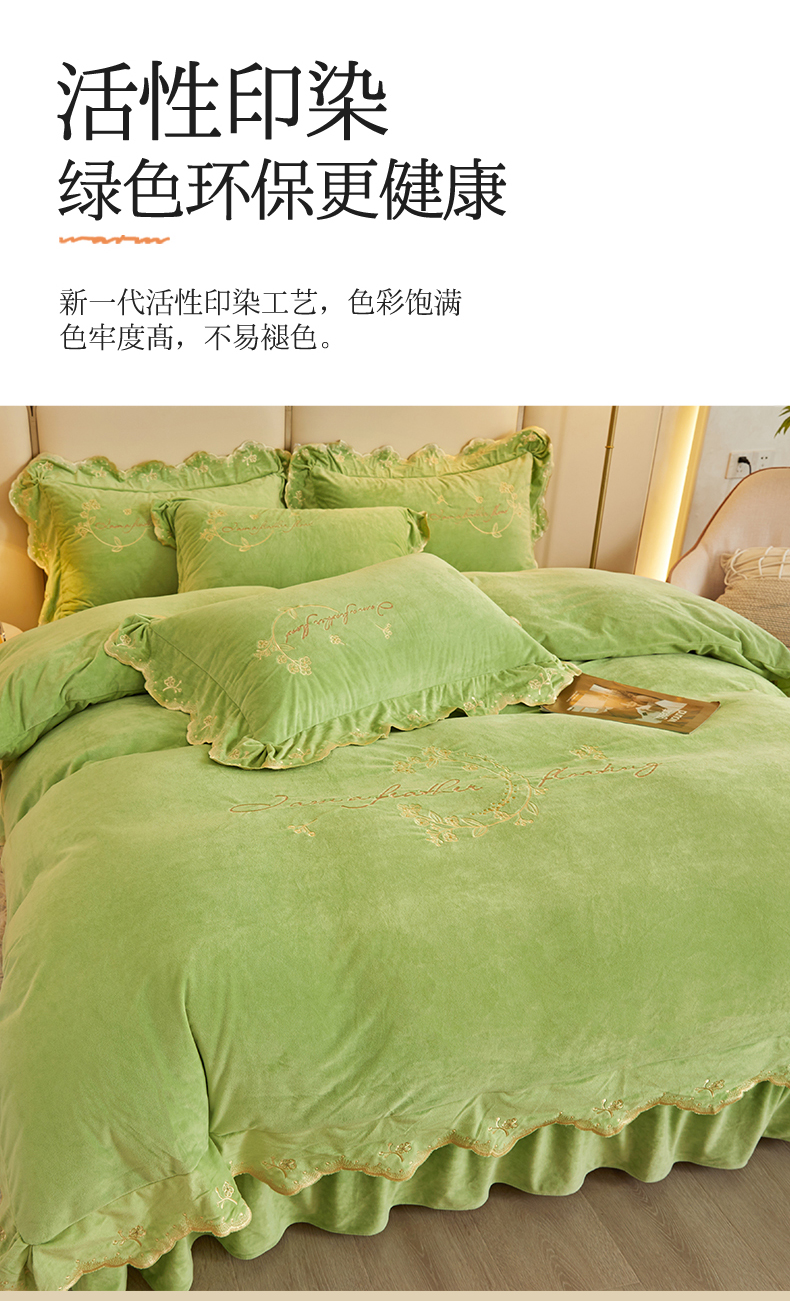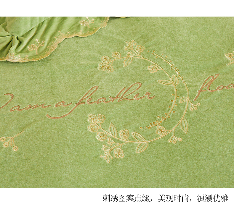 商品名称:恒爱家纺 2023新款宝宝绒花好月圆床单款四件套 牛油果绿