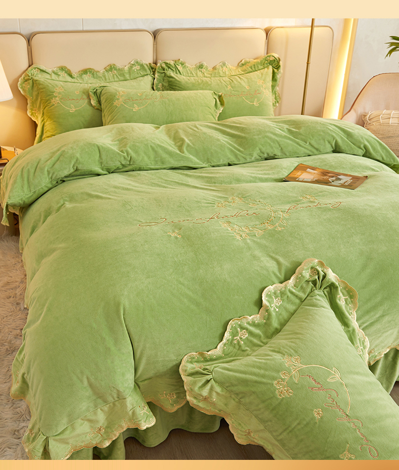 恒爱家纺 2023新款宝宝绒花好月圆床单款四件套 牛油果绿