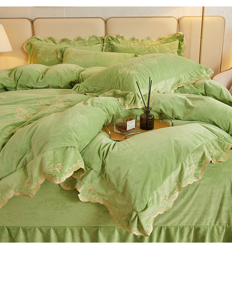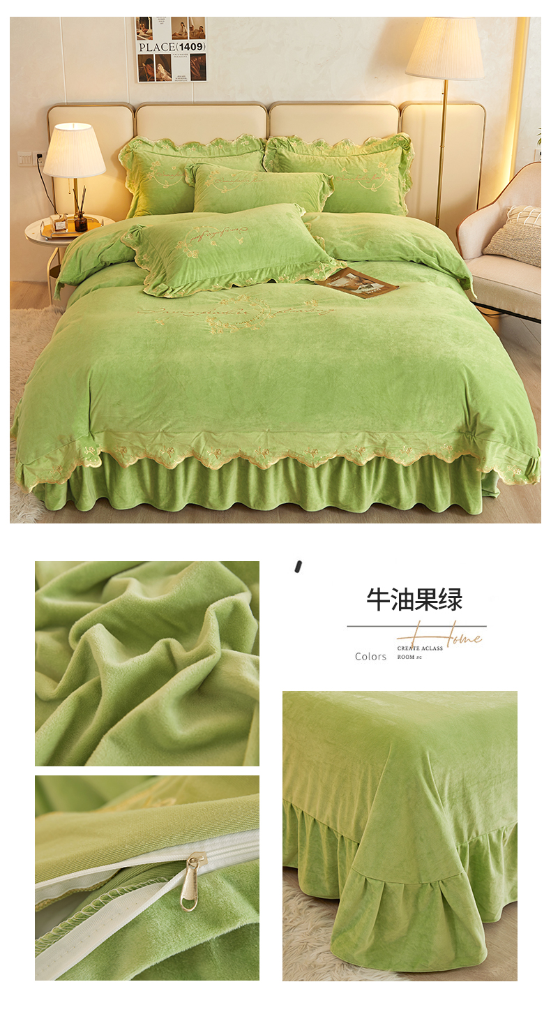 (总)恒爱 2022新款秋冬轻奢宝宝绒刺绣床裙款四件套,爱玛橙,宾利蓝,豆沙红,橄榄绿,高级灰,酒红,梦想粉,浅灰蓝,温馨粉,喜庆红,香妃粉,香芋紫