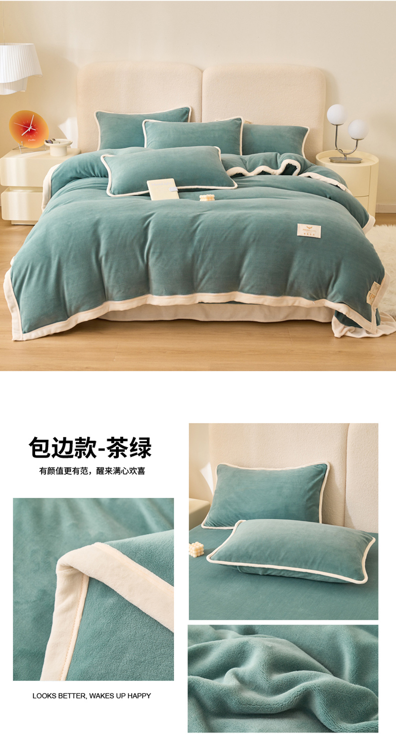 当前位置: 91家纺网 > 商品网购 > 床品套件 > 四件套 > 牛奶绒四件套 > 21度C 2023新款加厚保暖云朵牛奶绒四件套 云朵包边款-茶绿