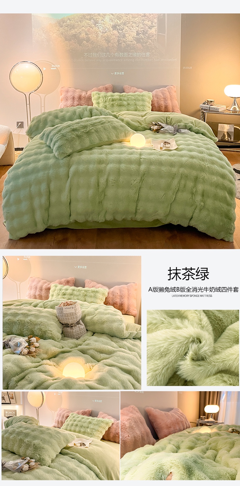 商品名称:新印象 2024新款A版獭兔绒B版全消光牛奶绒四件套 抹茶绿