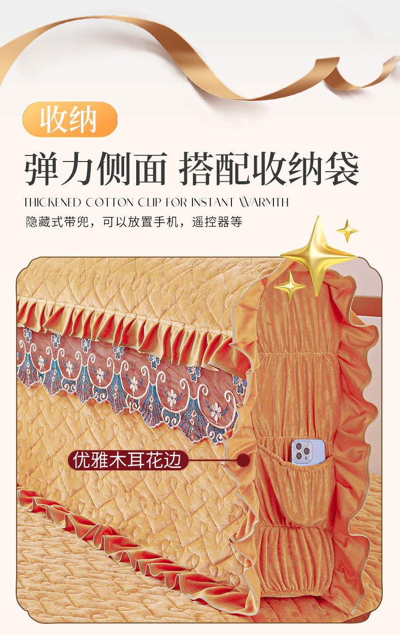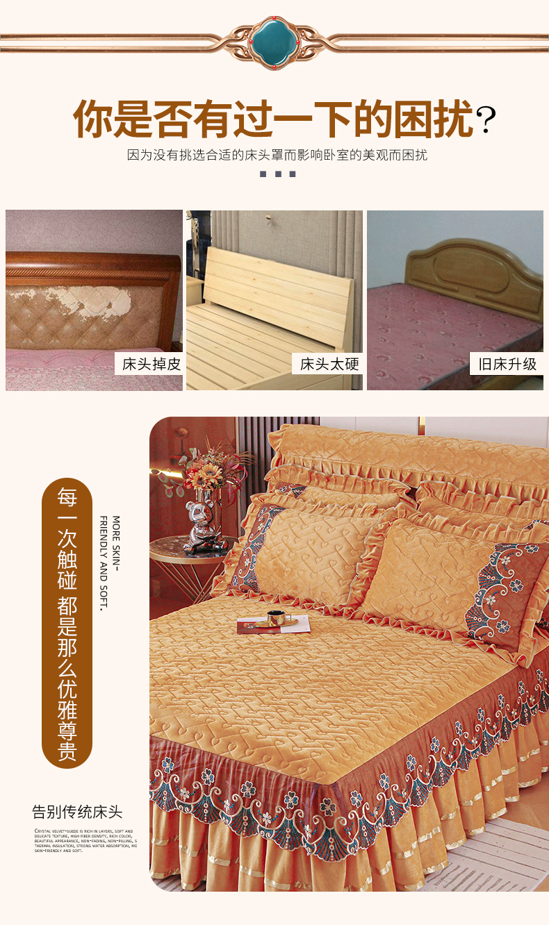 (总)屹成家纺2025新款水晶绒夹棉绗缝蕾丝床裙三件套(塞纳河畔)床裙单件起售价不低于105元,大红,豆沙,翡翠绿,粉玉,橄榄绿,蔚蓝,银灰