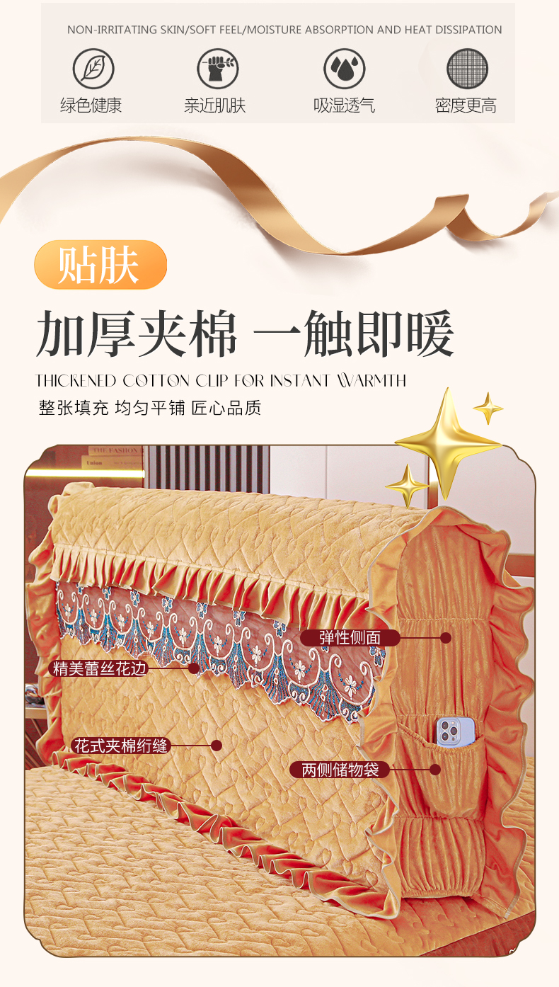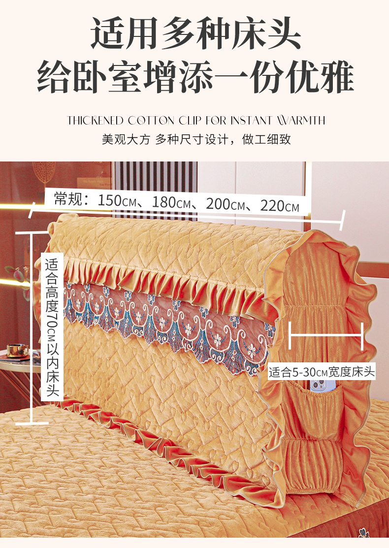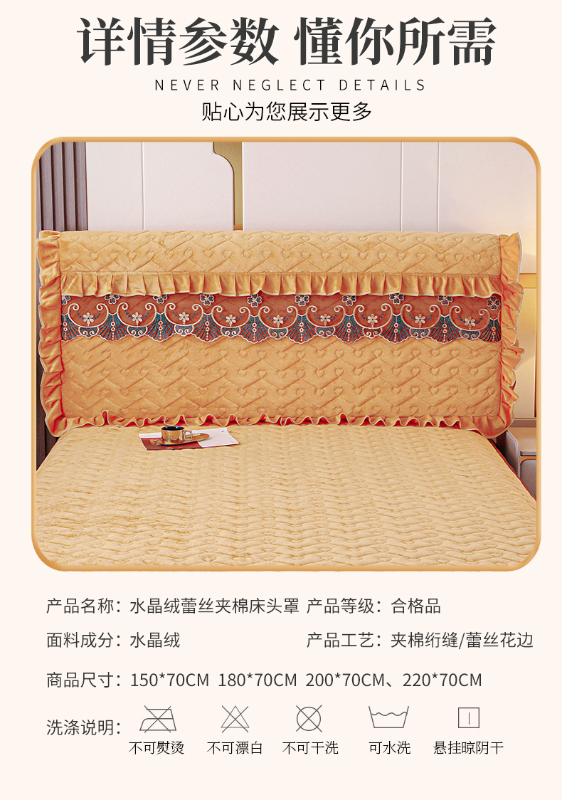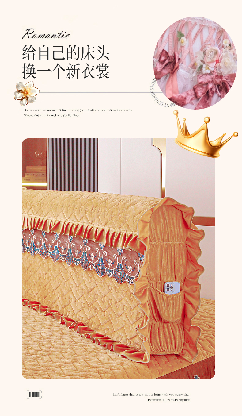 新款心心相印蕾丝款床头罩 心心相印蕾丝款-金驼