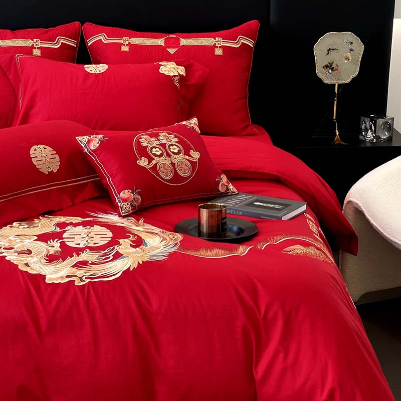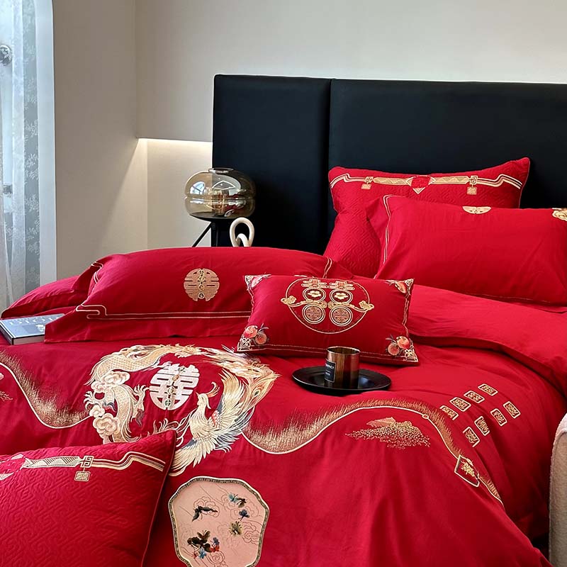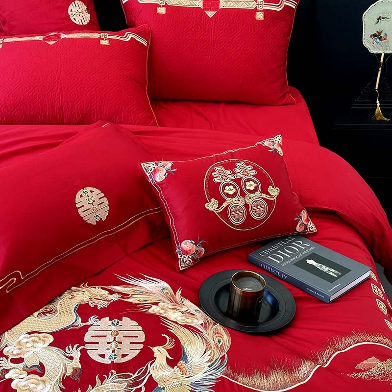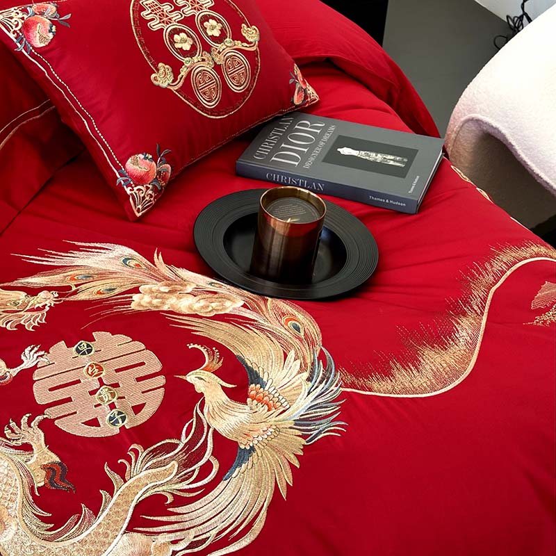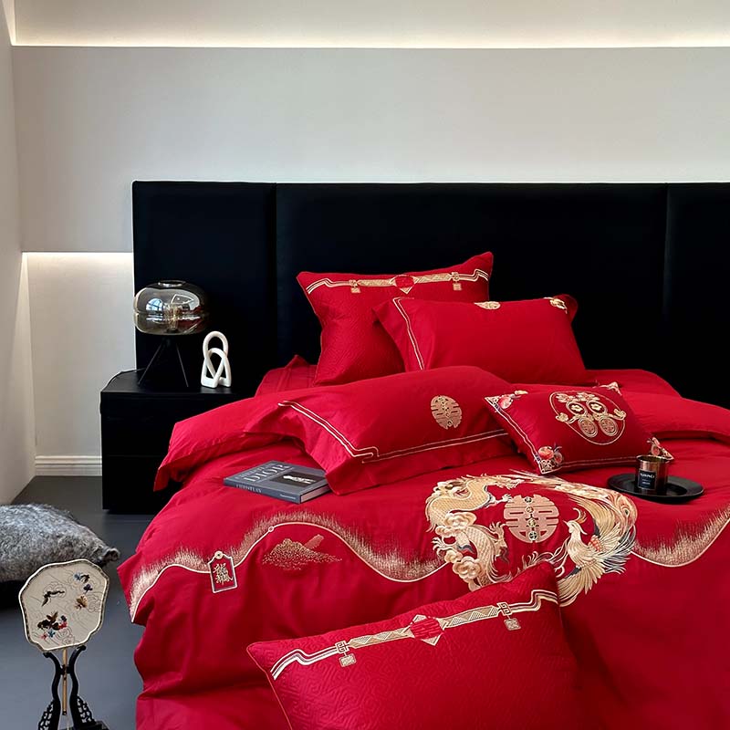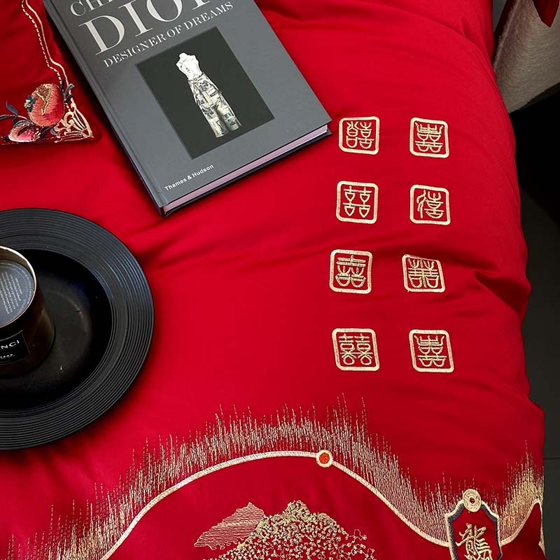 当前位置: 91家纺网 > 商品网购 > 床品套件 > 四件套 > 婚庆四件套 > JUICY 橘滋家纺 2023新款轻奢高端进口长绒棉刺绣婚庆四件套 江山龙凤