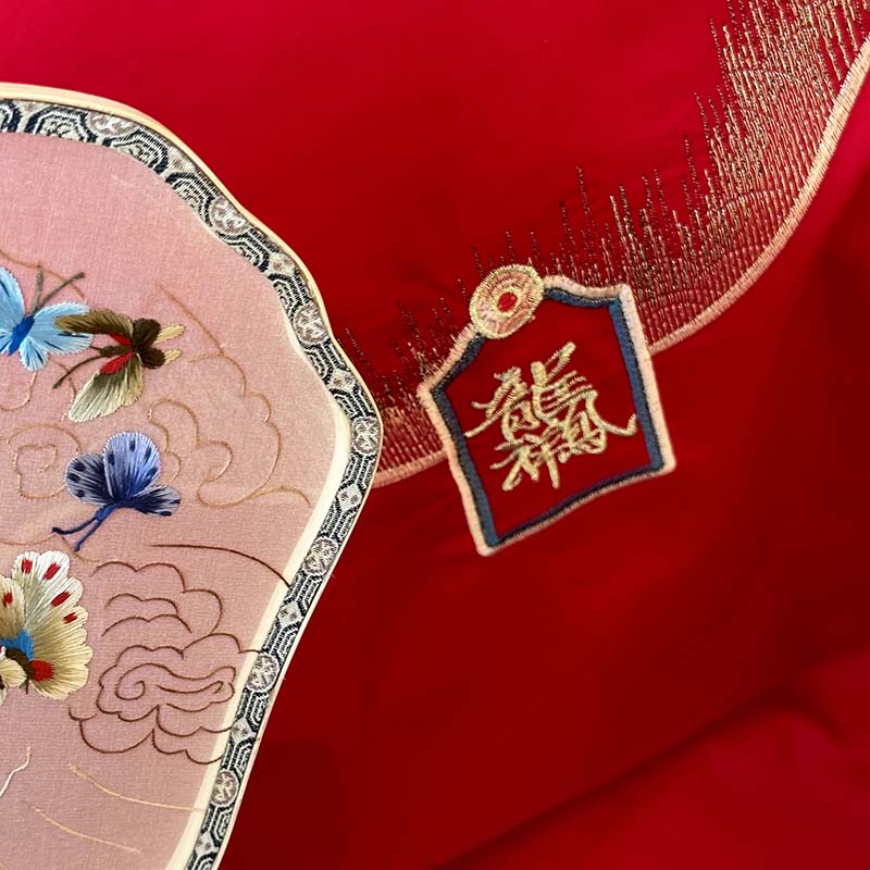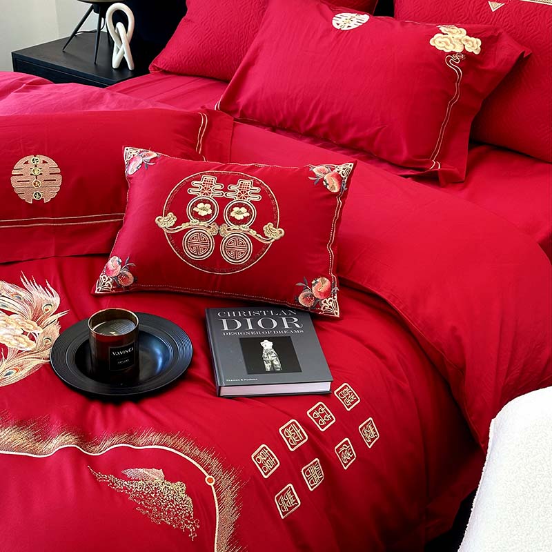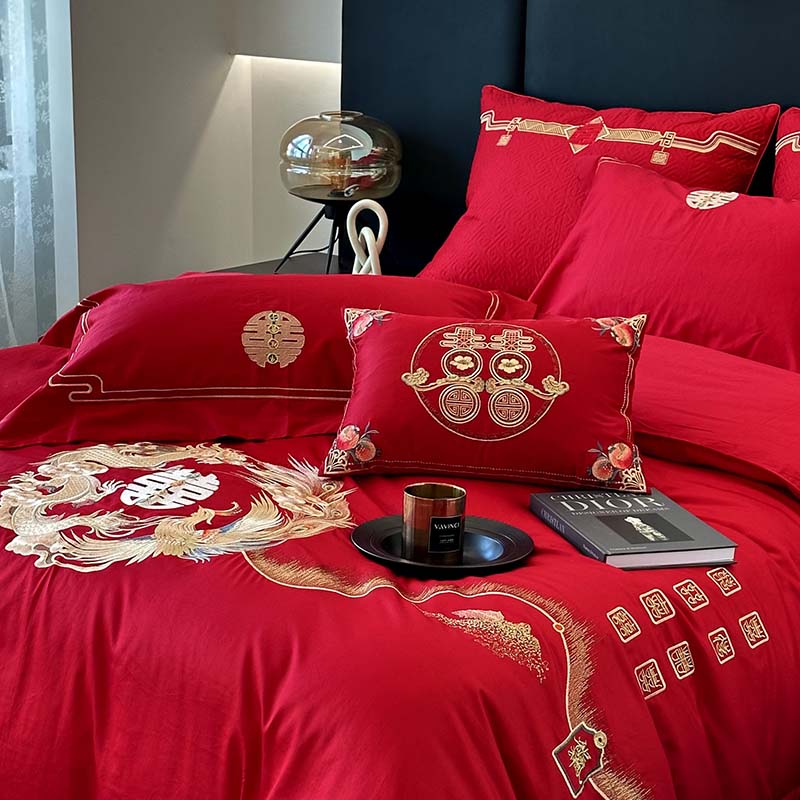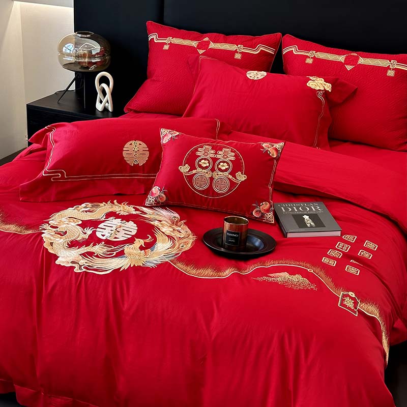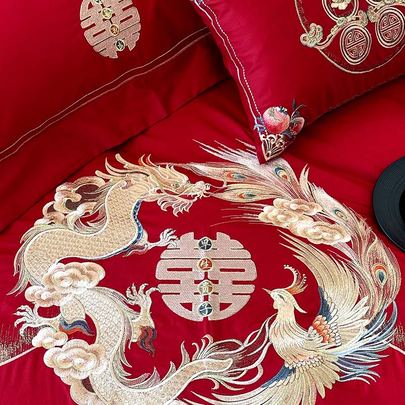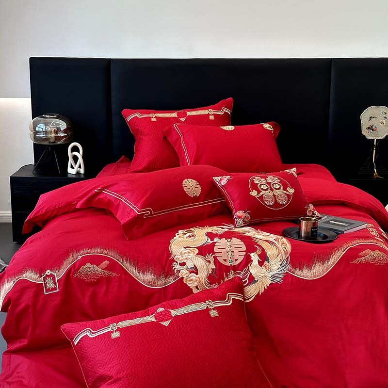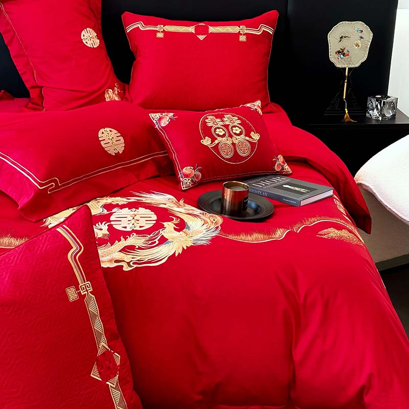 当前位置: 91家纺网 > 商品网购 > 床品套件 > 四件套 > 婚庆四件套 > JUICY 橘滋家纺 2023新款轻奢高端进口长绒棉刺绣婚庆四件套 江山龙凤