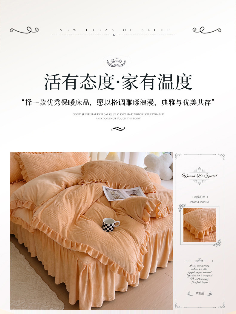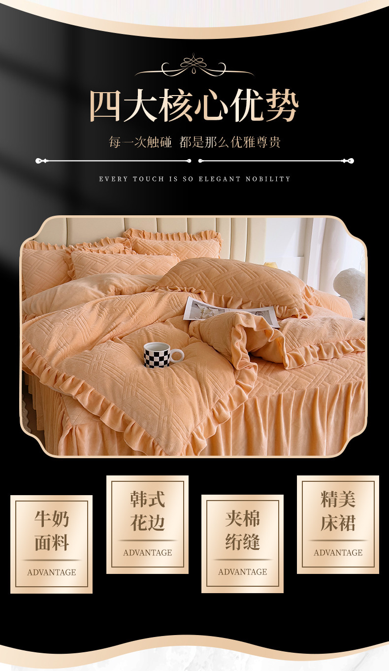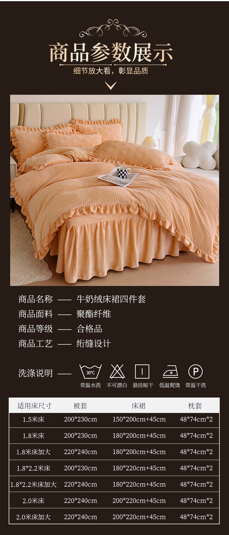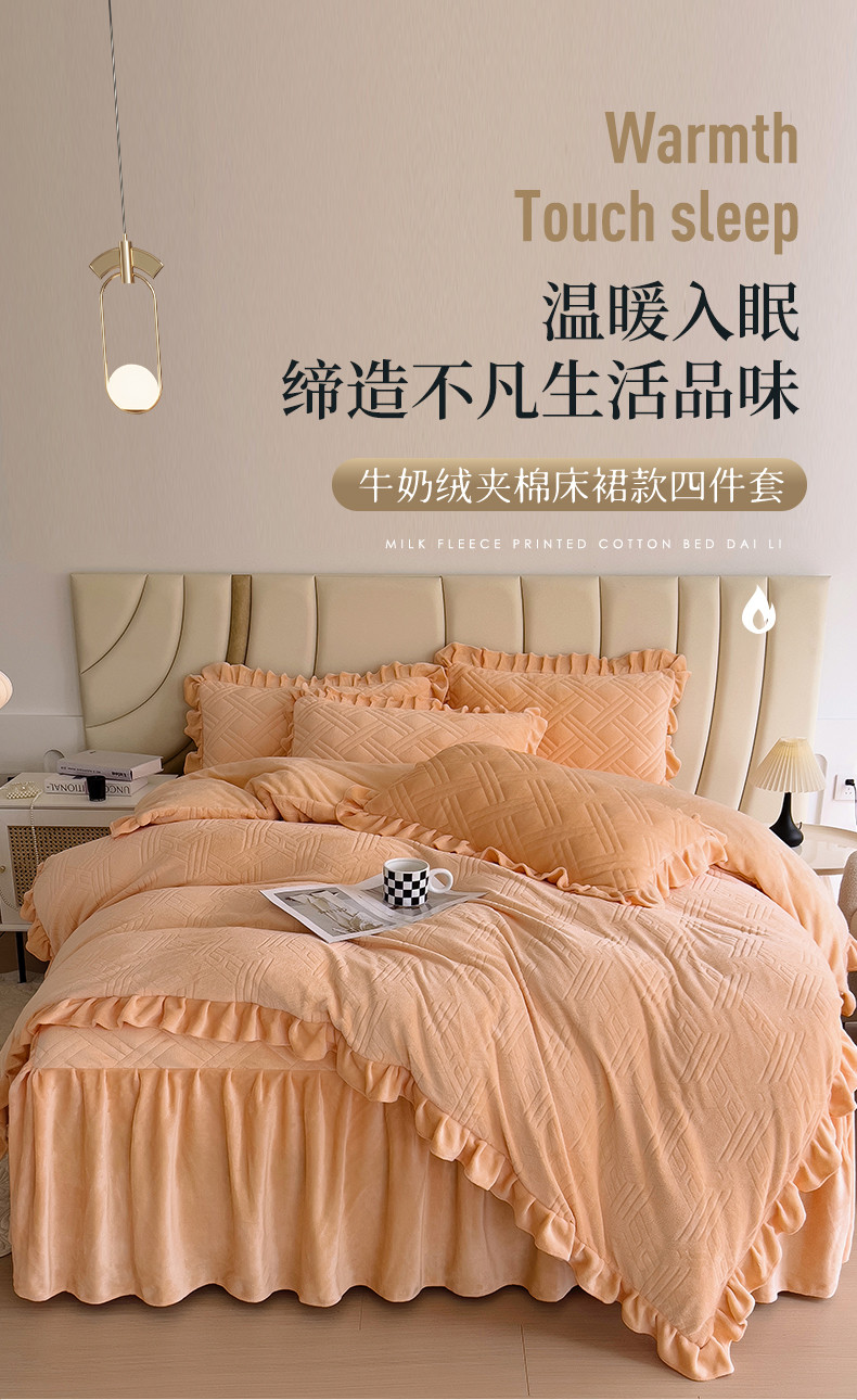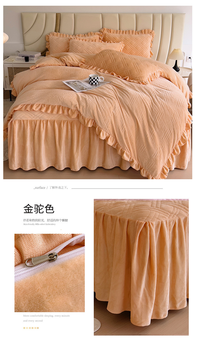 当前位置: 91家纺网 > 商品网购 > 床品套件 > 四件套 > 牛奶绒四件套 > 十个点家纺 2024新款牛奶绒床裙四件套-欣雅 欣雅金驼色