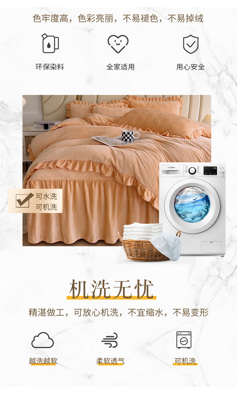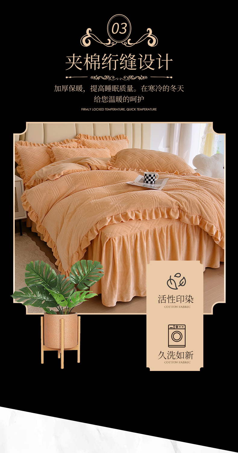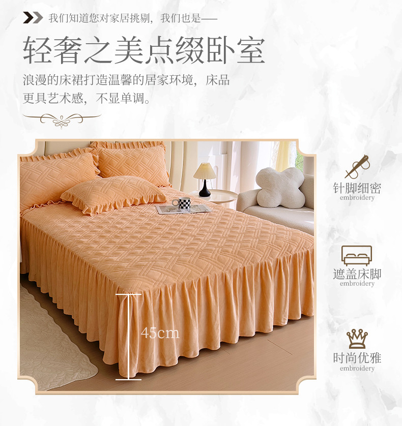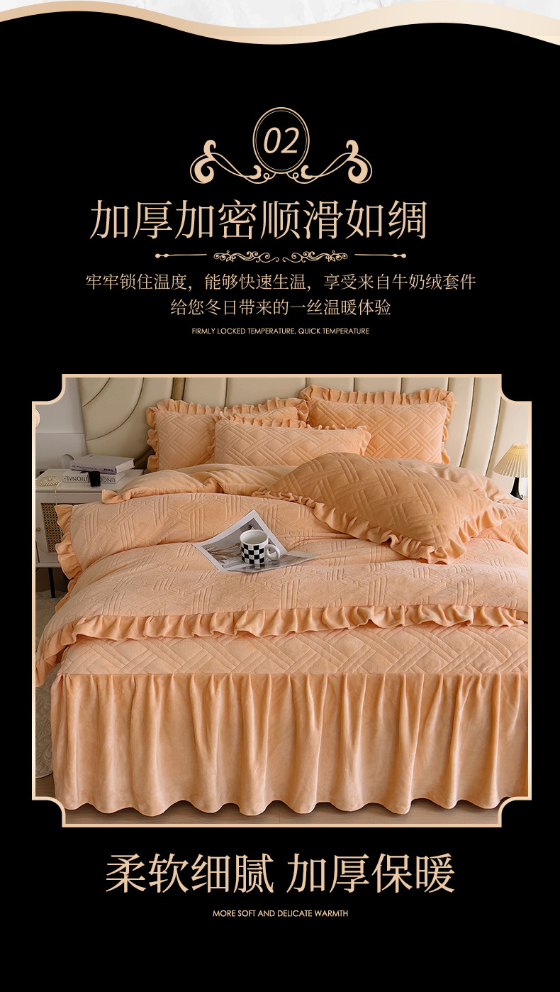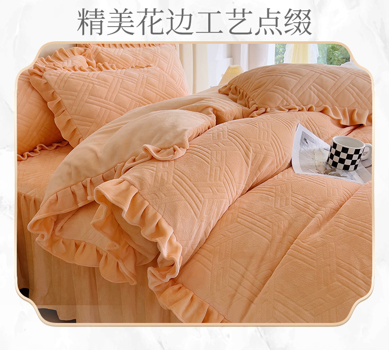 当前位置: 91家纺网 > 商品网购 > 床品套件 > 四件套 > 牛奶绒四件套 > 十个点家纺 2024新款牛奶绒床裙四件套-欣雅 欣雅金驼色