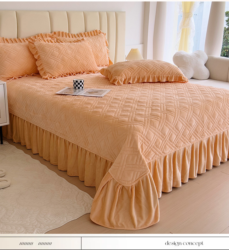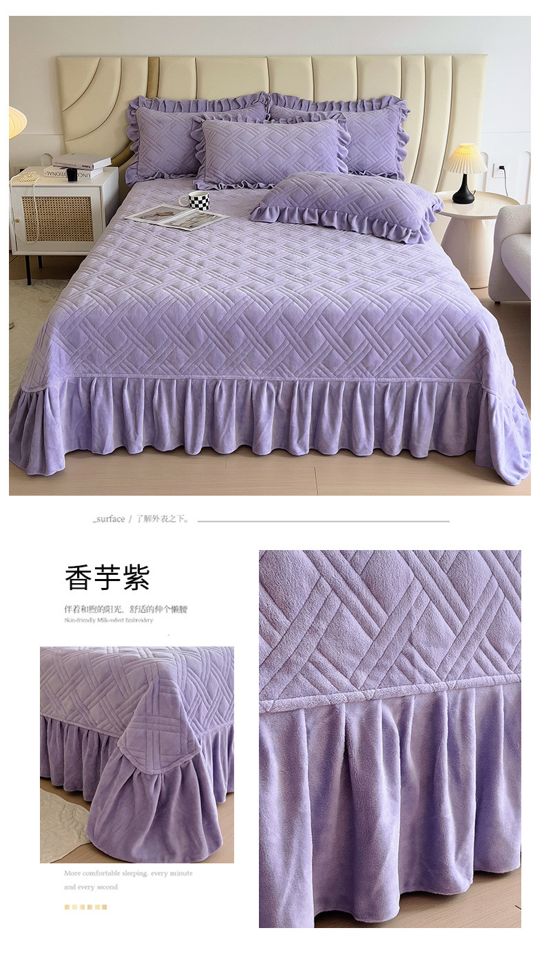 (总)十个点家纺 2024新款牛奶绒夹棉床盖三件套-唯美系列,唯美-爱尔蓝,唯美-果绿,唯美-蜜桃粉,唯美-秋桔,唯美-深灰,唯美-樱紫