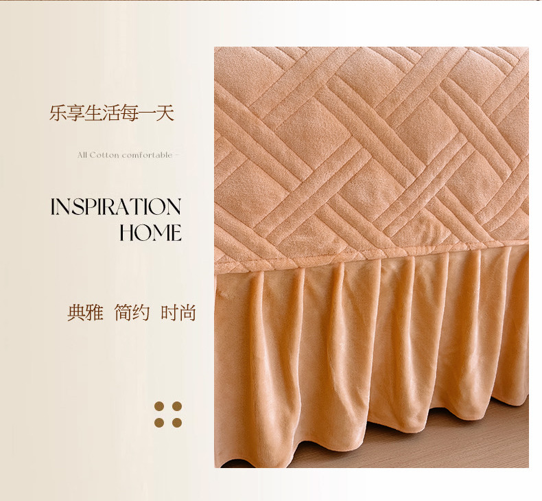 (总)十个点家纺 2025新款千鸟格磨毛绗缝夹棉纯色花边床裙三件套,经典白色,经典兰色,经典浅灰,经典浅驼,经典深灰,经典玉粉