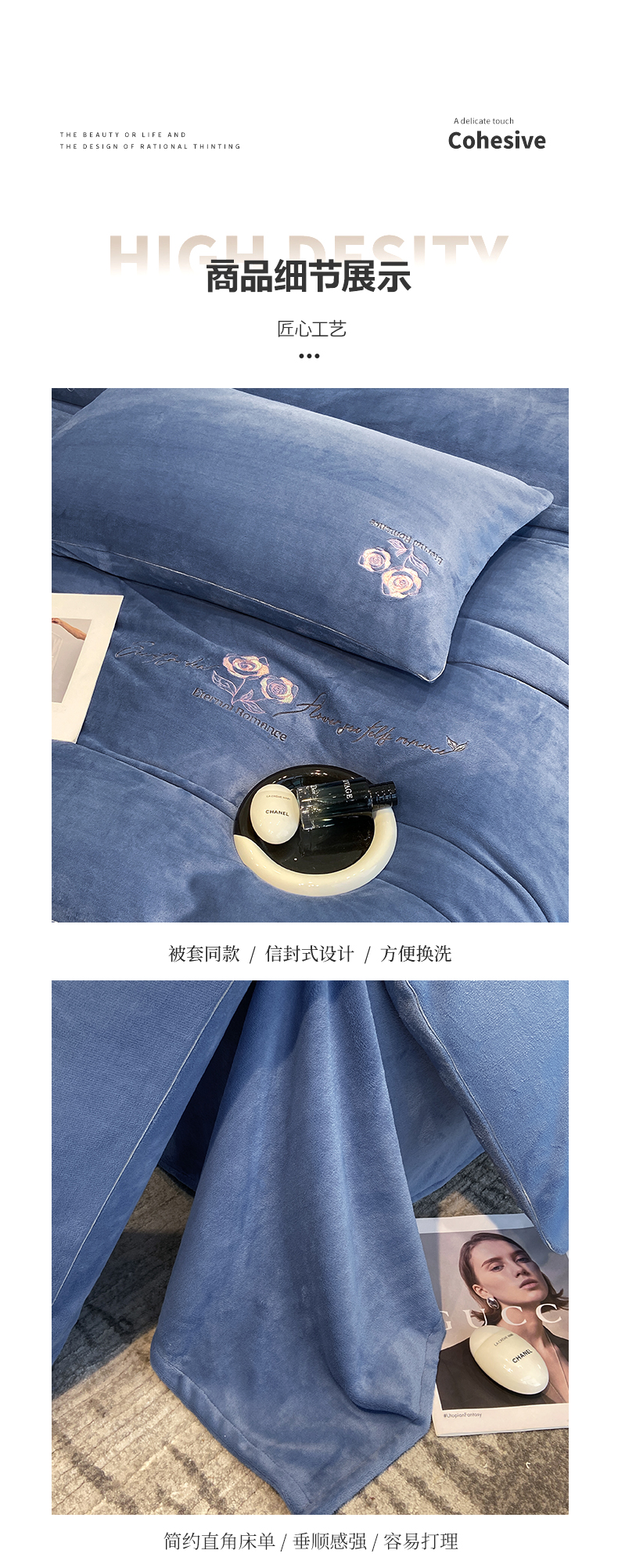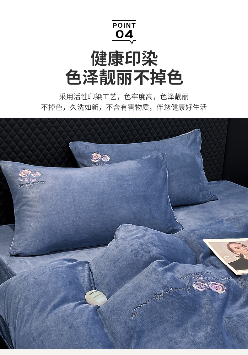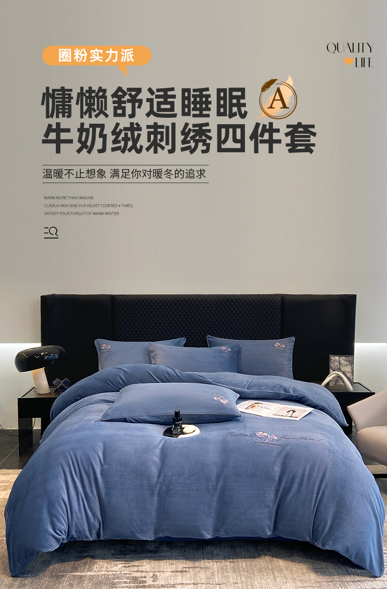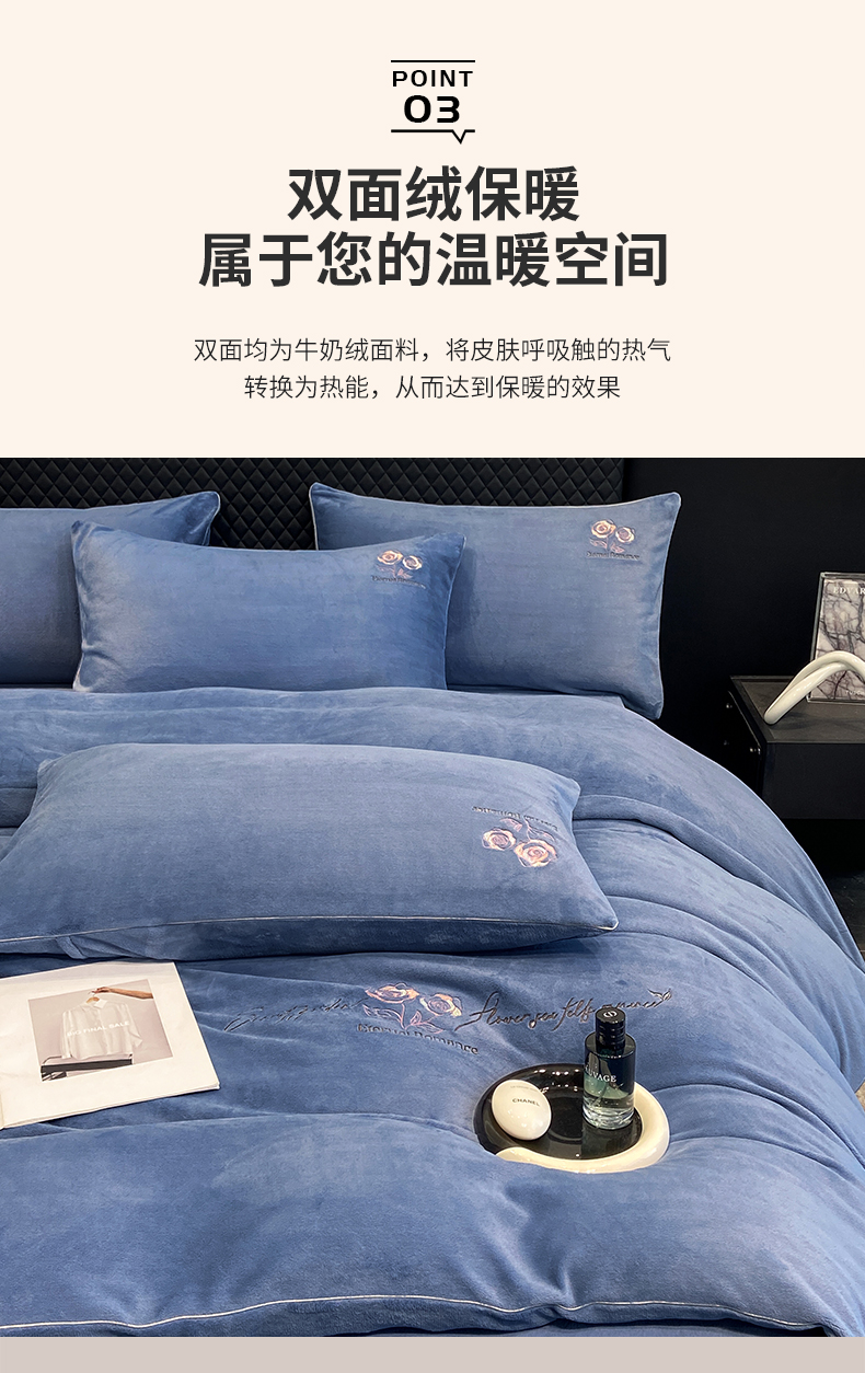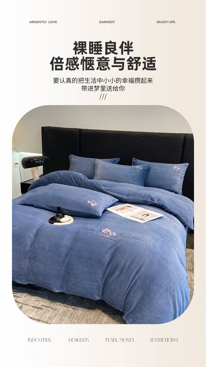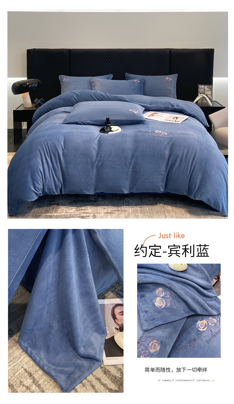商品名称:家居1号家纺 2024新款230克全工艺牛奶绒四件套 约定 约定-宾利蓝