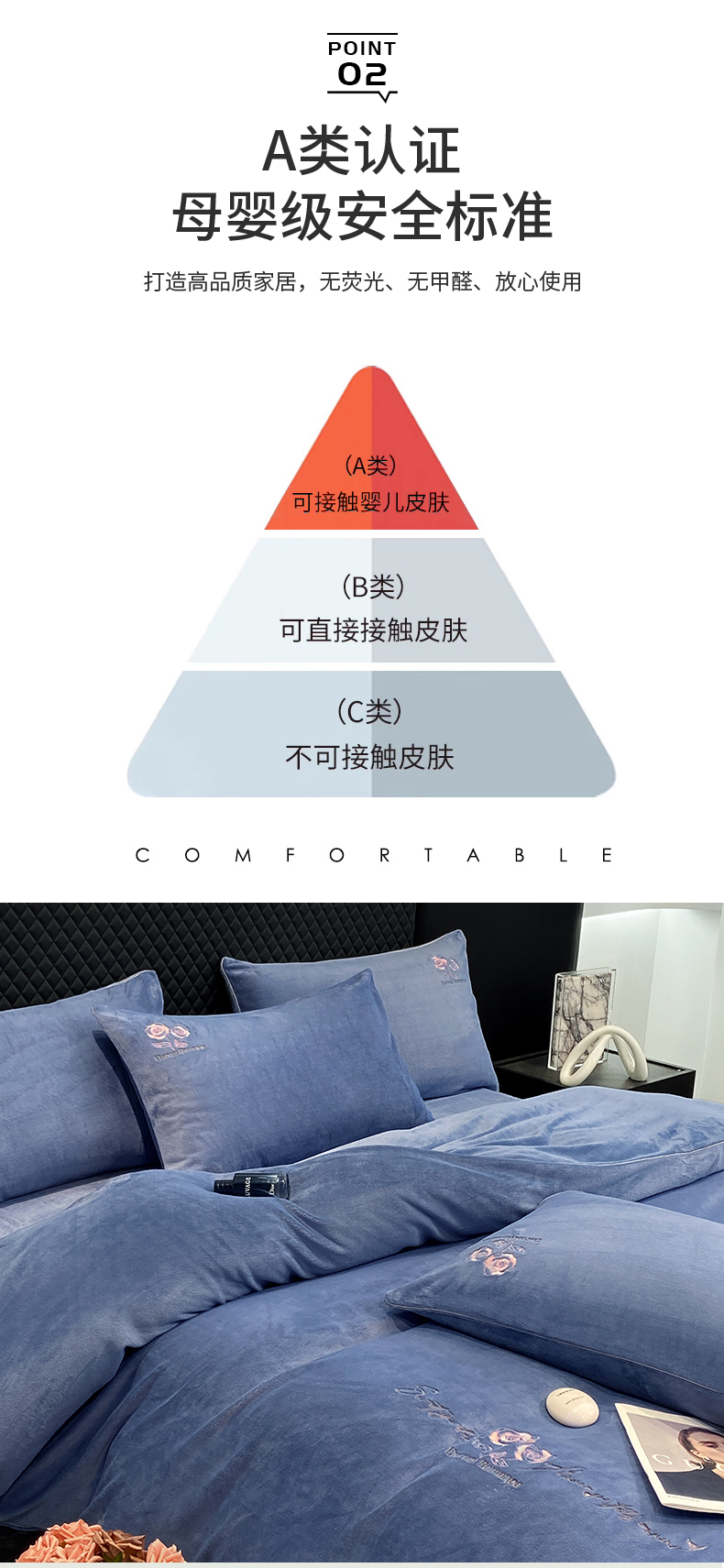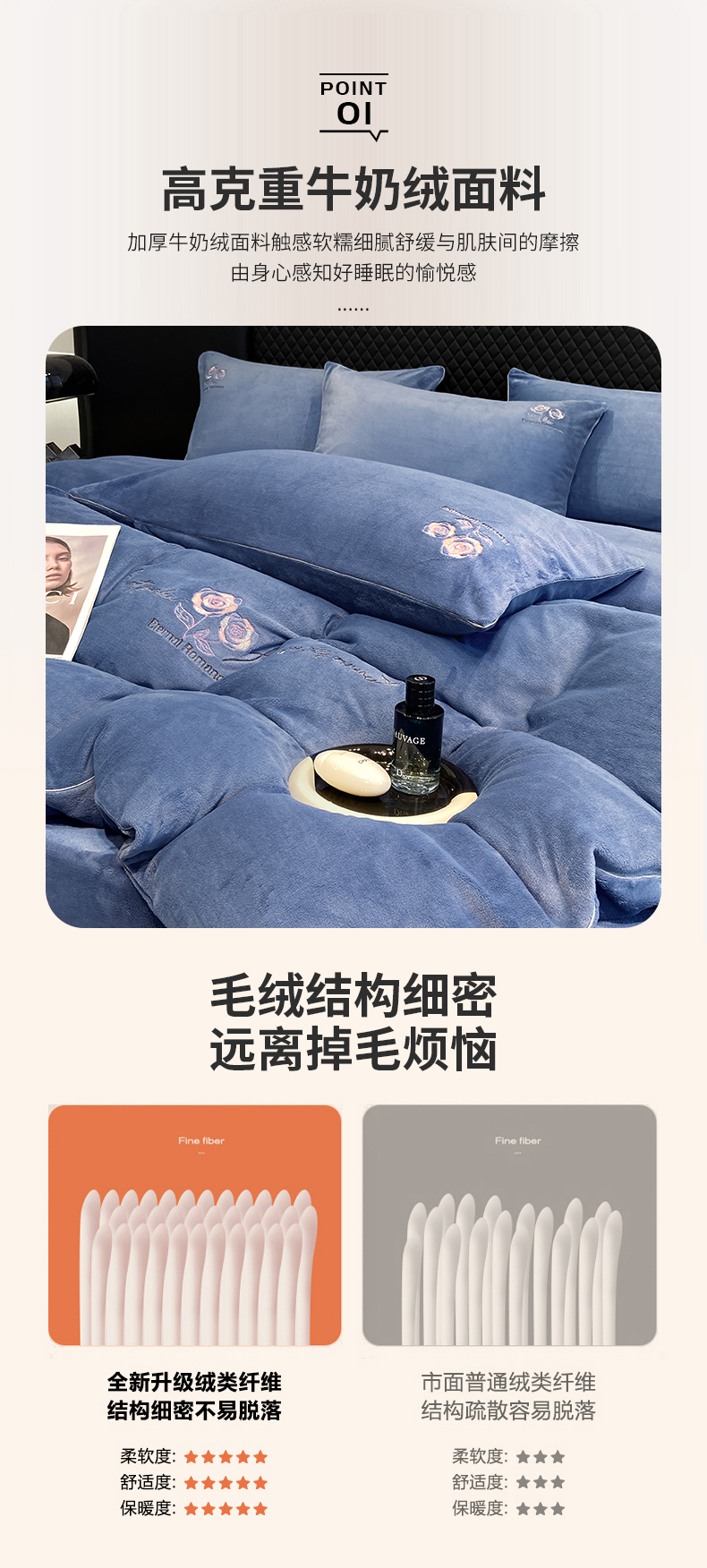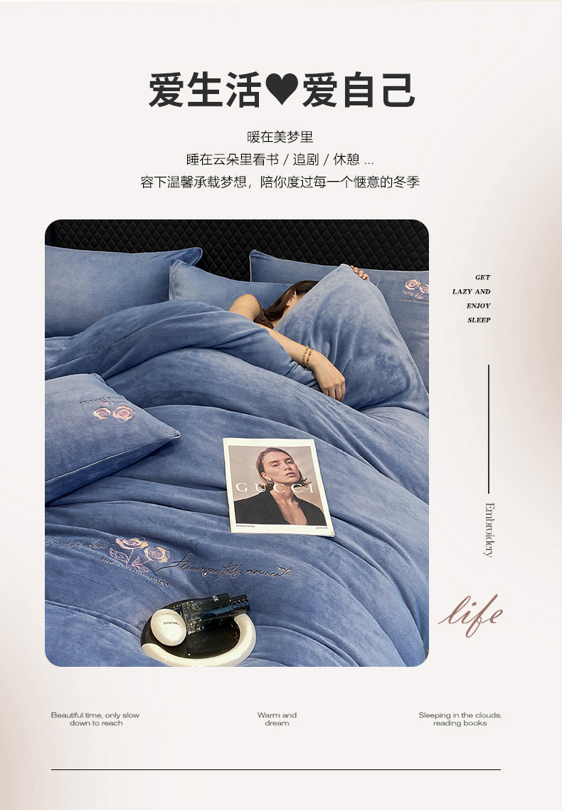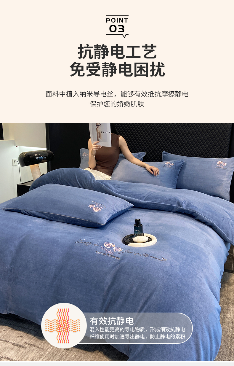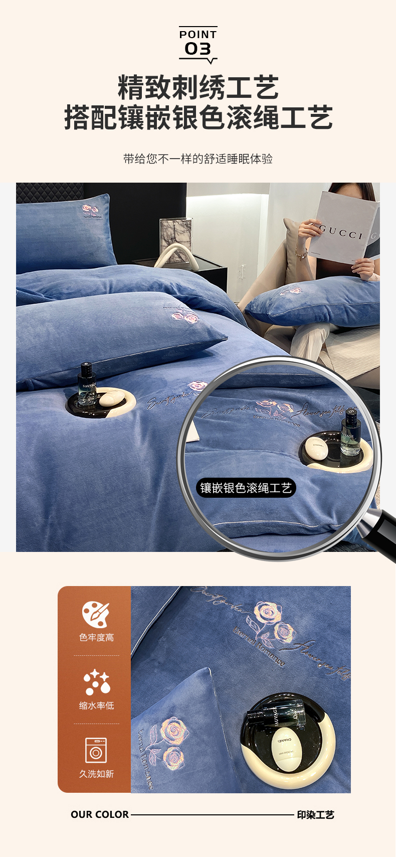 商品名称:家居1号家纺 2024新款230克全工艺牛奶绒四件套 约定 约定-宾利蓝