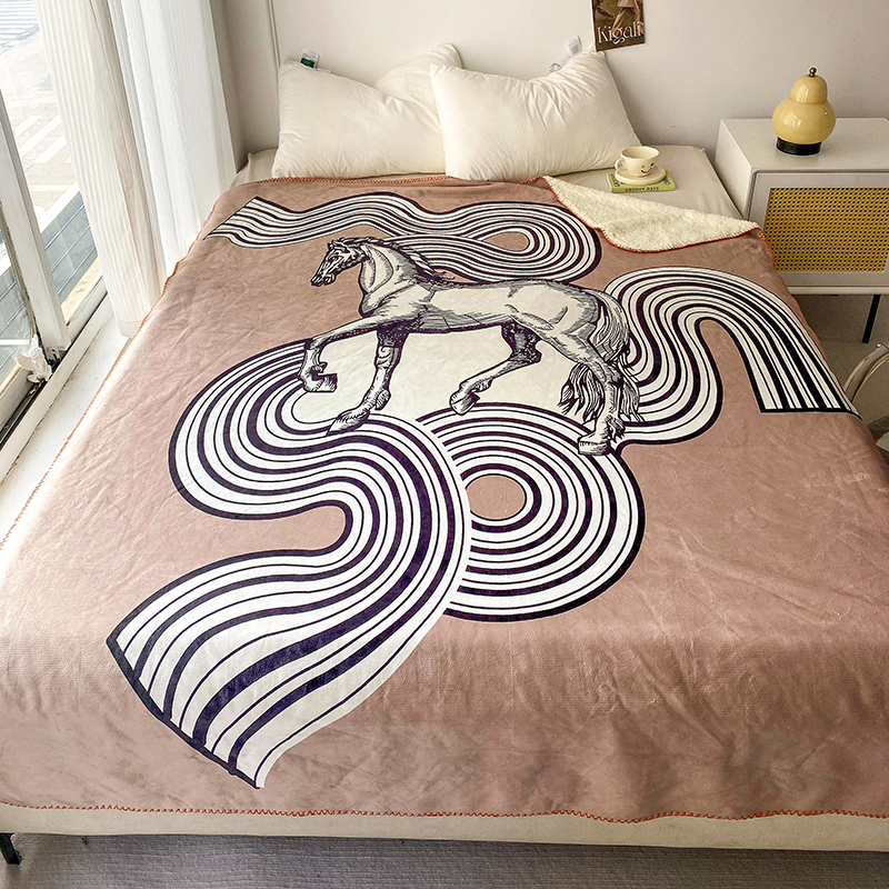 商品名称:爵仕家纺 2023新款羊羔绒毯宫廷风骏马系列 咖马