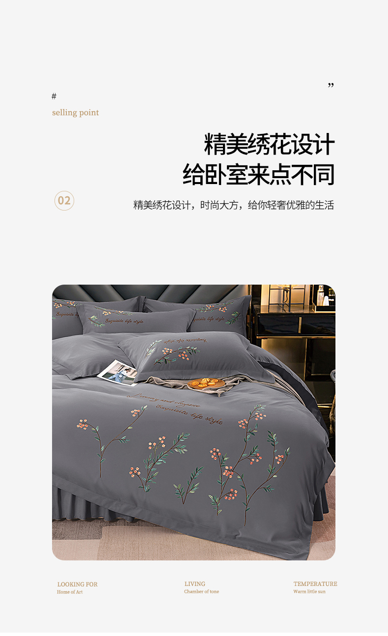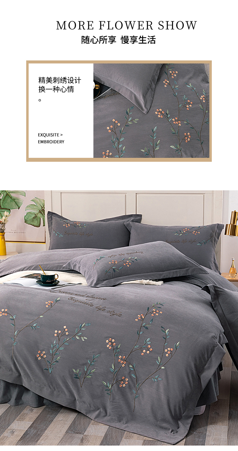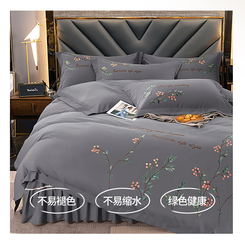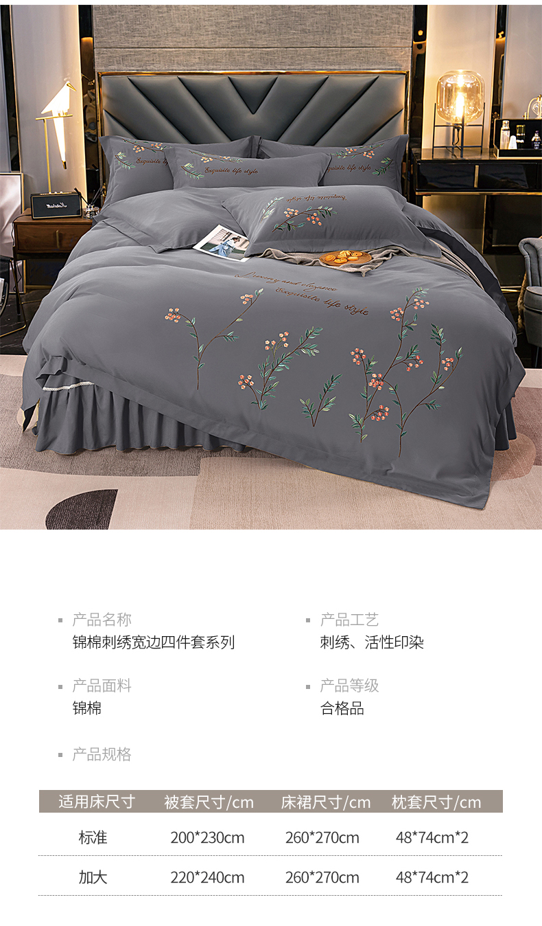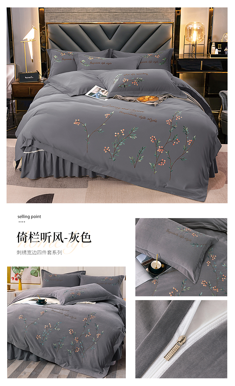 商品名称:伊而梦 2023新款锦棉宽边绣花四件套--倚栏听风 倚栏听风-灰色