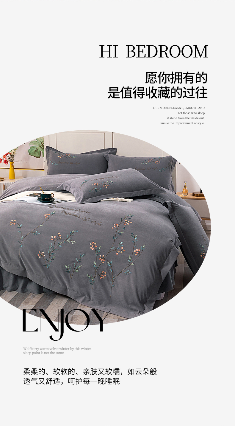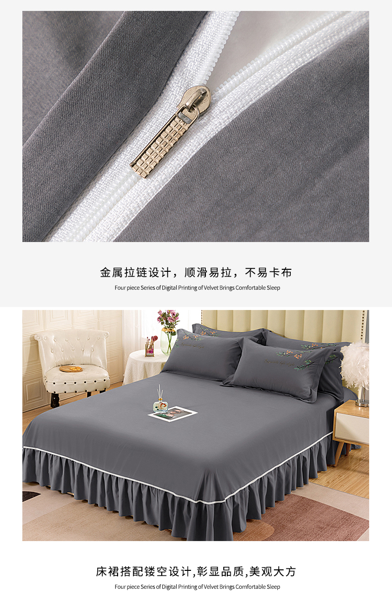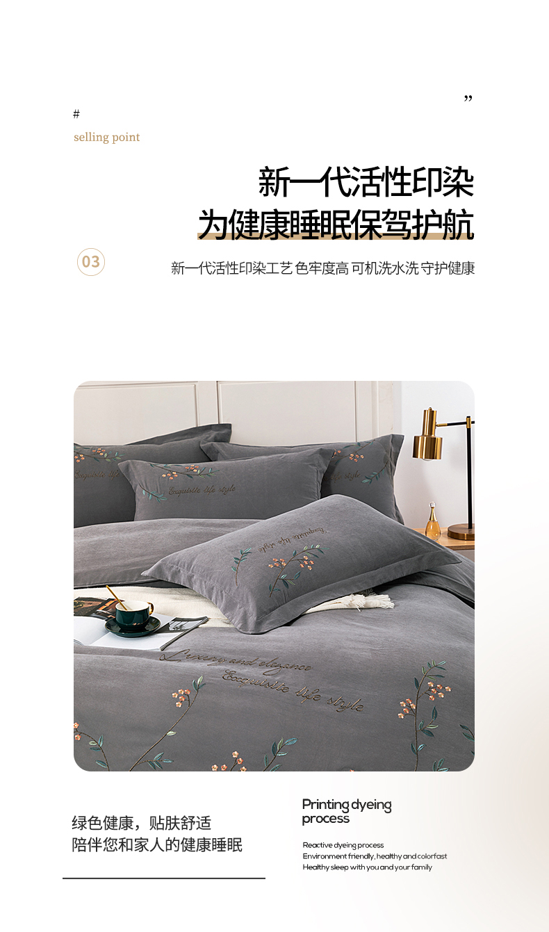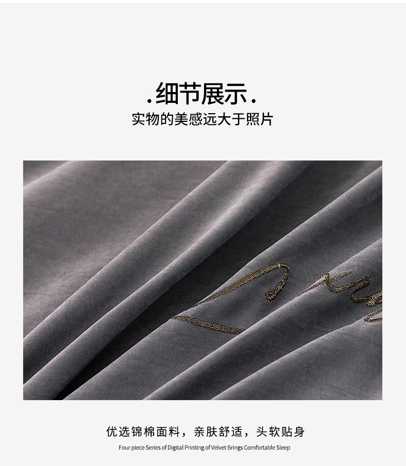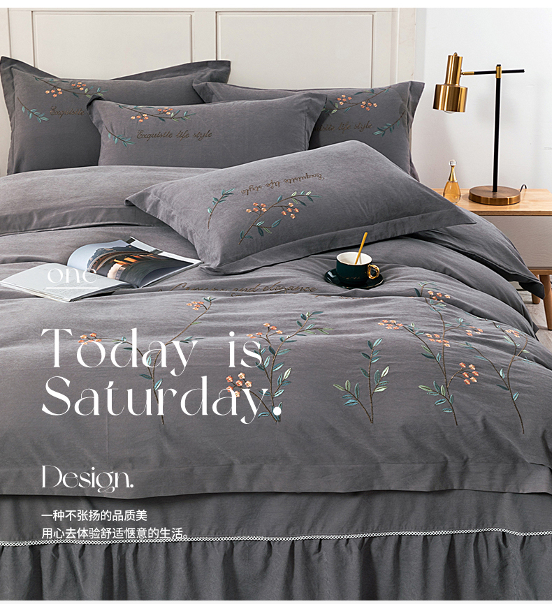 商品名称:伊而梦 2023新款锦棉宽边绣花四件套--倚栏听风 倚栏听风-灰色