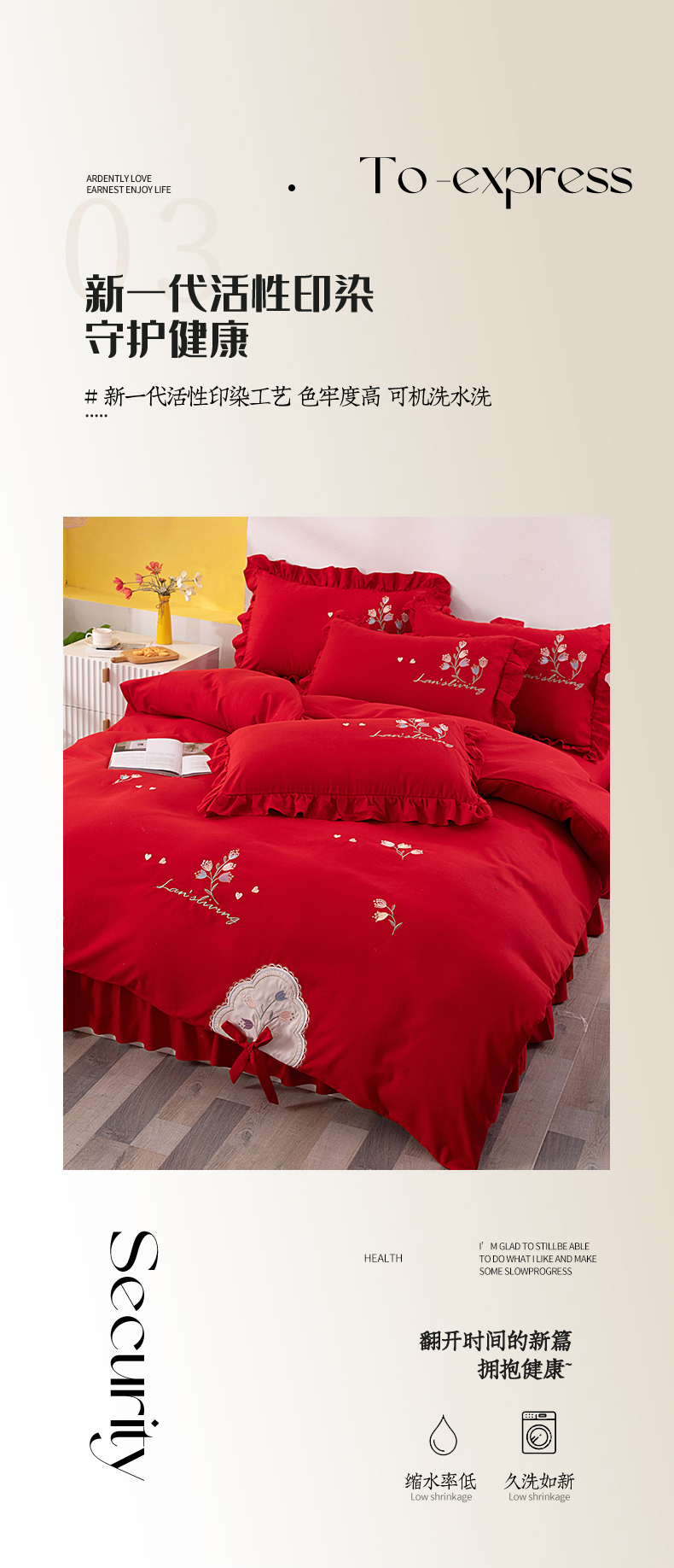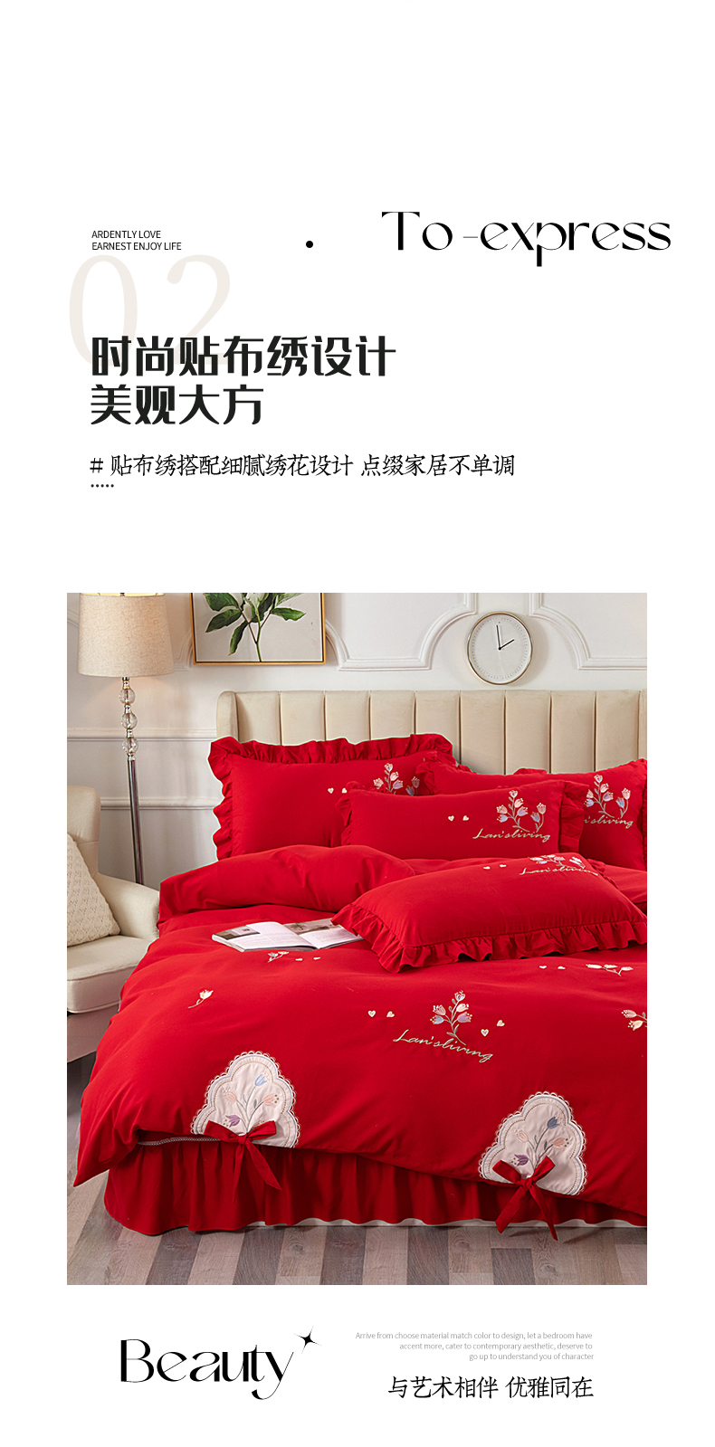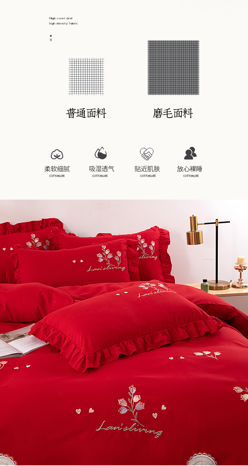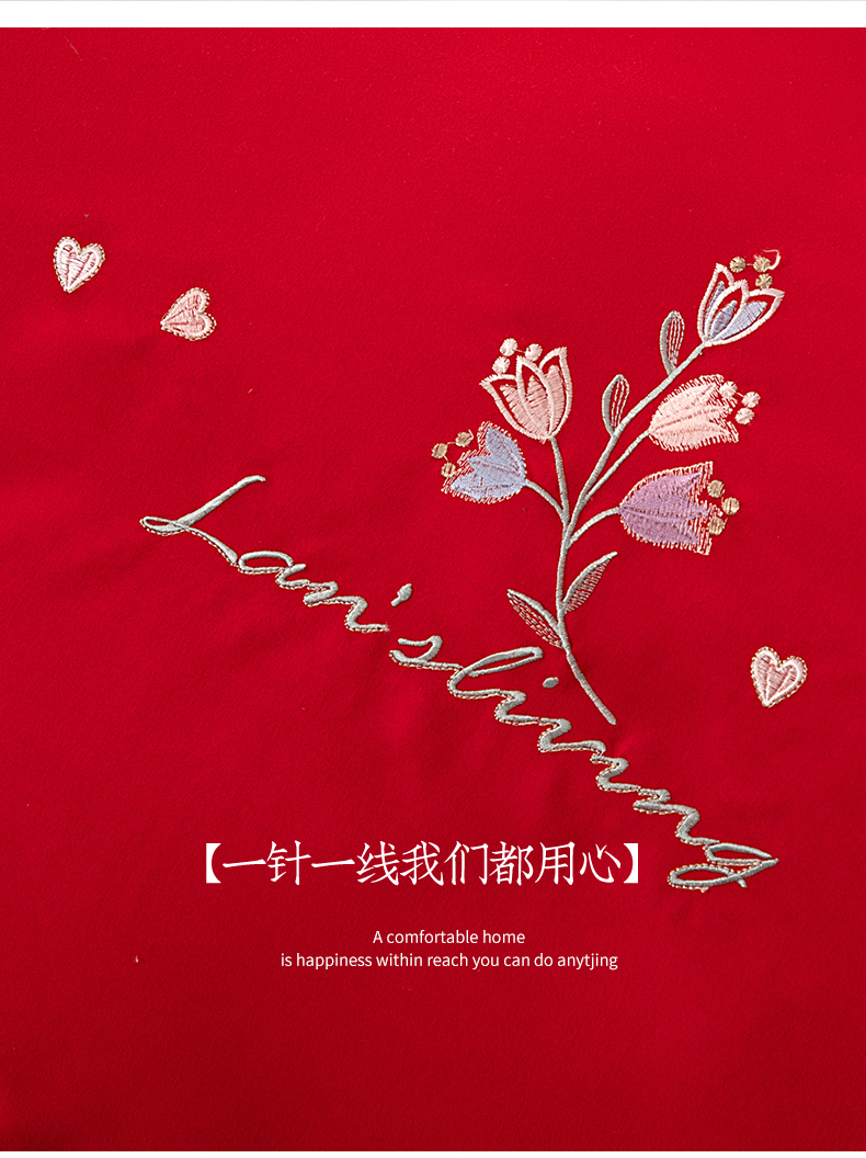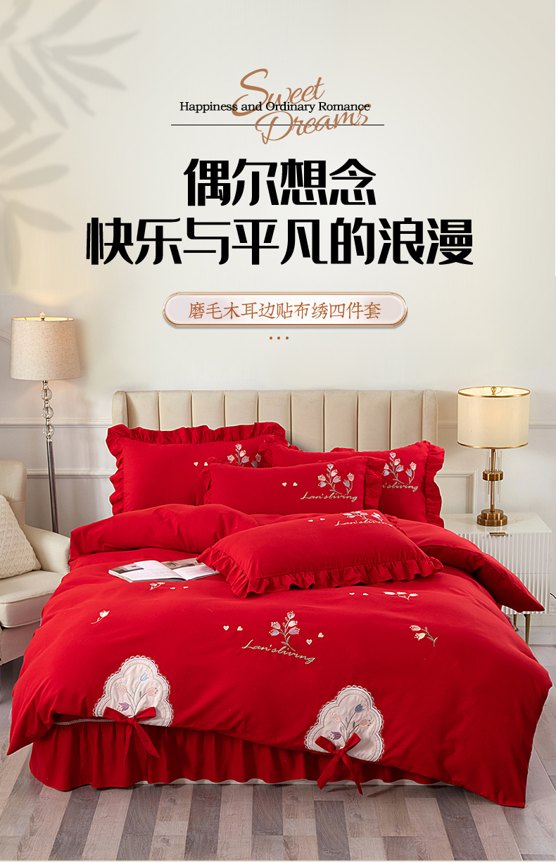 商品名称:伊而梦蚊帐 2023新款磨毛木耳边绣花贴布绣四件套--忆青春 忆青春-大红