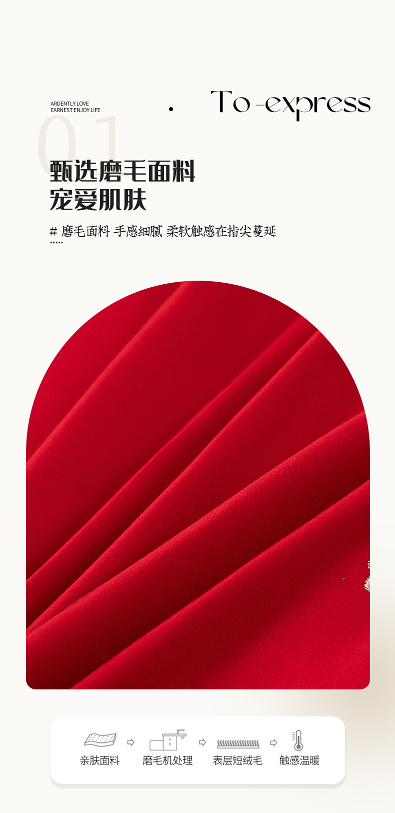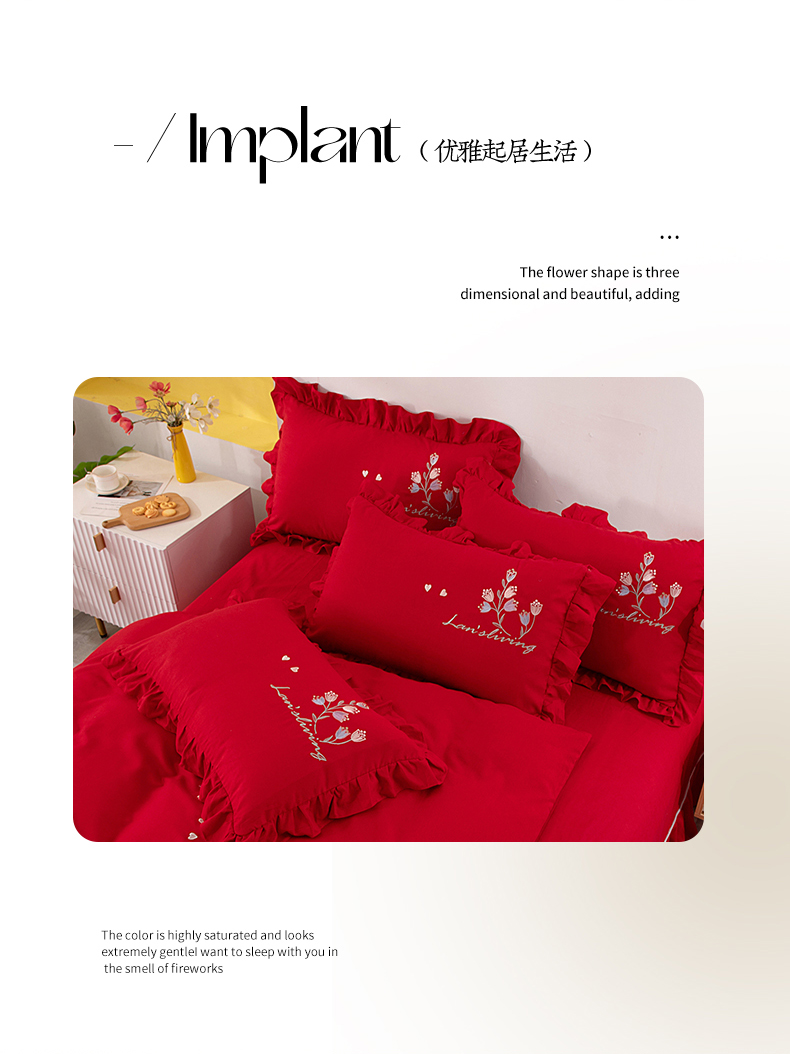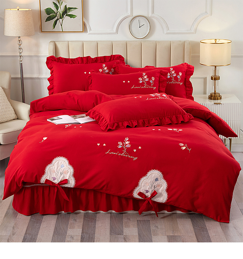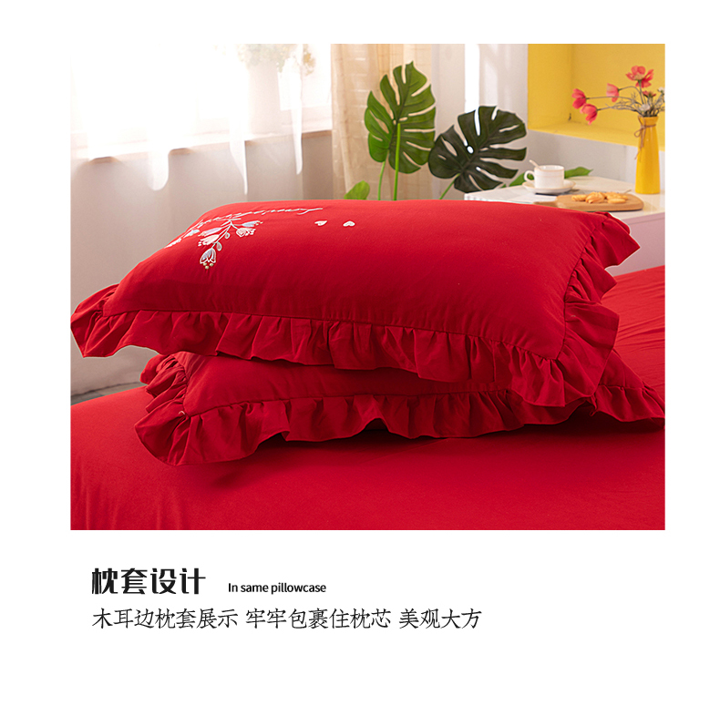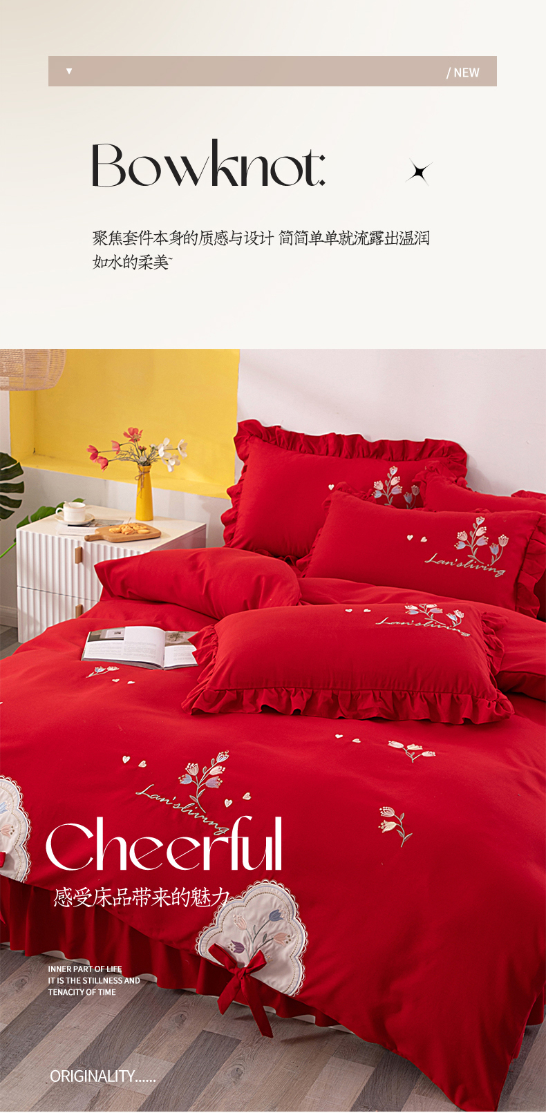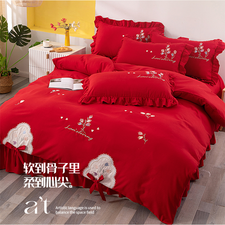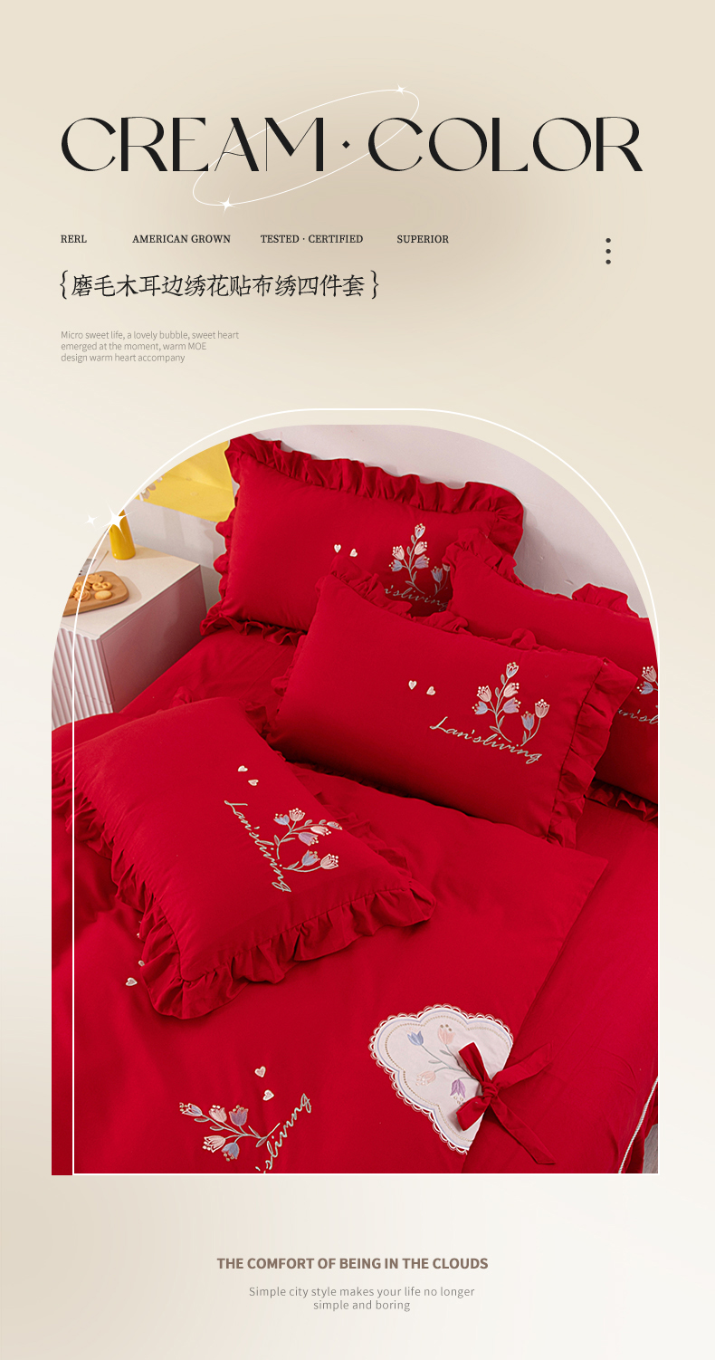 商品名称:伊而梦蚊帐 2023新款磨毛木耳边绣花贴布绣四件套--忆青春 忆青春-大红