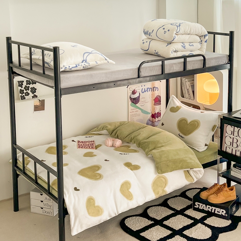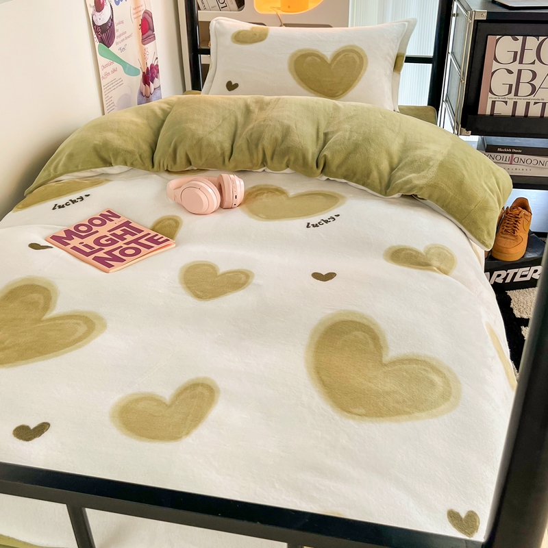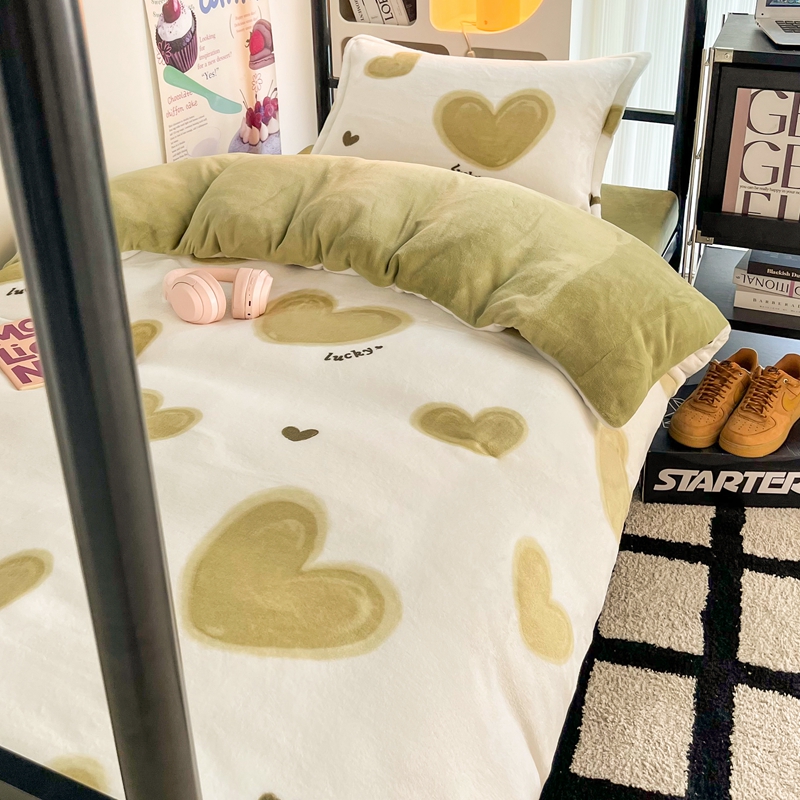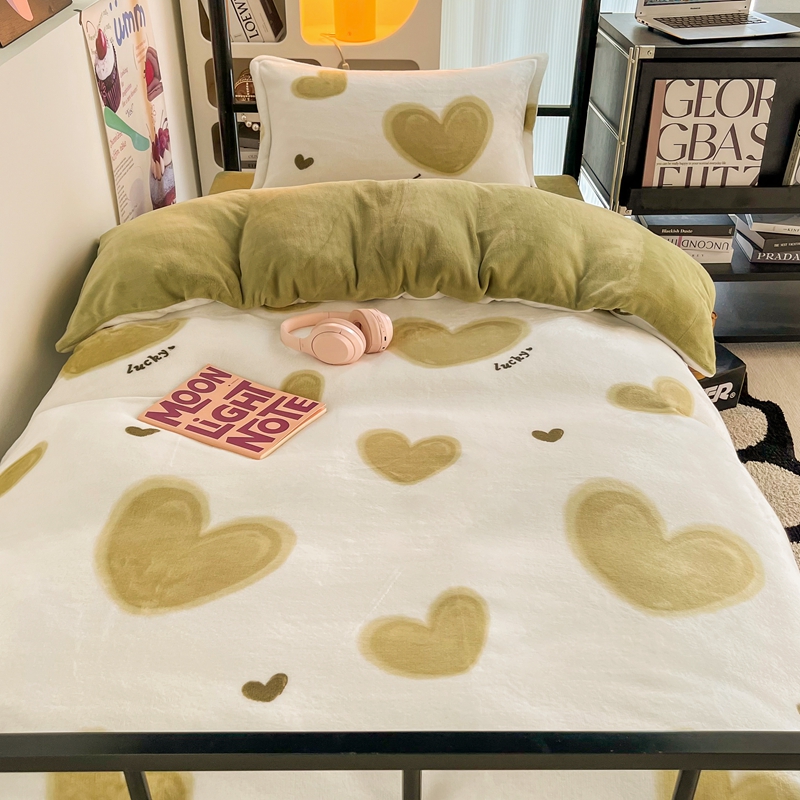 川悦生活 2023新款高克重宿舍牛奶绒三件套四件套 萌心