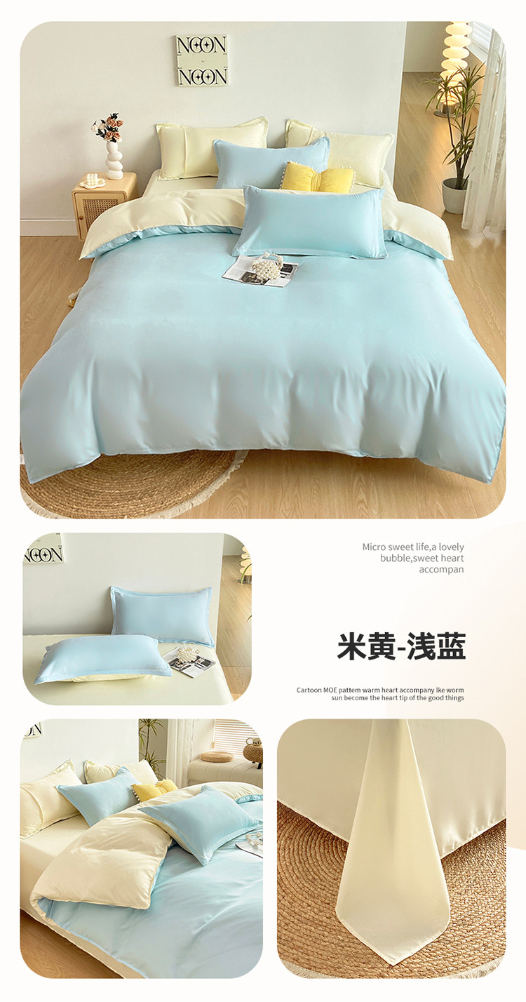 当前位置: 91家纺网 > 商品网购 > 床品套件 > 四件套 > 全棉普通四件套 > 楠沐 2025年新款纯色双拼水洗棉柔感四件套 米黄+浅蓝