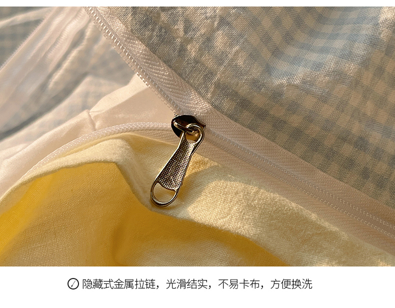 (总)桃子家居 2026新款A类韩版花边纯棉色织提花格子撞色奶油四件套,棉花边提花-蓝黄格,棉花边提花-幻境蓝格,棉花边提花-米咖格,棉花边提花-璎珞粉格