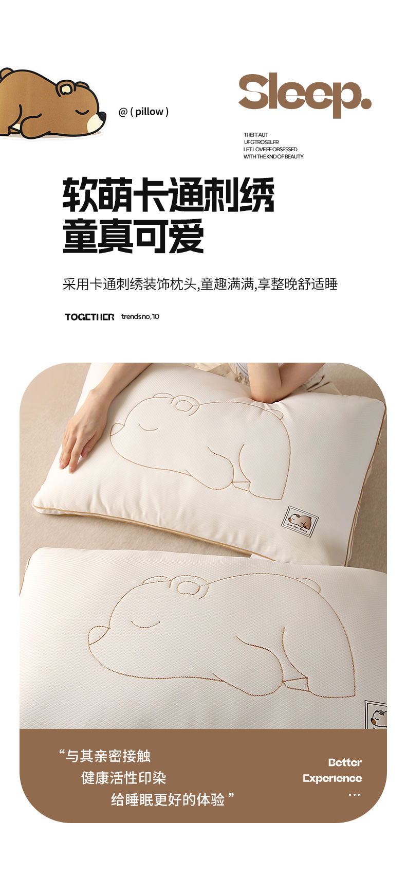 (总)梦叶草 2025新款全棉刺绣枕芯萌芽熊荞麦枕头,萌芽熊-淡天蓝35*60cm,萌芽熊-咖色35*60cm,萌芽熊-蓝色35*60cm,萌芽熊-绿色35*60cm,萌芽熊-墨绿35*60cm