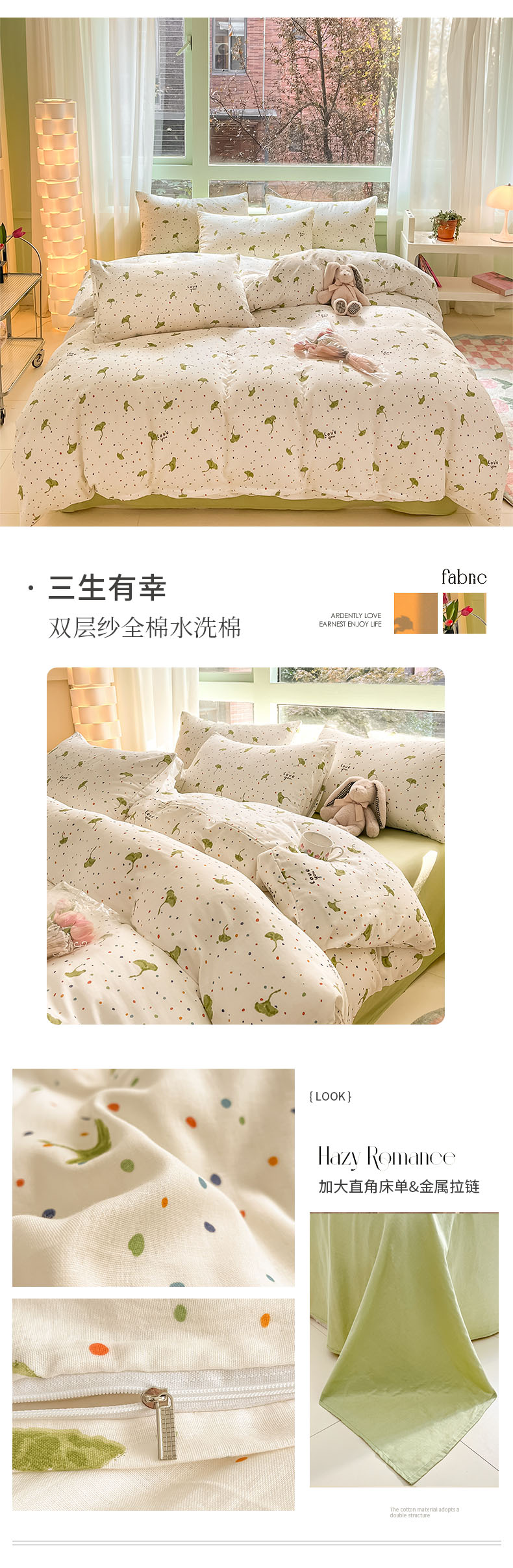 商品名称:ab家纺 2024新款全棉双层纱印花四件套 三生有幸
