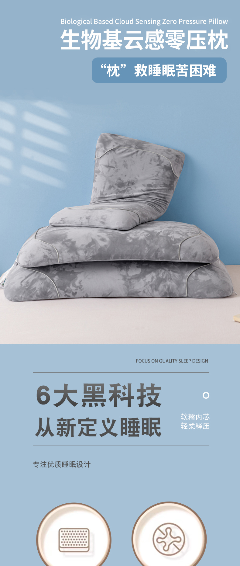 当前位置: 91家纺网 > 商品网购 > 枕头/枕芯/保健枕/颈椎枕 > 普通枕芯 > 帝诺妮枕芯坊 2024新款生物基云感零压枕 灰色女士款60*40*8cm/只
