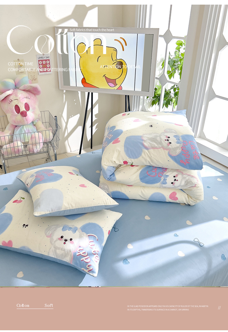 (总)DoDo 兜兜 2025新款卡通全棉纯棉小清新三四件套系列 (可定做尺寸),星星仔,爱豆熊,豹纹小熊,多彩笑脸,粉粉猫,狗狗家族,假日小狗,萝莉兔,蘑菇小狗,围裙小熊,小狗笔记