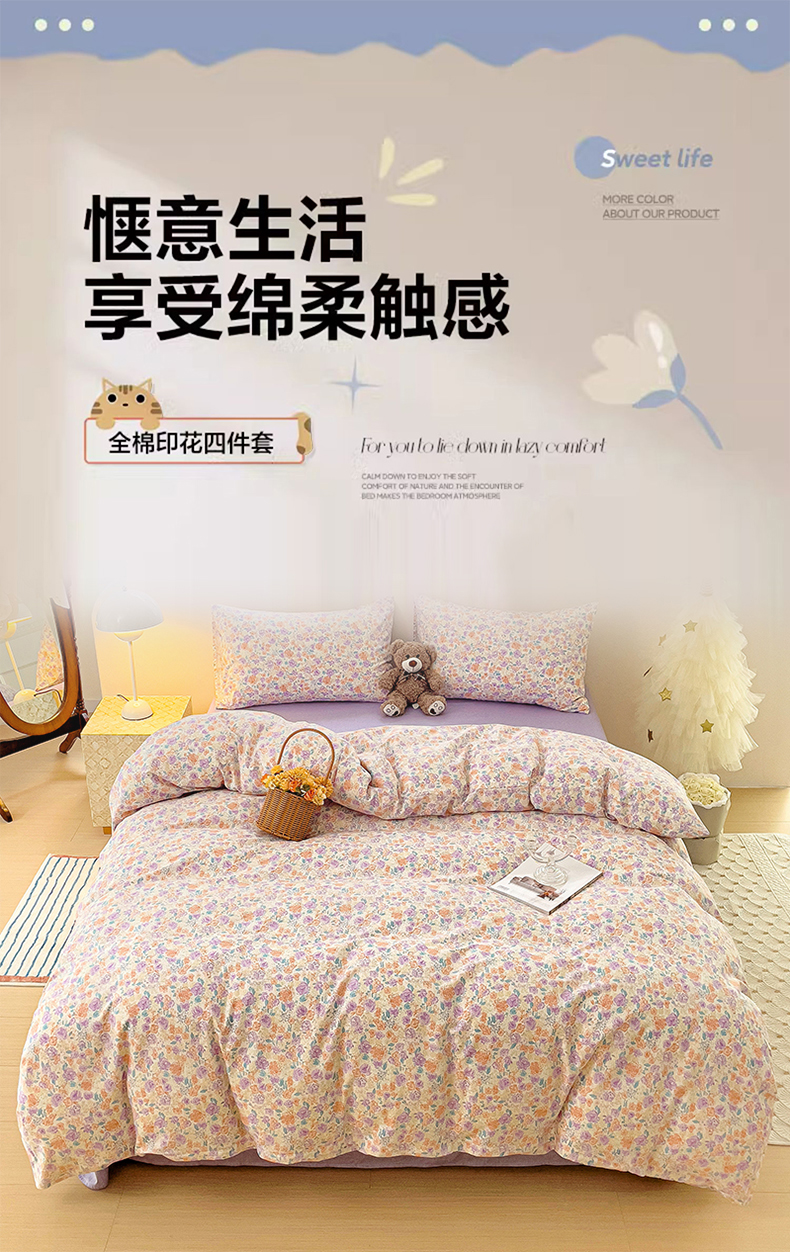 珺柔家纺 2024新款40支13070全棉印花四件套 蔷薇