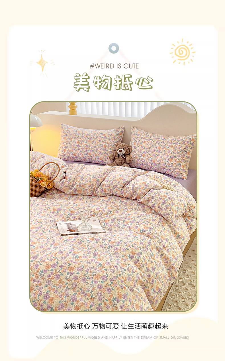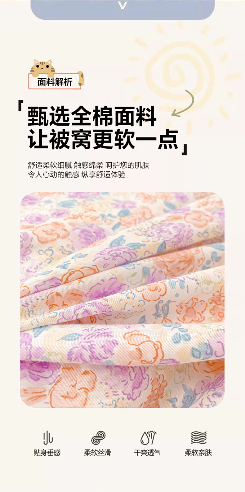 (总)珺柔家纺 2025新款全棉双层纱印花四件套,粉豹纹,焦糖小曲奇,礼物女孩,猫狗日记,奶油星空,线条苹果猫,小飞象,小狗的家,樱桃,樱桃西高地
