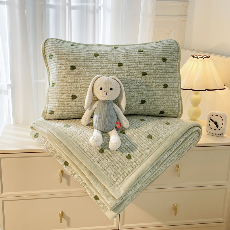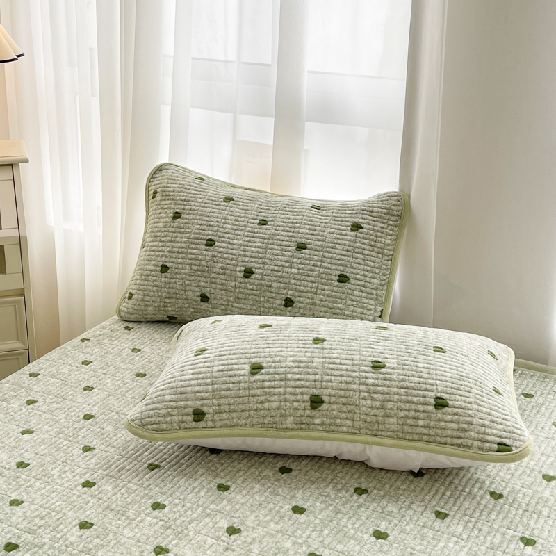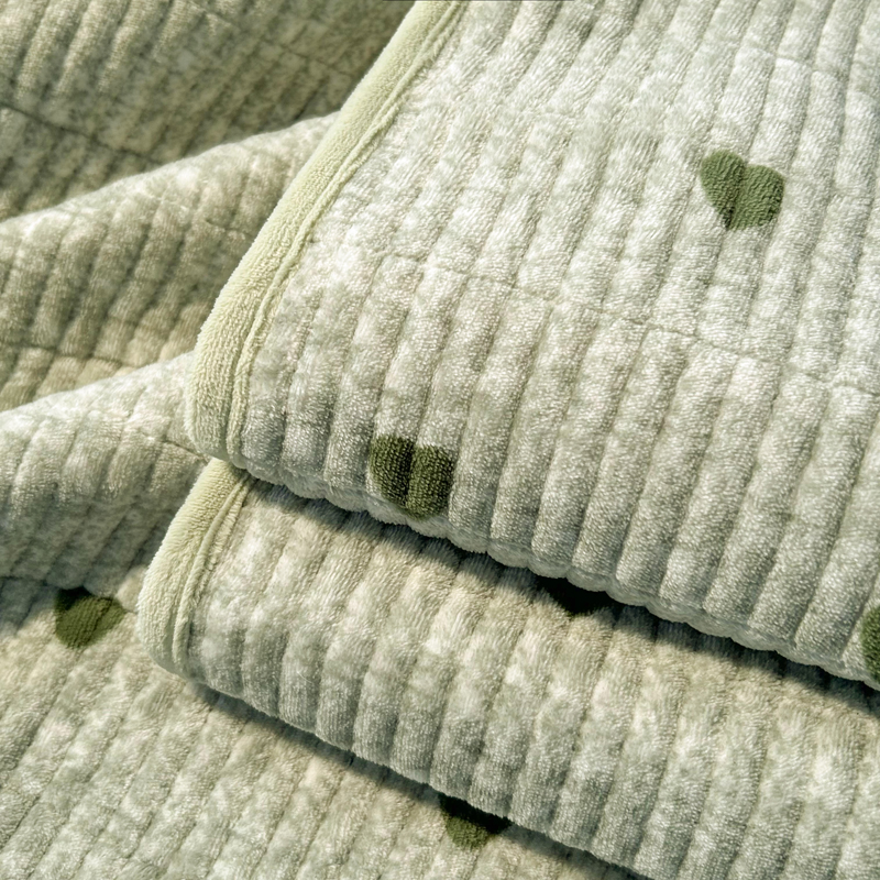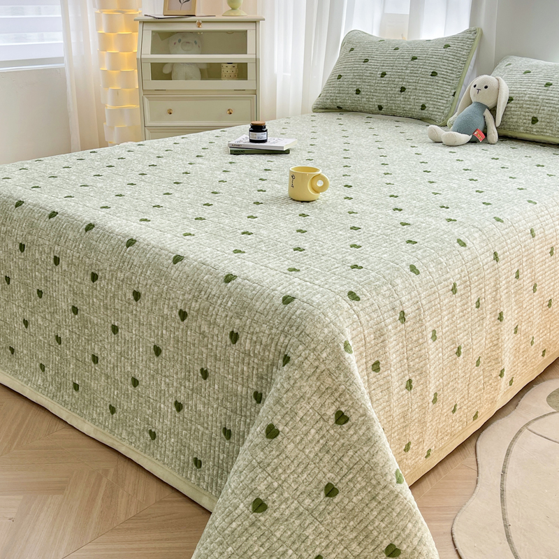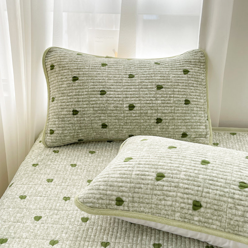 梵朴 2024新款牛奶绒直角款夹棉床盖 绿爱心