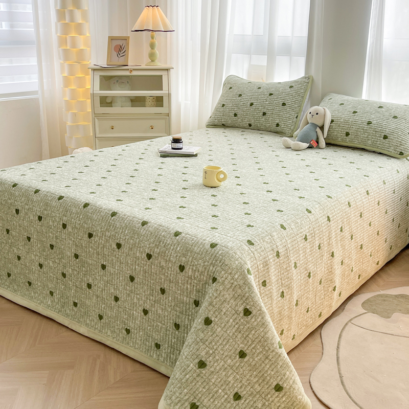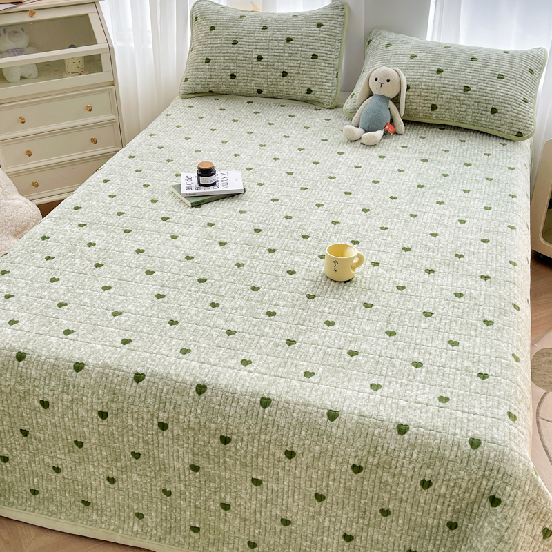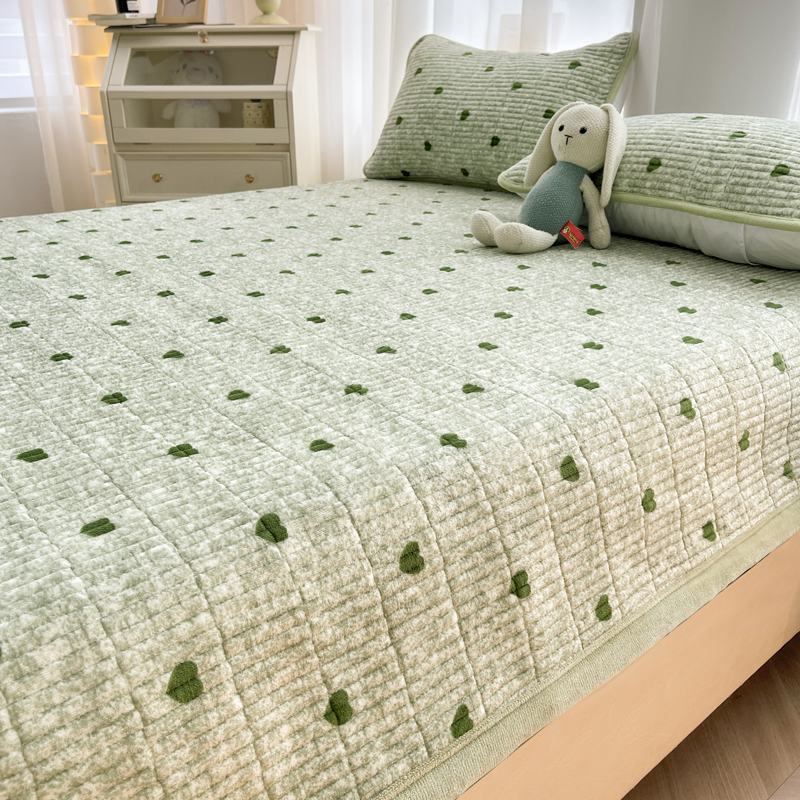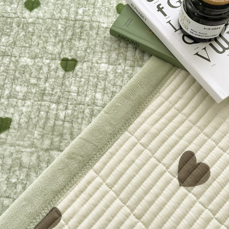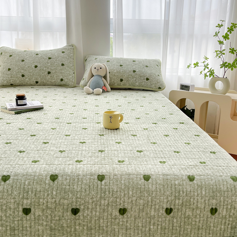 商品名称:梵朴 2024新款牛奶绒直角款夹棉床盖 绿爱心
