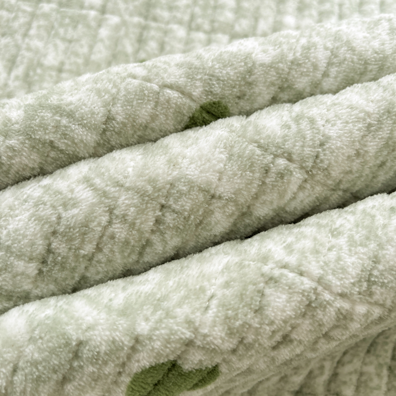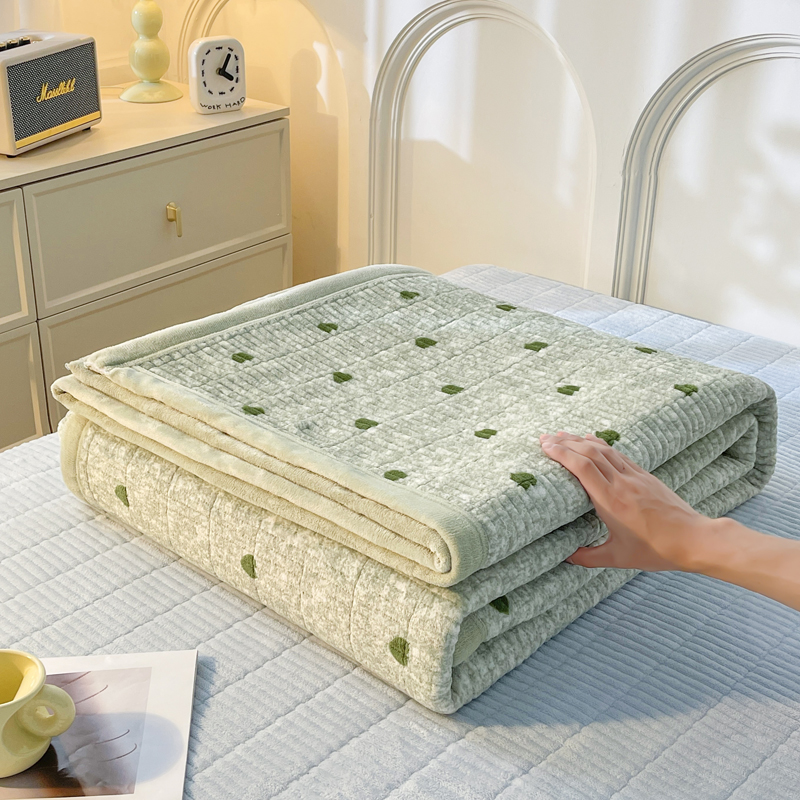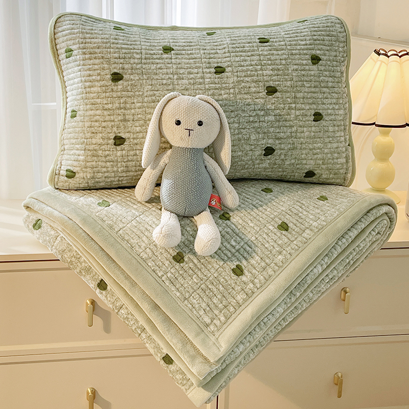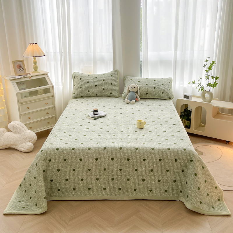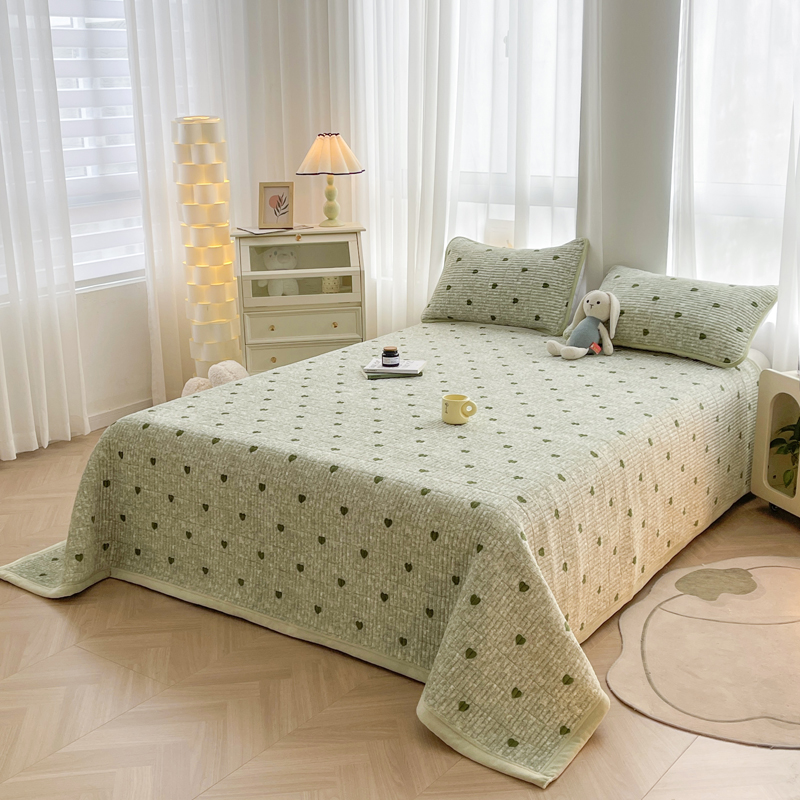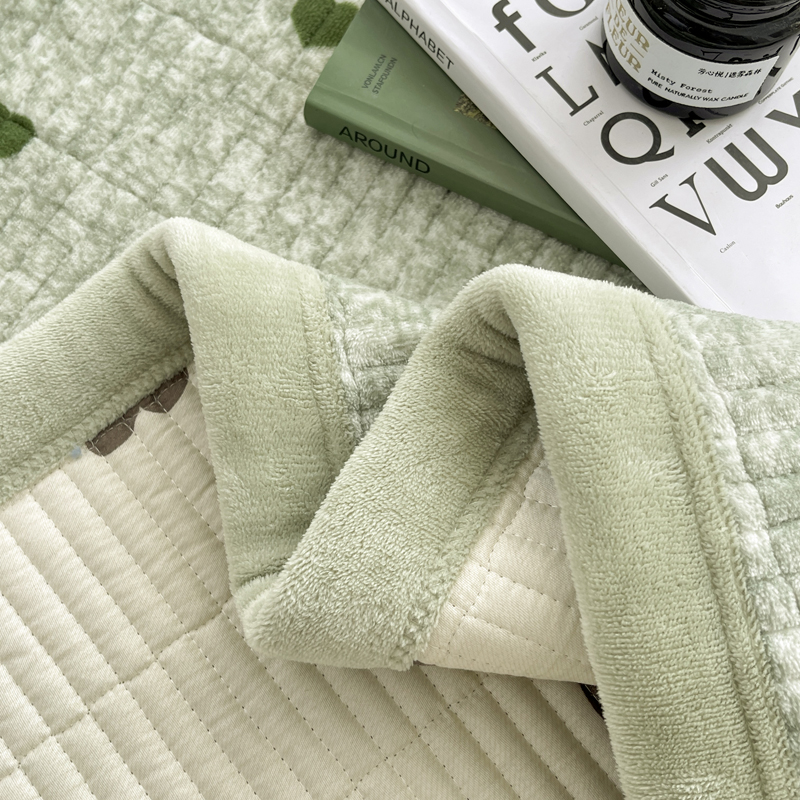 商品名称:梵朴 2024新款牛奶绒直角款夹棉床盖 绿爱心