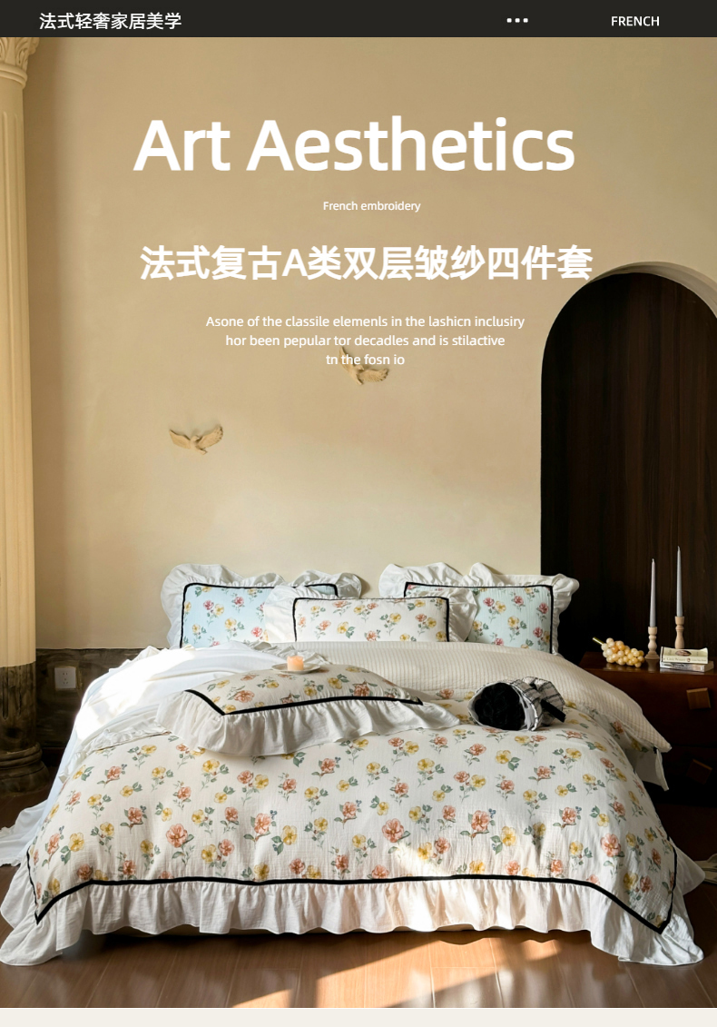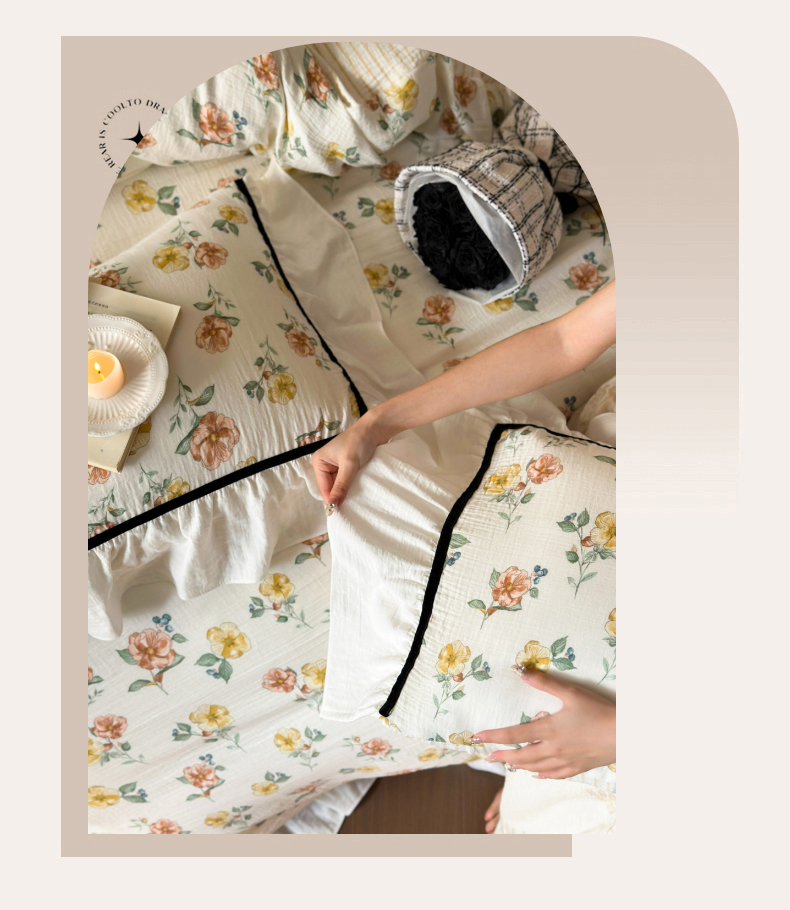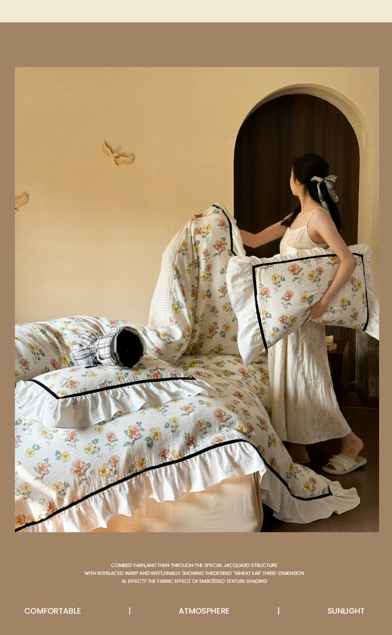 (总)玛奇朵 2025秋冬新品韩国色织A类三层皱皱纱系列四件套,山屿,时序,巷往