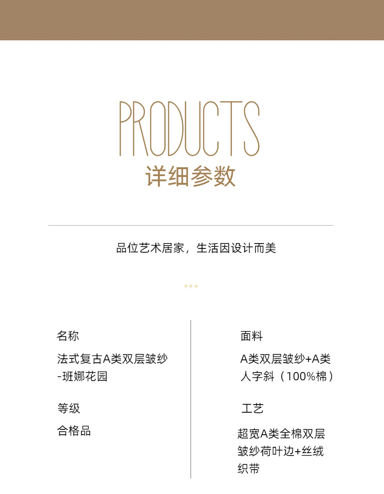 商品名称:玛奇朵 2024新款法式复古全棉A类双层皱纱-班娜花园 班娜花园-米