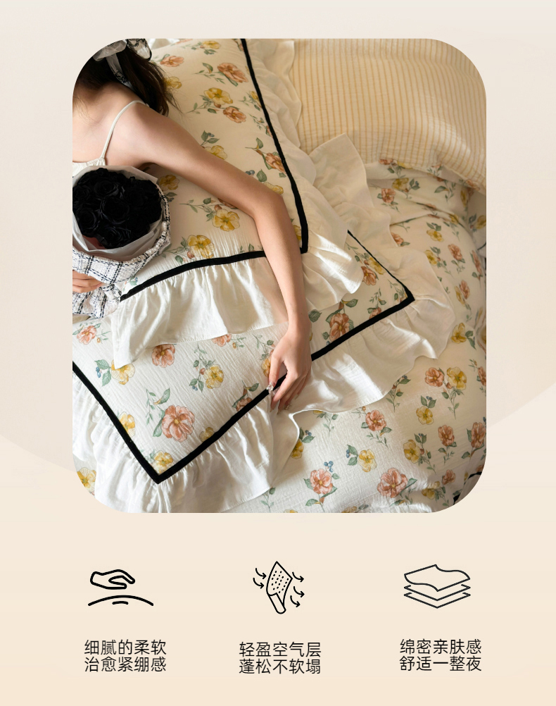 玛奇朵 2024新款法式复古全棉A类双层皱纱-班娜花园 班娜花园-米