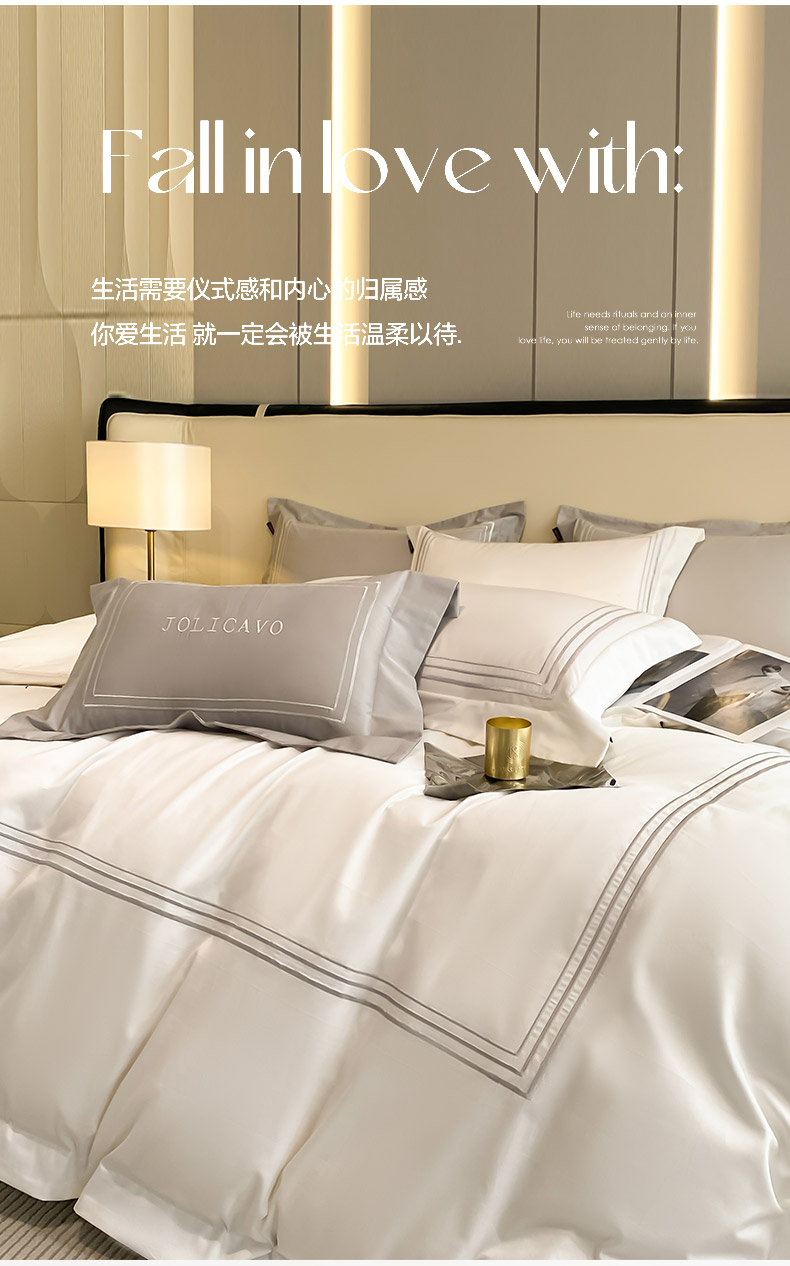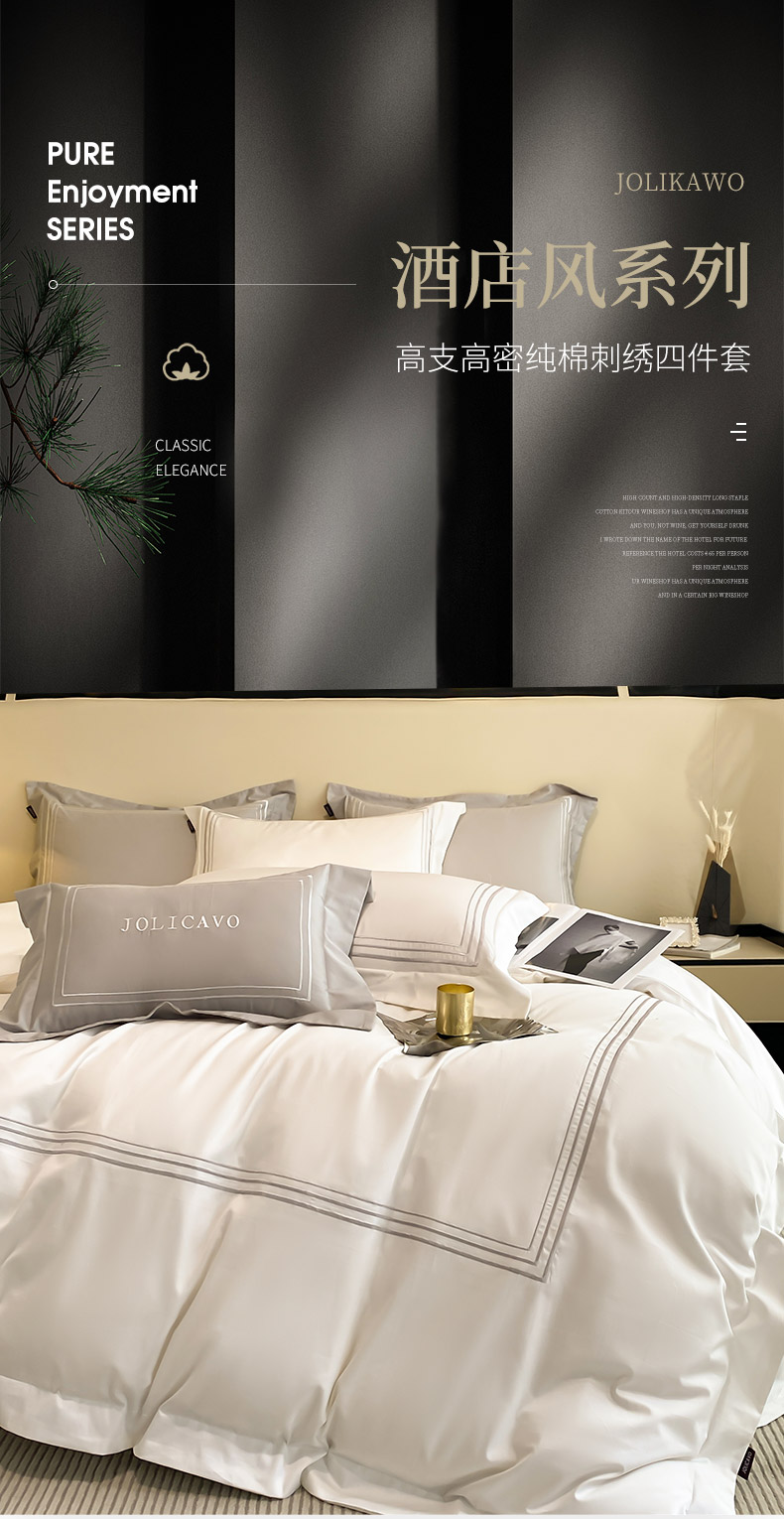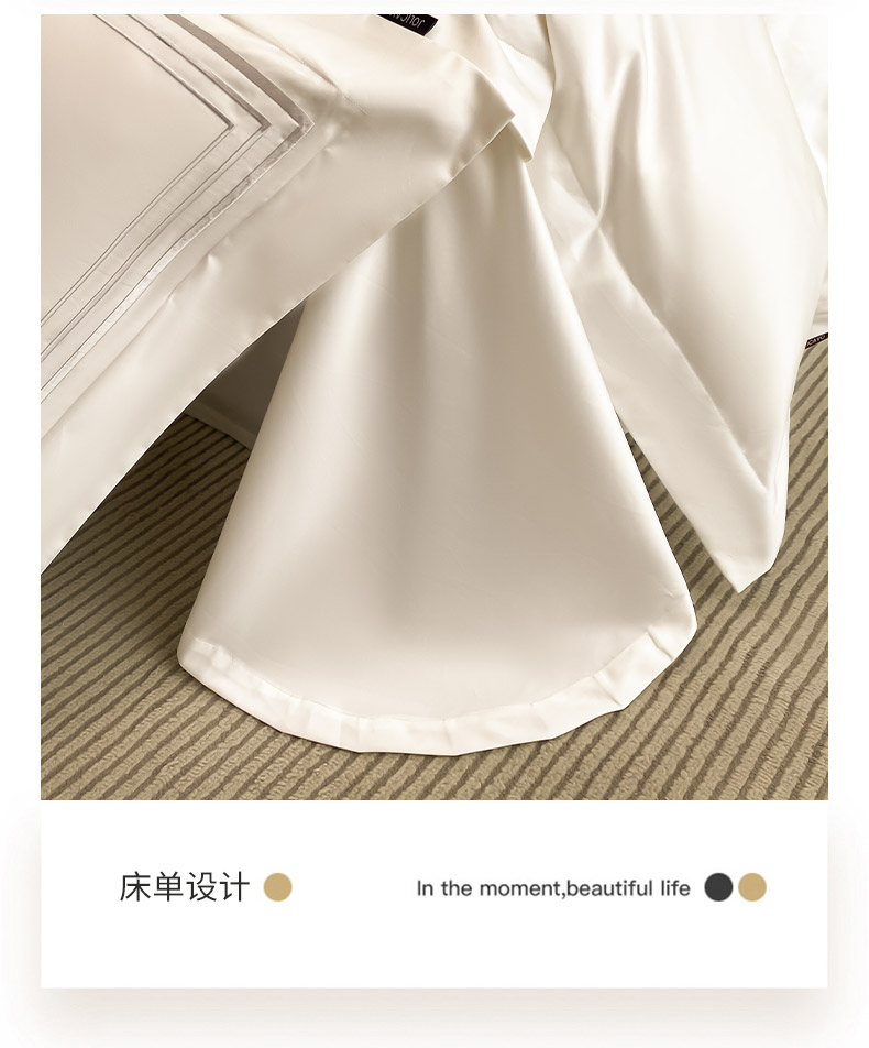 商品名称:2024新款100支长绒棉酒店风四件套全棉纯棉纯色简约床单被套轻奢床笠款床上用品 洛卡-典雅白