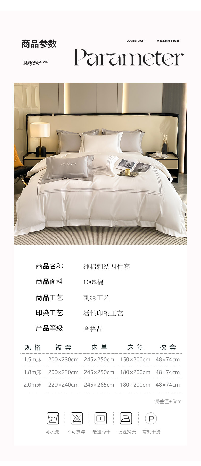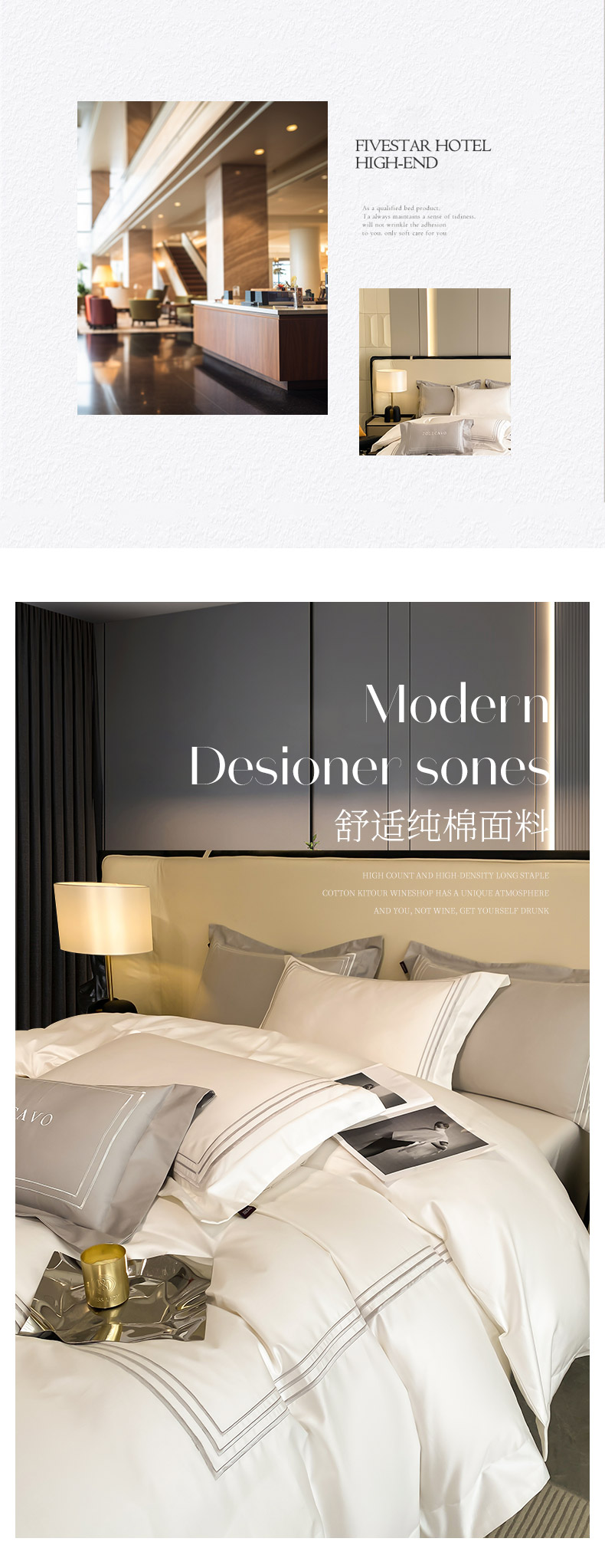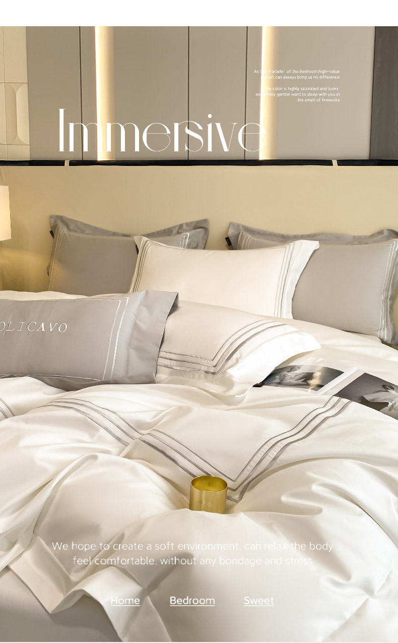 商品名称:2024新款100支长绒棉酒店风四件套全棉纯棉纯色简约床单被套轻奢床笠款床上用品 洛卡-典雅白