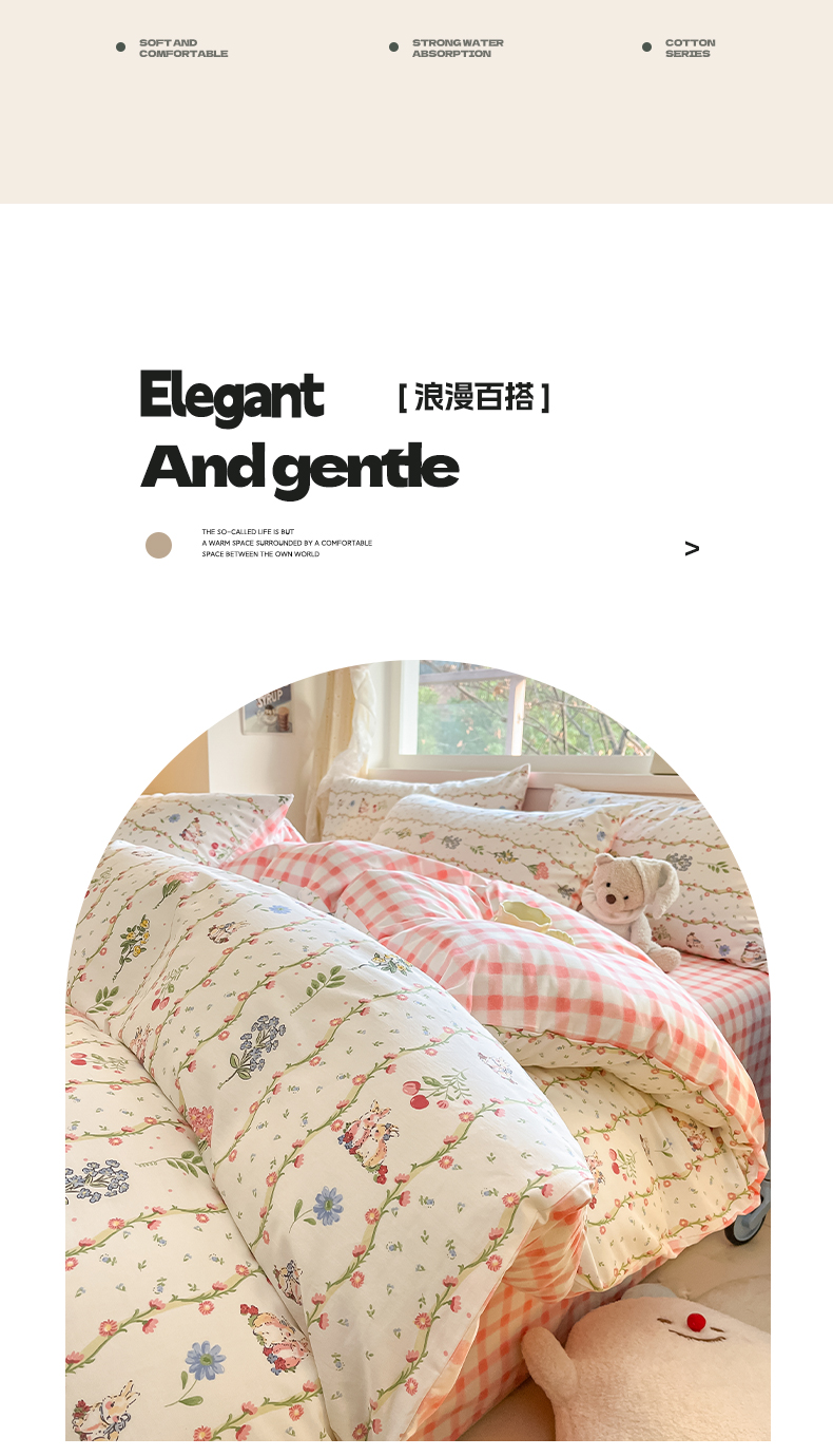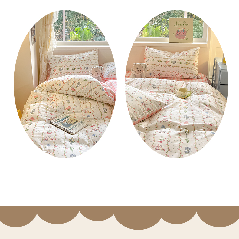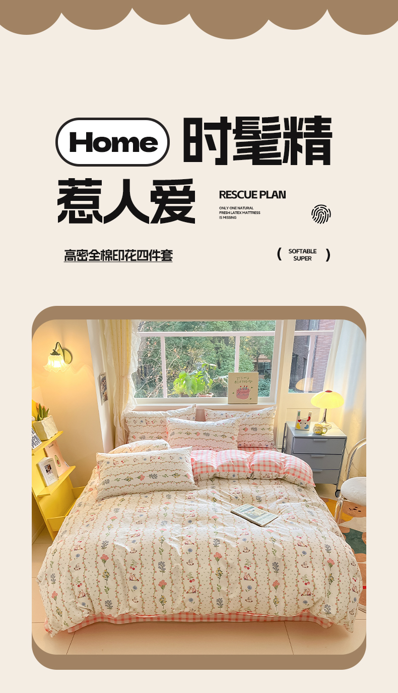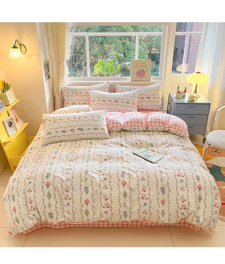 雅居纺 2024新款高密全棉13070印花四件套 甜蜜小兔